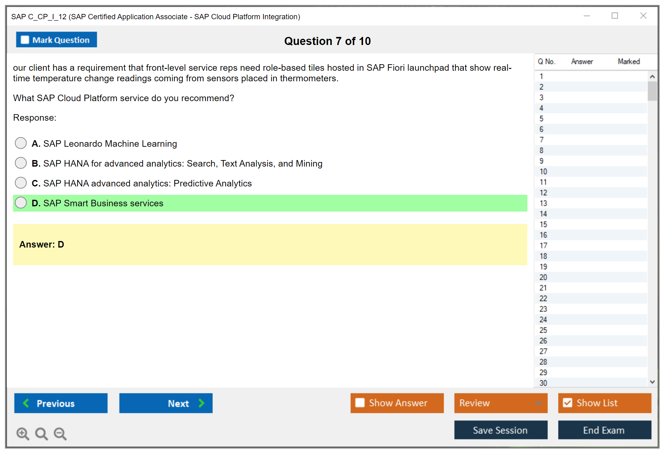 The SAP C_CP_I_12 Exam is part of the SAP Certification program and is a stepping stone for more advanced SAP certifications. After achieving this certification, candidates can pursue further specialization in SAP Cloud Platform or other SAP solutions.