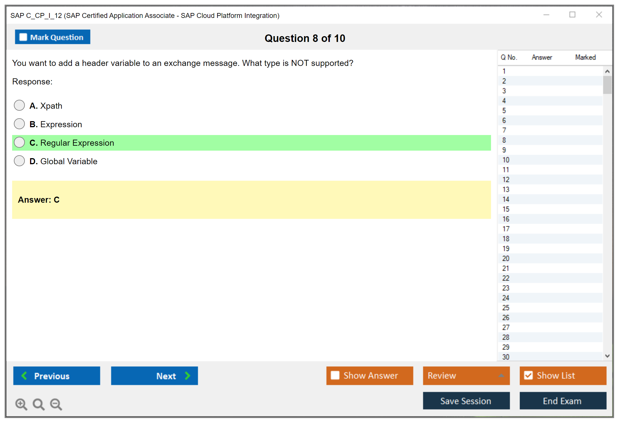 The SAP C_CP_I_12 (SAP Certified Application Associate - SAP Cloud Platform Integration) Exam is designed to validate the candidate's knowledge and skills in the area of SAP Cloud Platform Integration. This certification proves that the candidate has the fundamental and core knowledge required to work effectively as an SAP Cloud Platform Integration consultant.