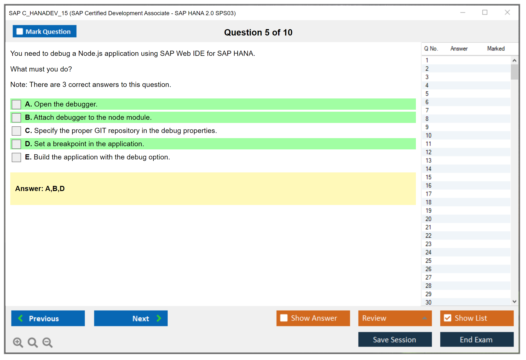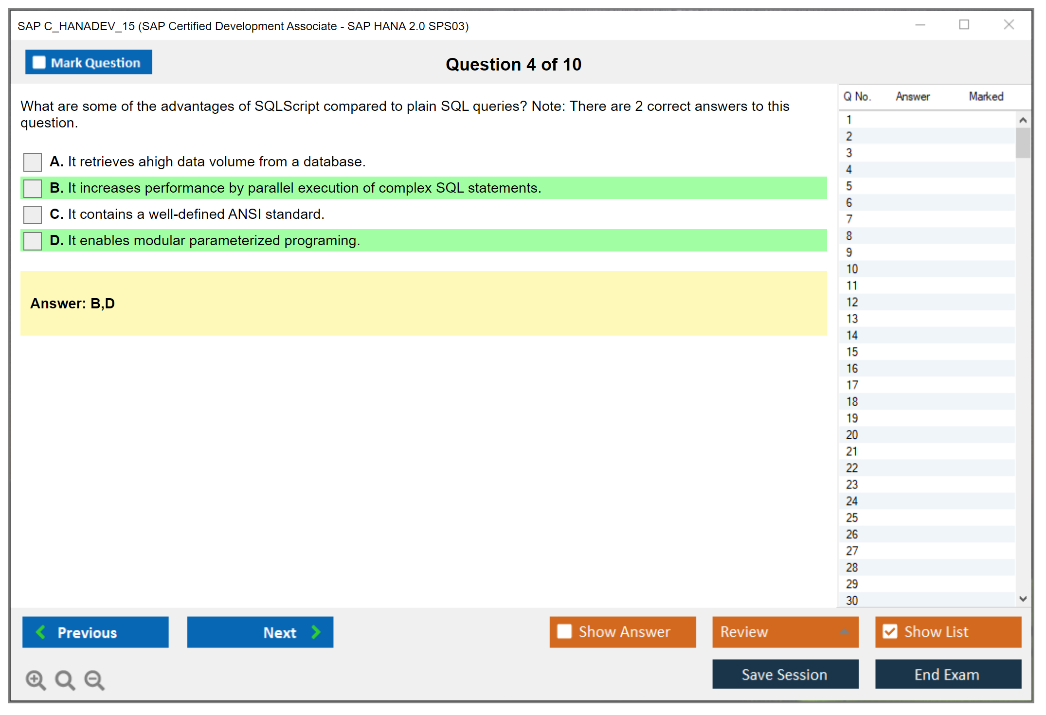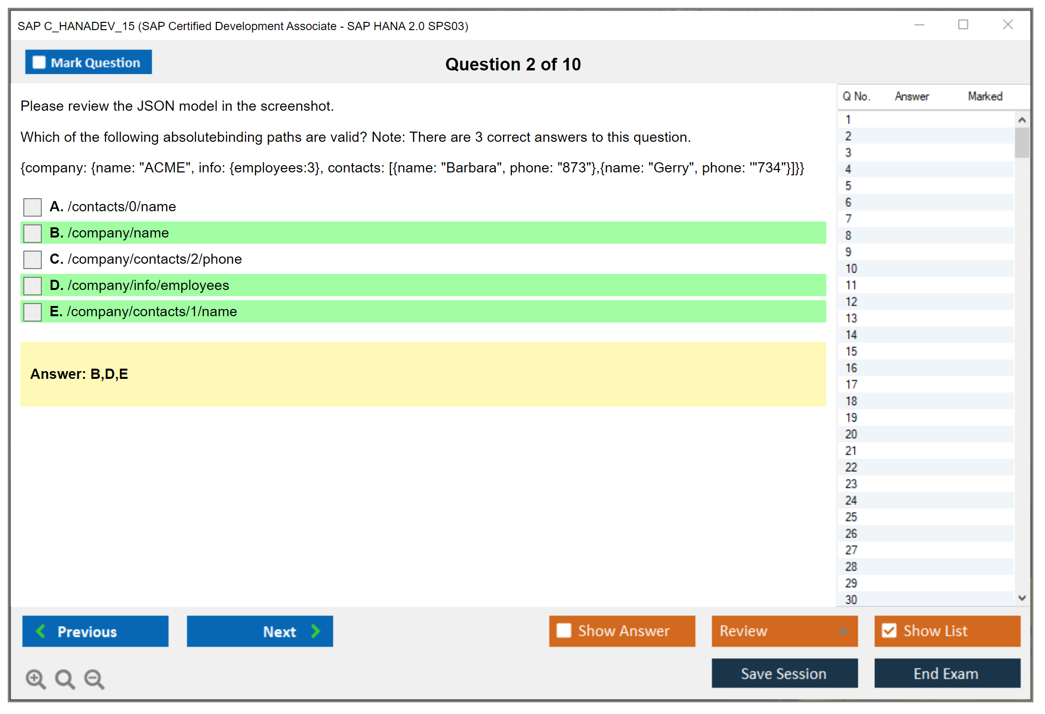 What are the Sample Questions of SAP C_HANADEV_15 Exam?