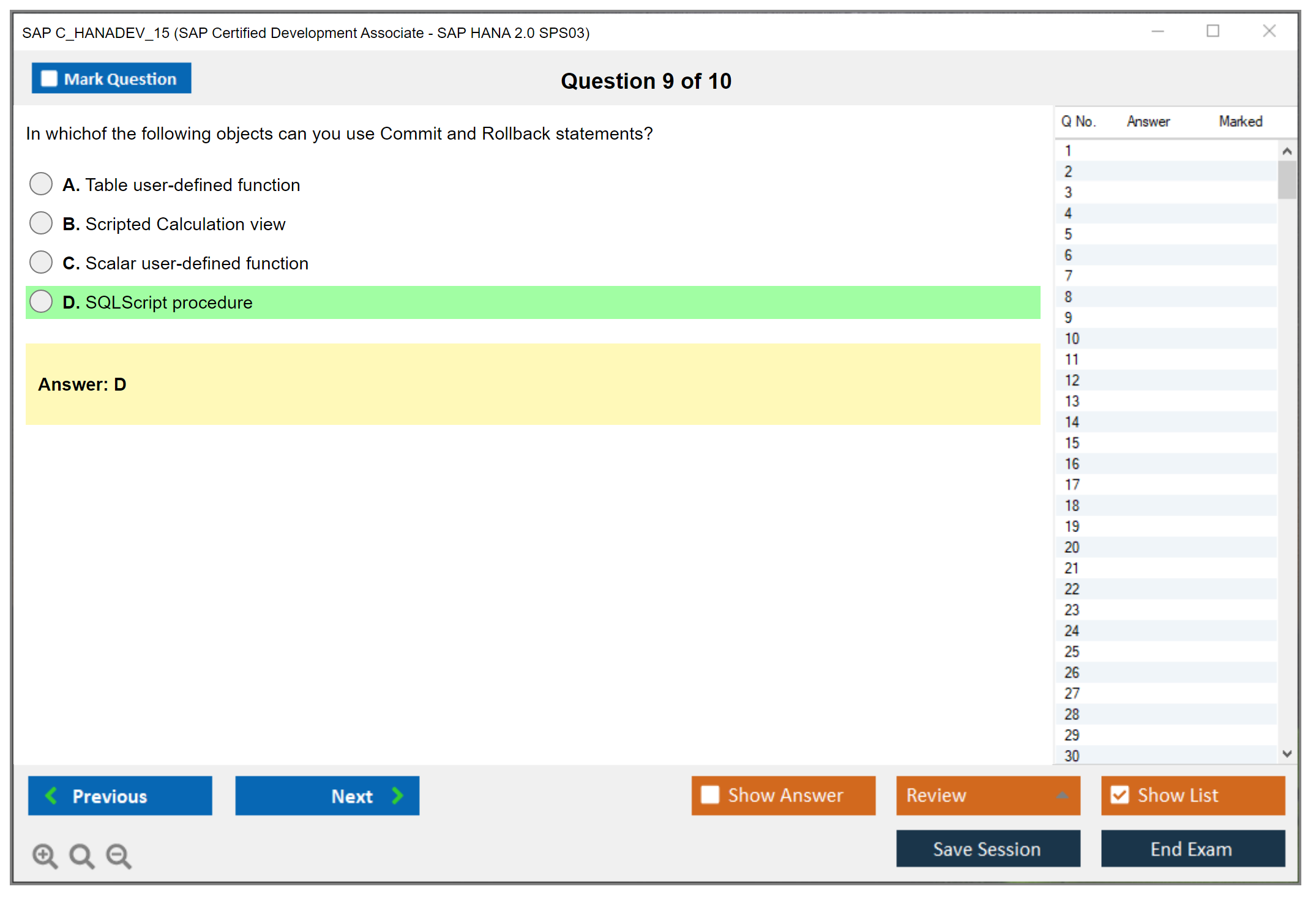 Note: SAP C_HANADEV_15 (SAP Certified Development Associate - SAP HANA 2.0 SPS03) will not receive any new updates.