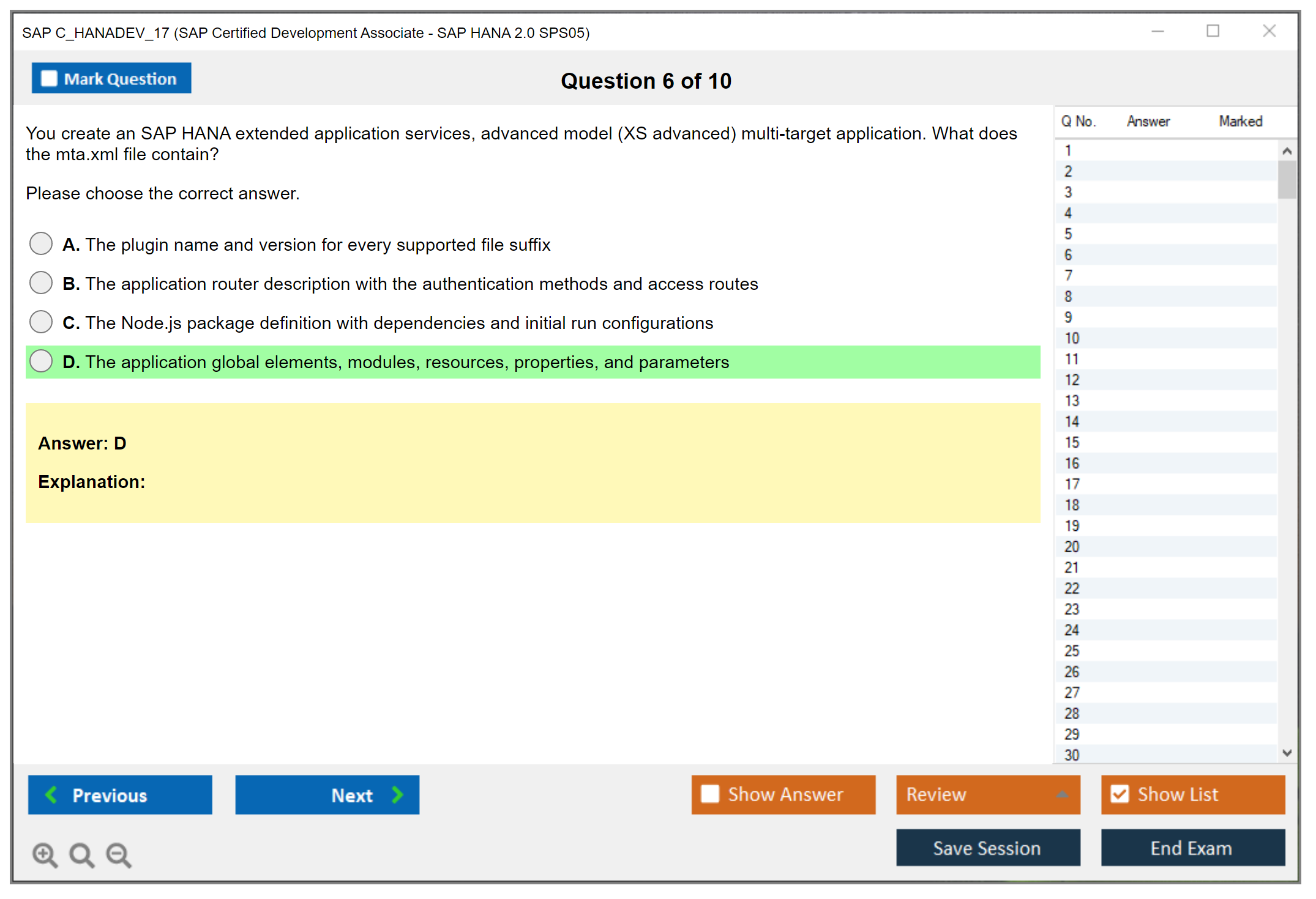 The SAP C_HANADEV_17 exam is a certification exam that assesses the skills and knowledge of candidates in developing applications on the SAP HANA 2.0 SPS05 platform. It is intended for developers who want to demonstrate their proficiency in using SAP HANA tools and technologies.