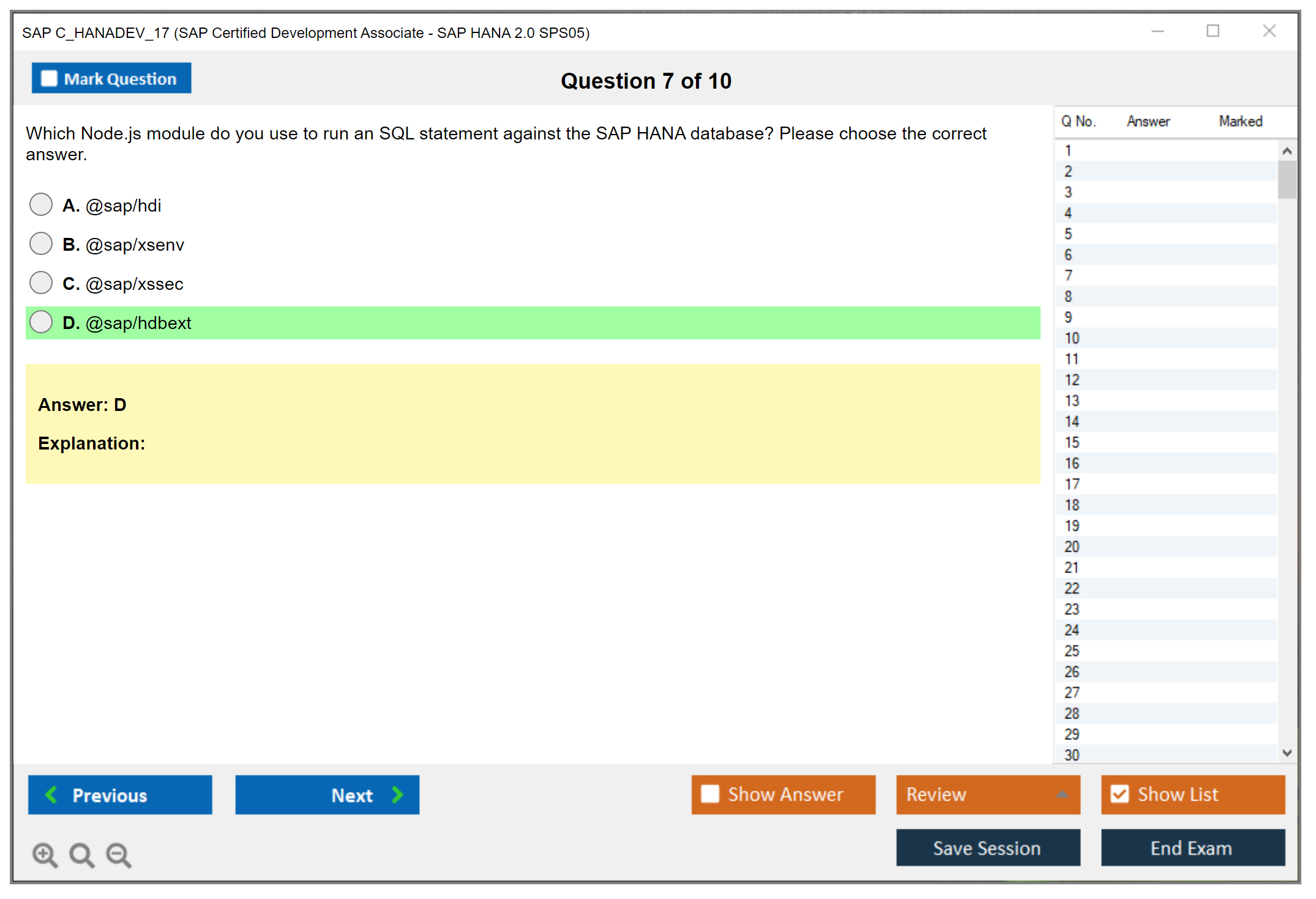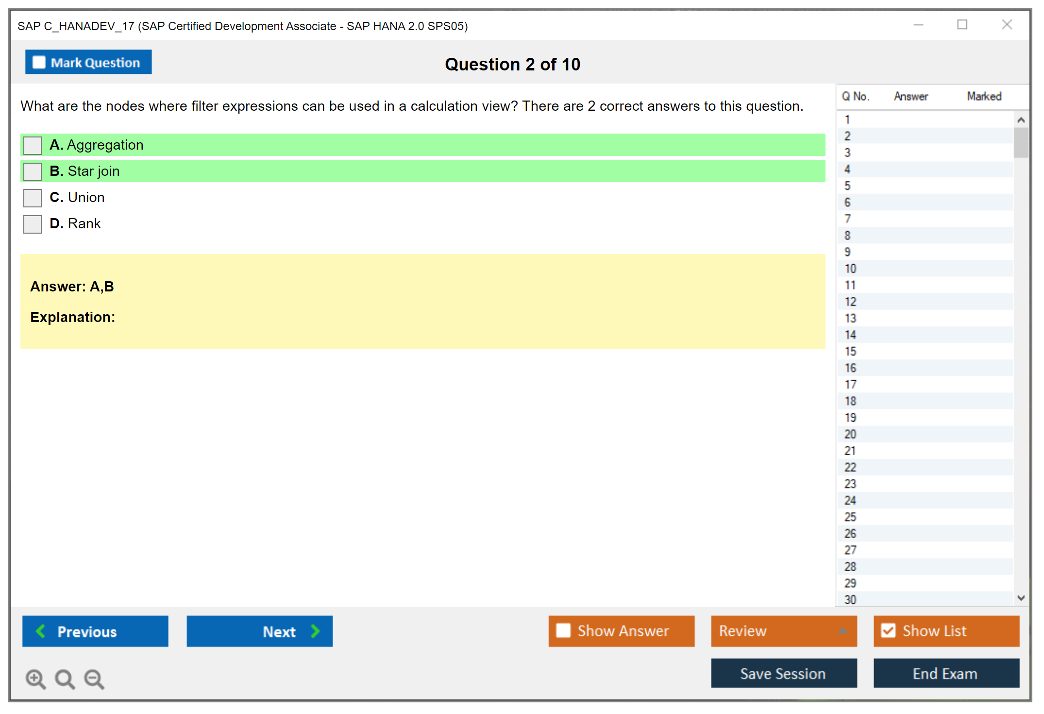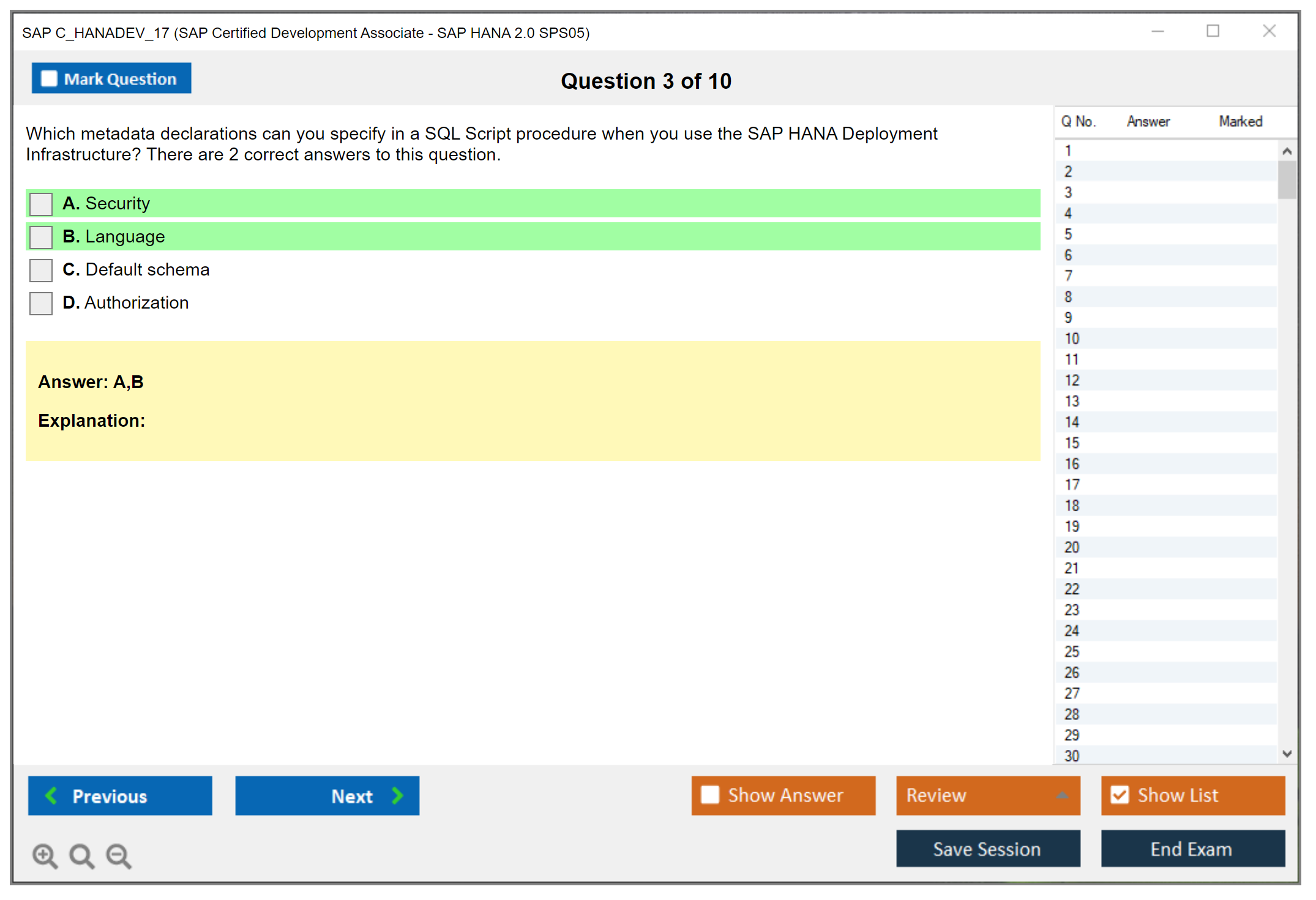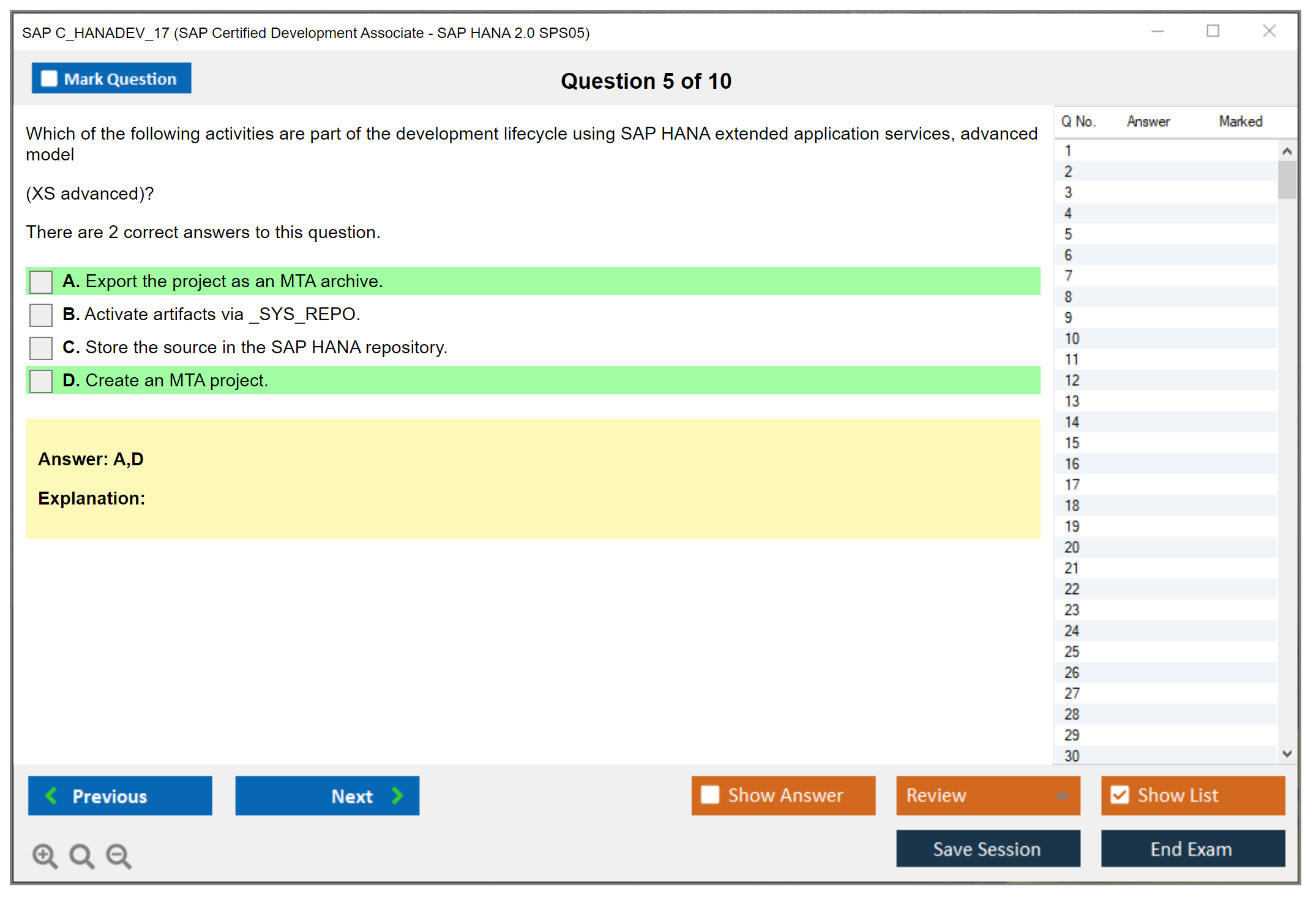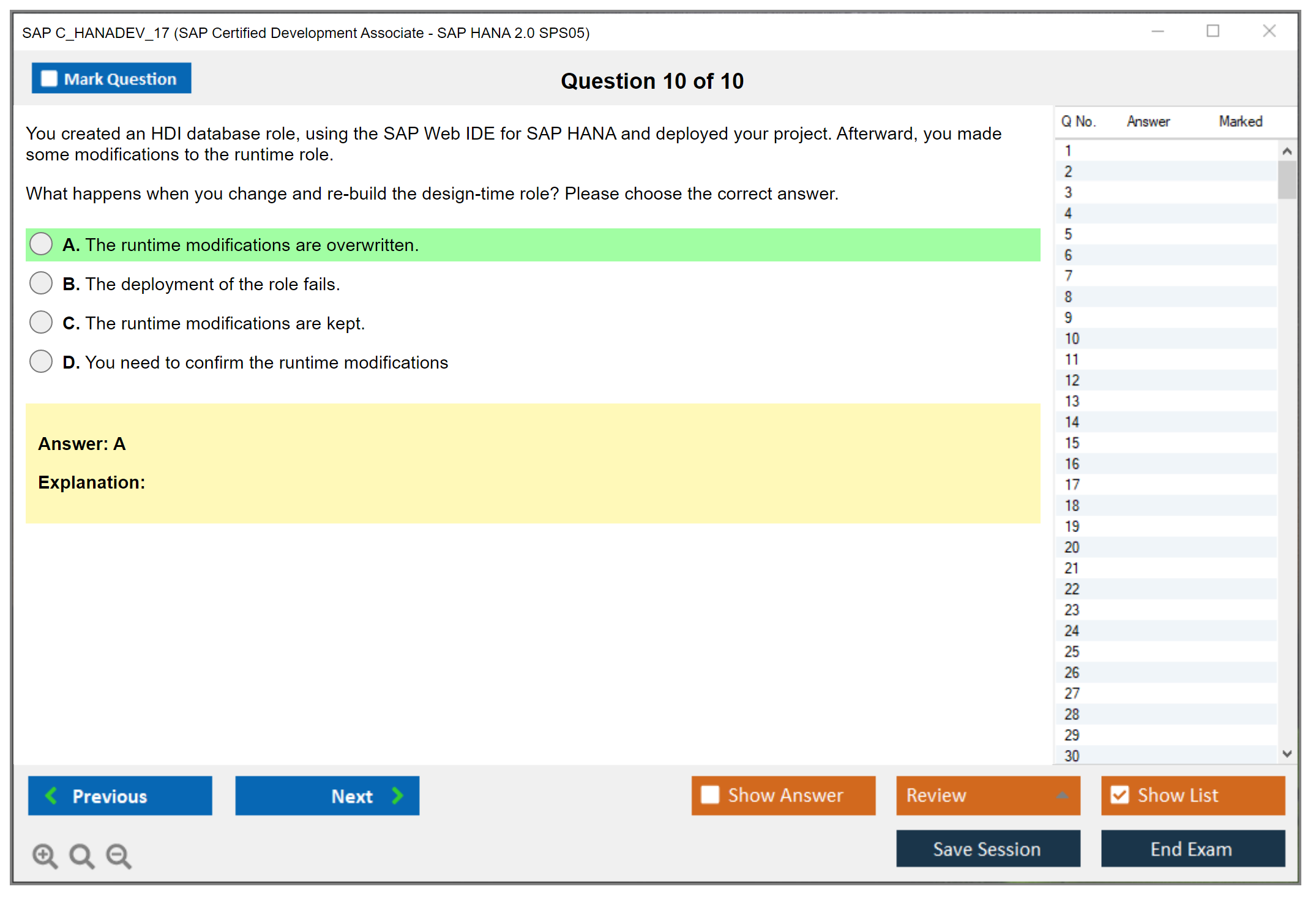 What are the Sample Questions of SAP C_HANADEV_17 Exam?