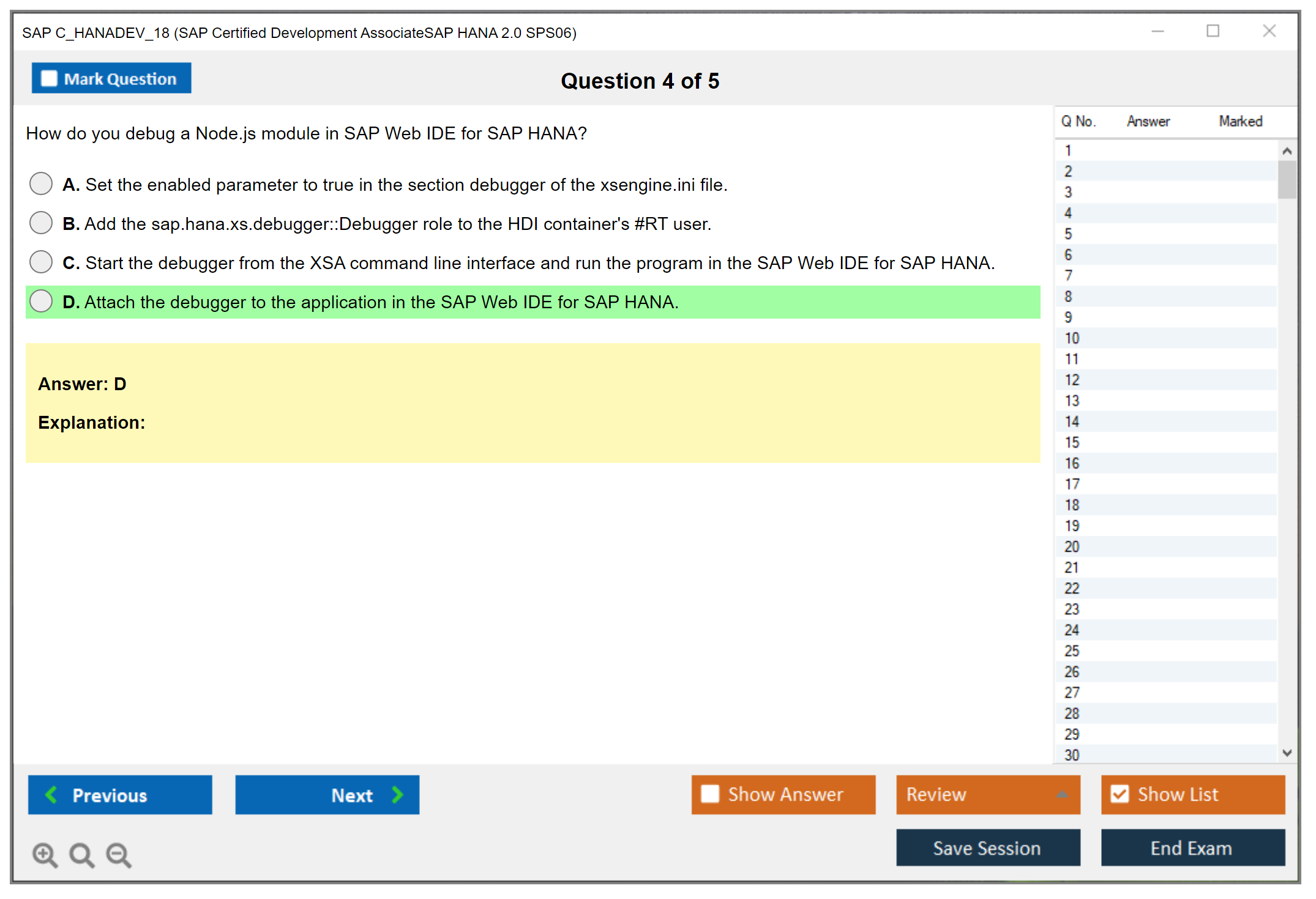 At DumpsBoss, the SAP C_HANADEV_18 guide is gold! The detailed resources and exam-oriented approach made understanding SAP HANA development seamless. Essential for SAP enthusiasts!