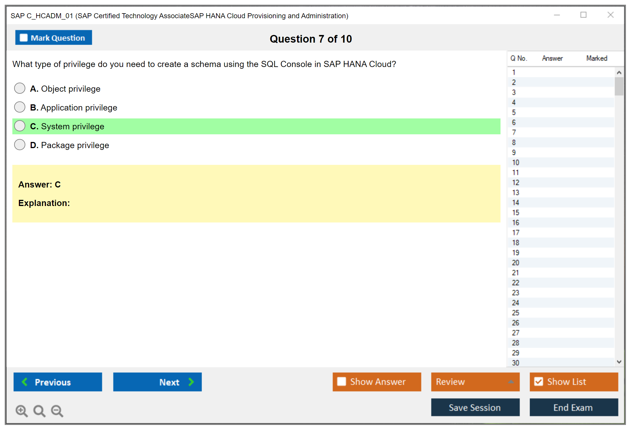 The SAP C_HCADM_01 exam certifies that the candidate has the essential knowledge and skills in the area of SAP HANA Cloud Provisioning and Administration. It ensures that the candidate can effectively contribute to the implementation and administration of SAP HANA Cloud solutions.