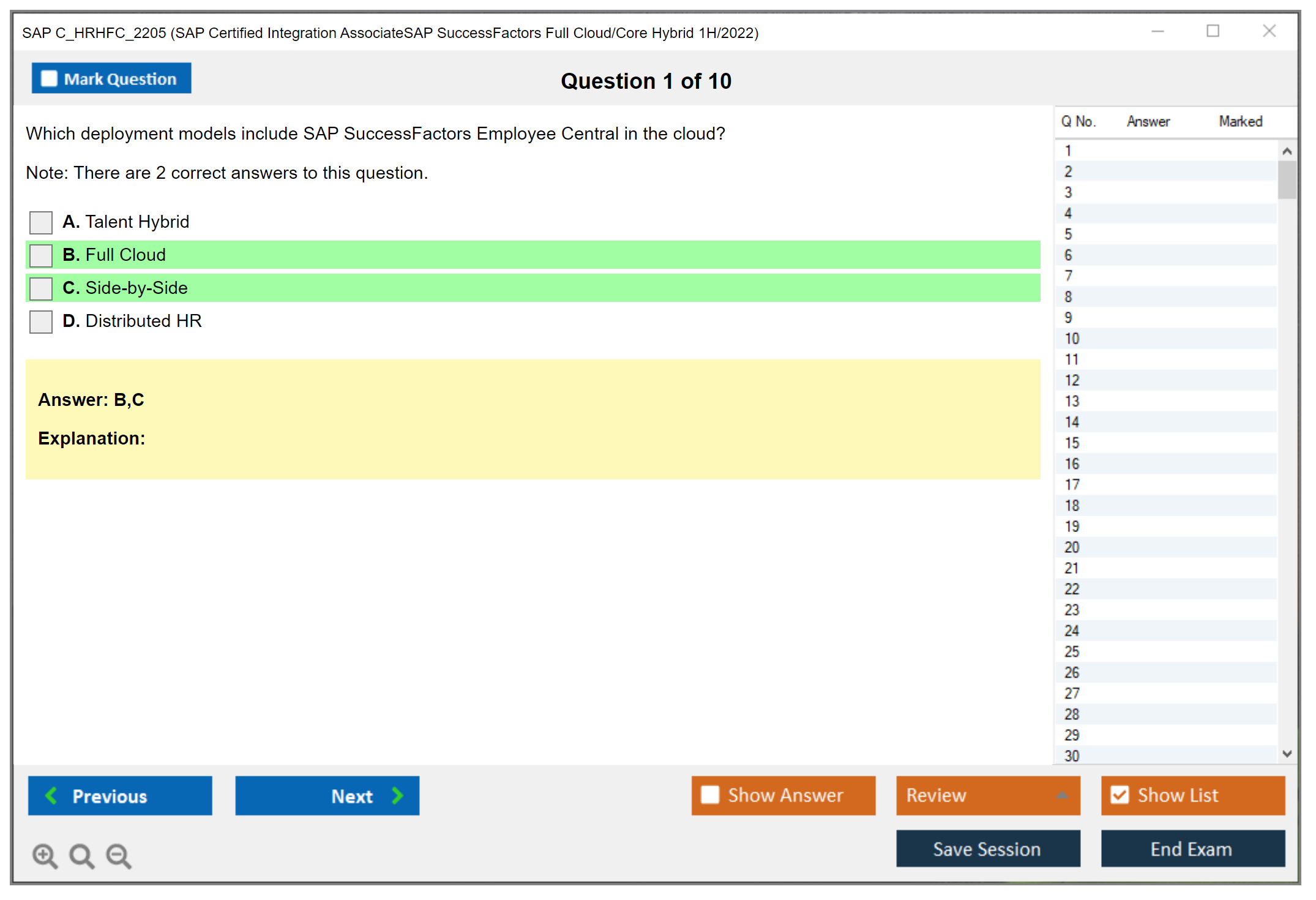 Note: SAP C_HRHFC_2205 (SAP Certified Integration AssociateSAP SuccessFactors Full Cloud/Core Hybrid 1H/2022) will not receive any new updates.