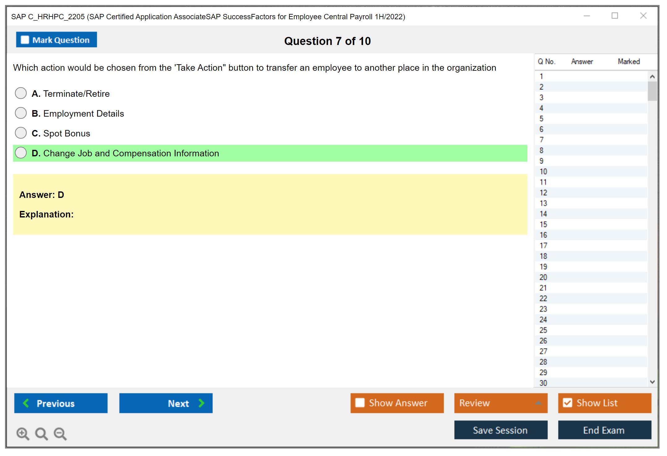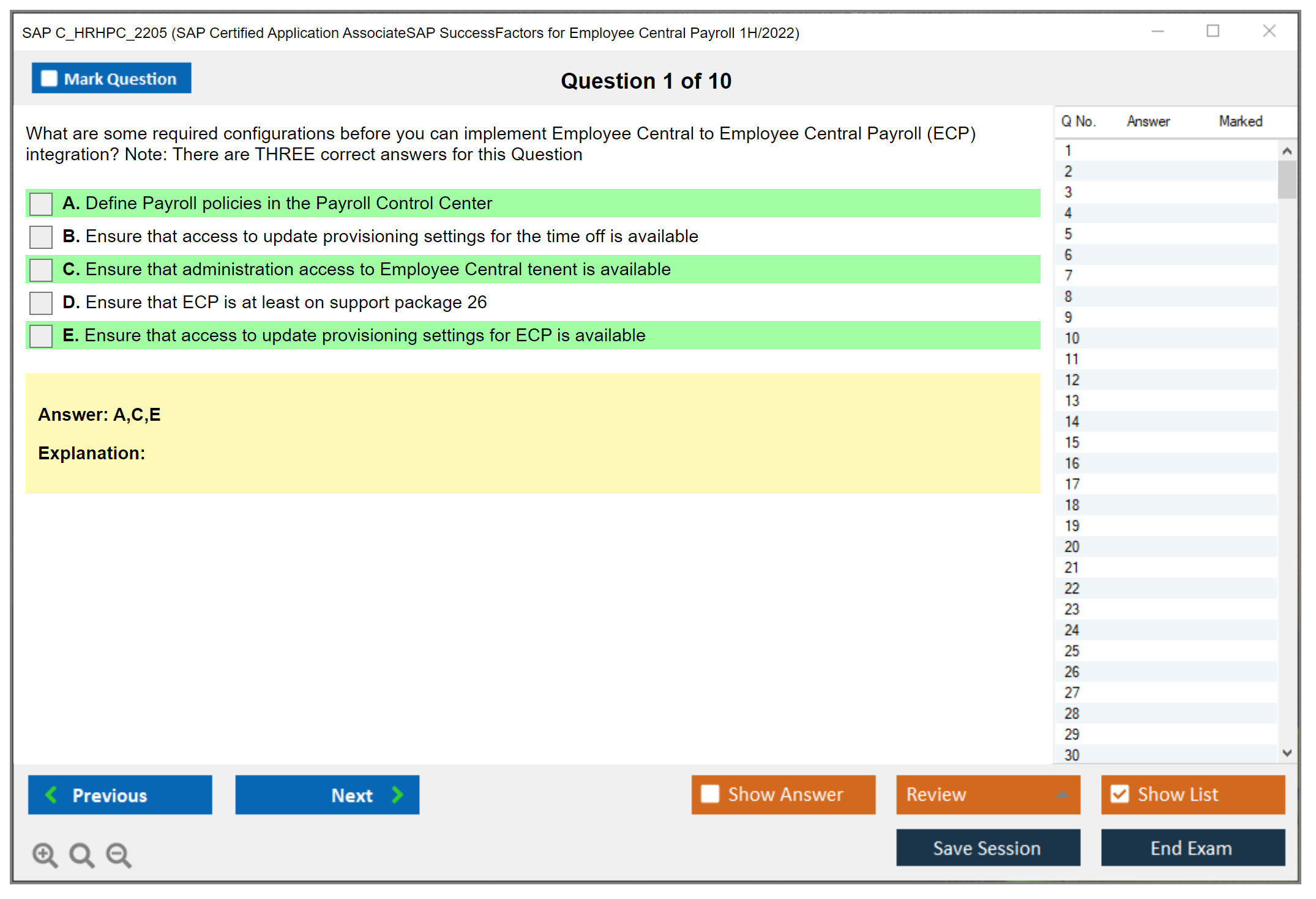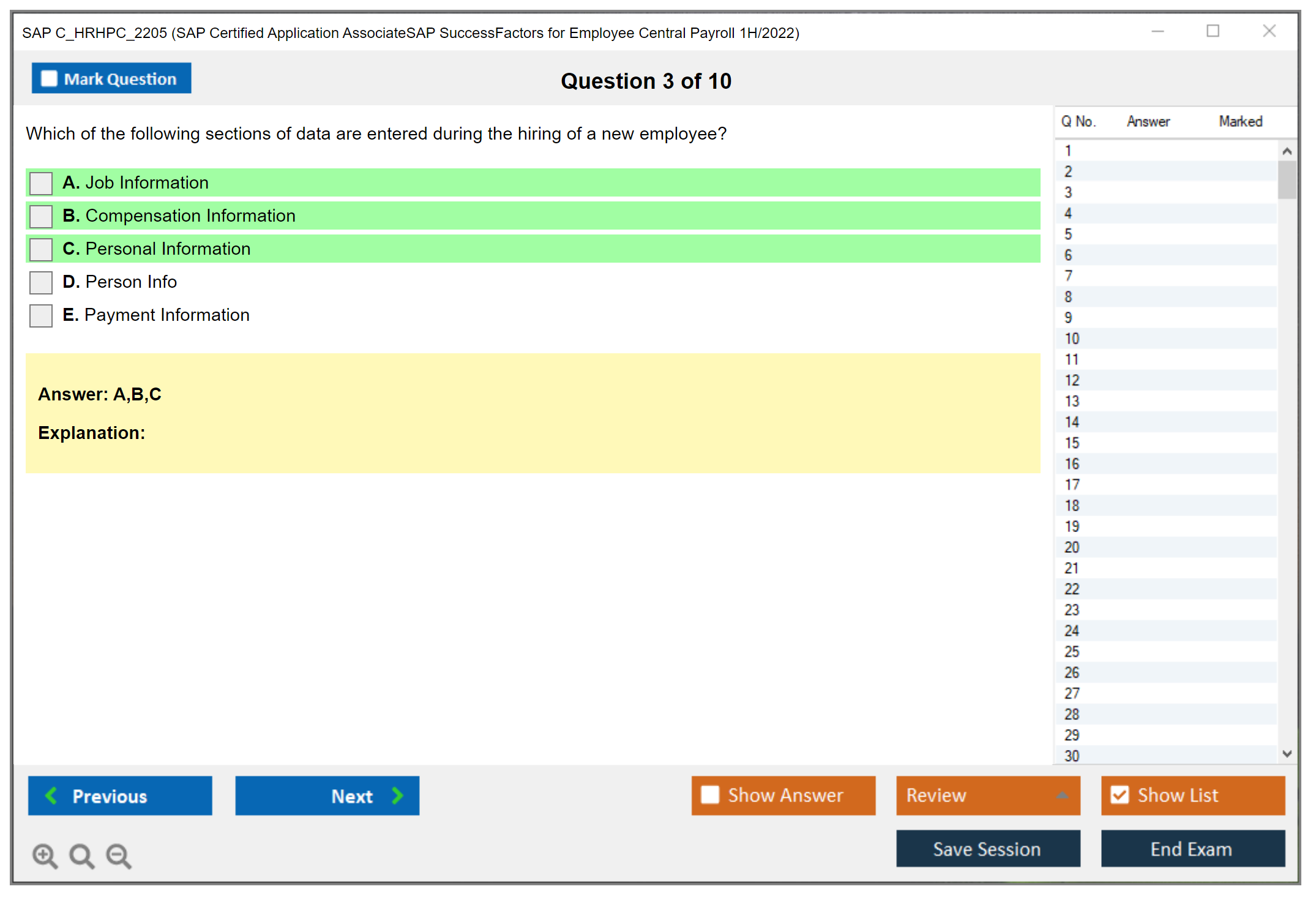 Note: SAP C_HRHPC_2205 (SAP Certified Application AssociateSAP SuccessFactors for Employee Central Payroll 1H/2022) will not receive any new updates.