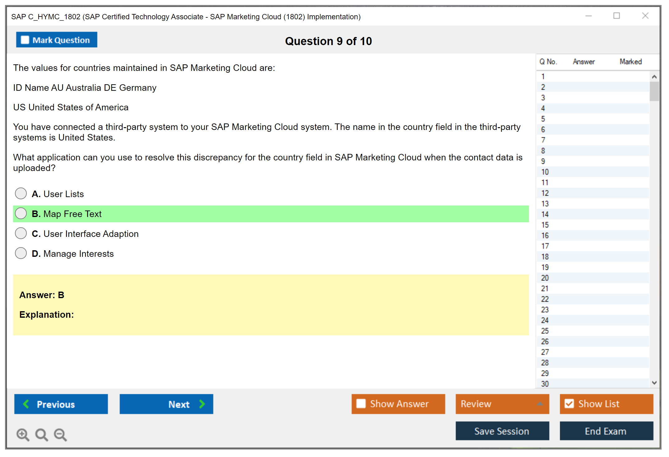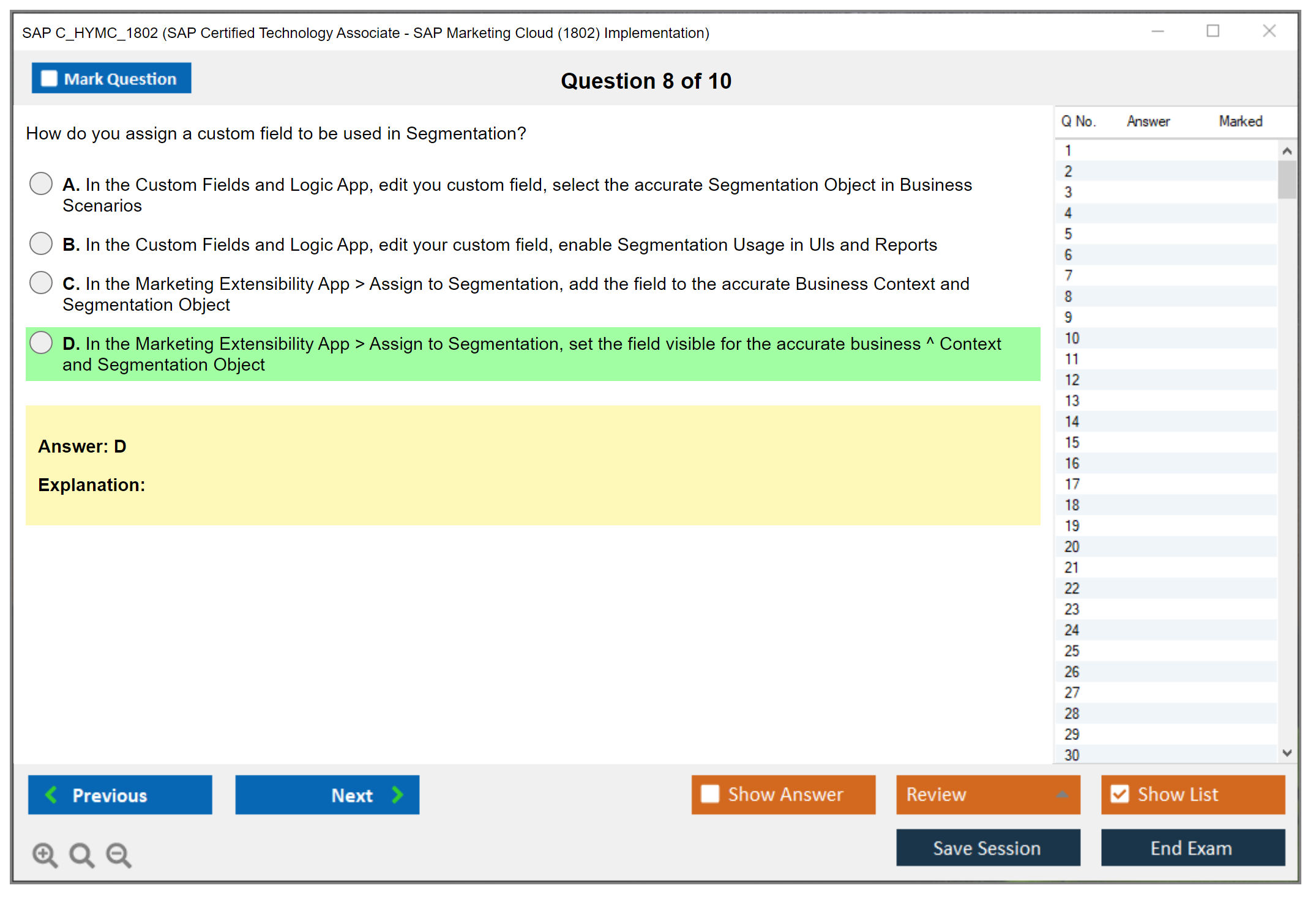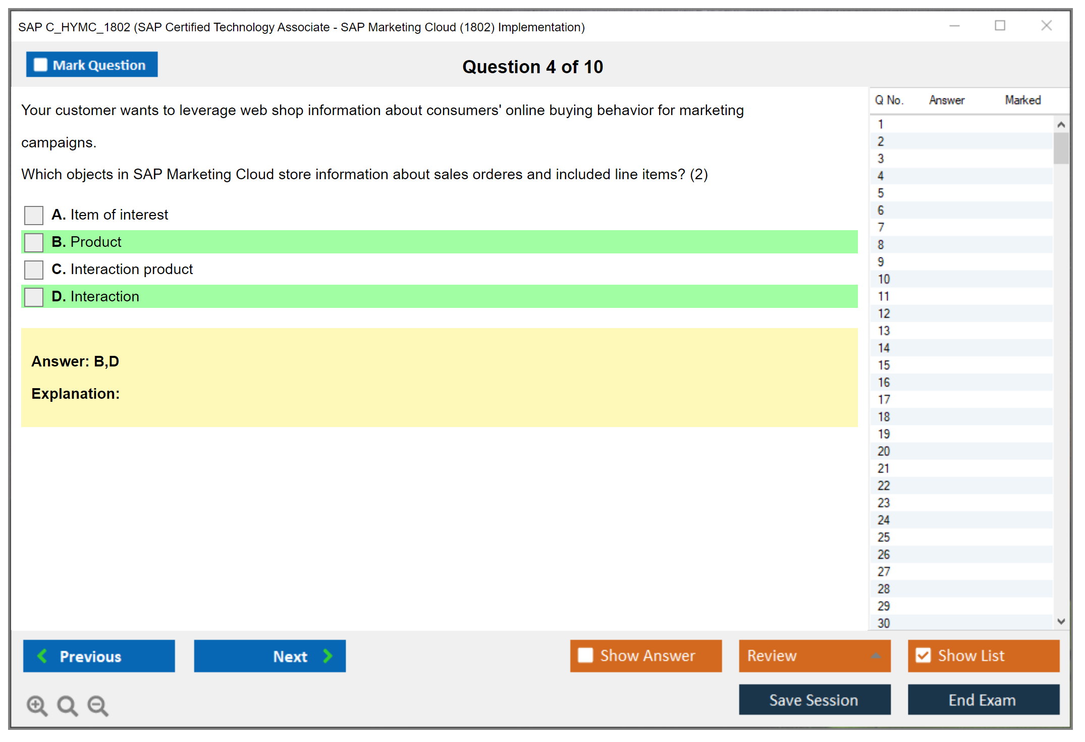 DumpsBoss’s C_HYMC_1802 exam questions are a game-changer! The well-crafted questions and detailed explanations made my SAP Hybris Marketing Cloud prep smooth and effective. Highly recommended for passing with confidence!