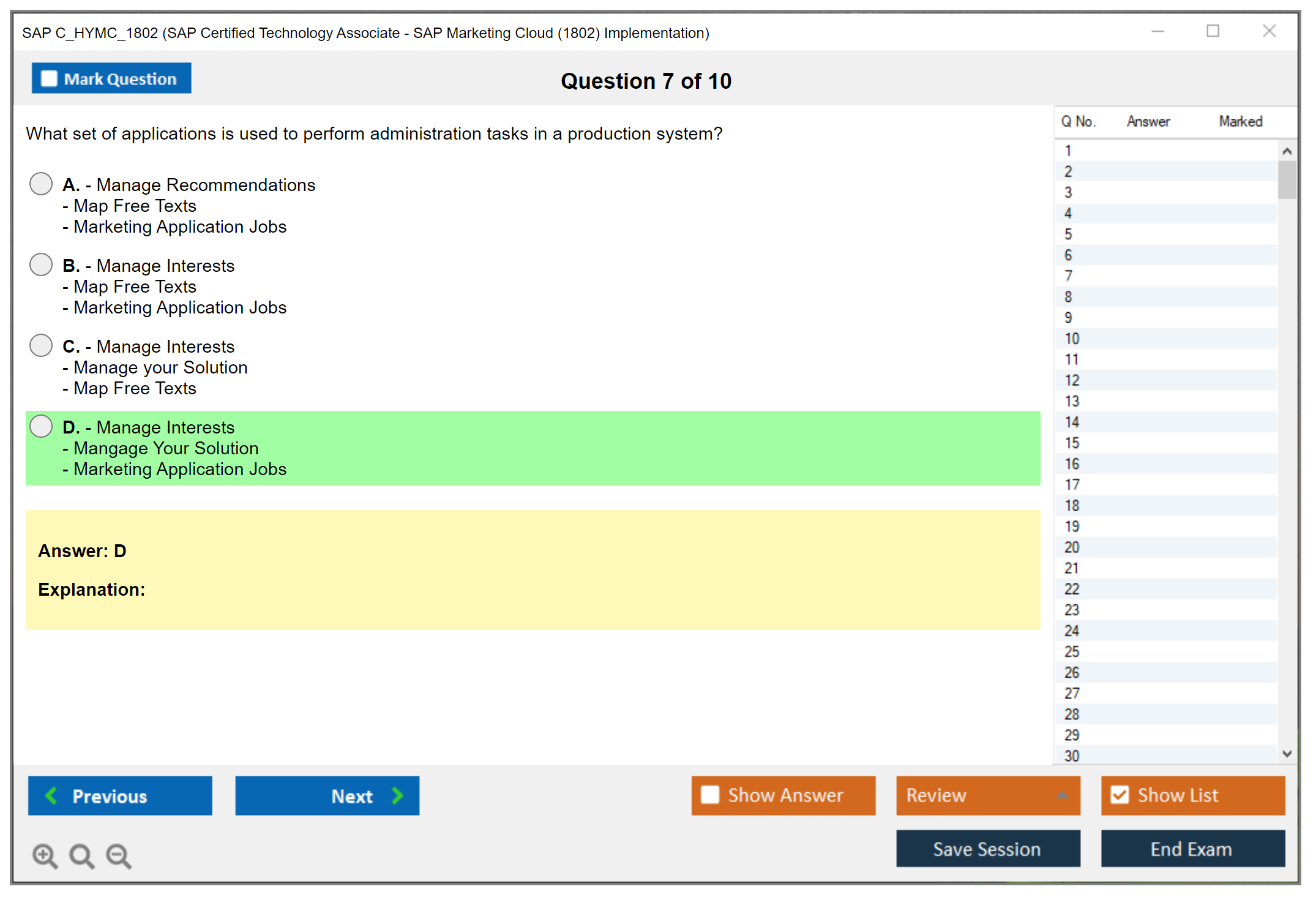I aced the C_HYMC_1802 exam with DumpsBoss’s C_HYMC_1802 braindumps! The realistic practice questions and in-depth explanations were invaluable. If you’re aiming for success, this is the resource to use!