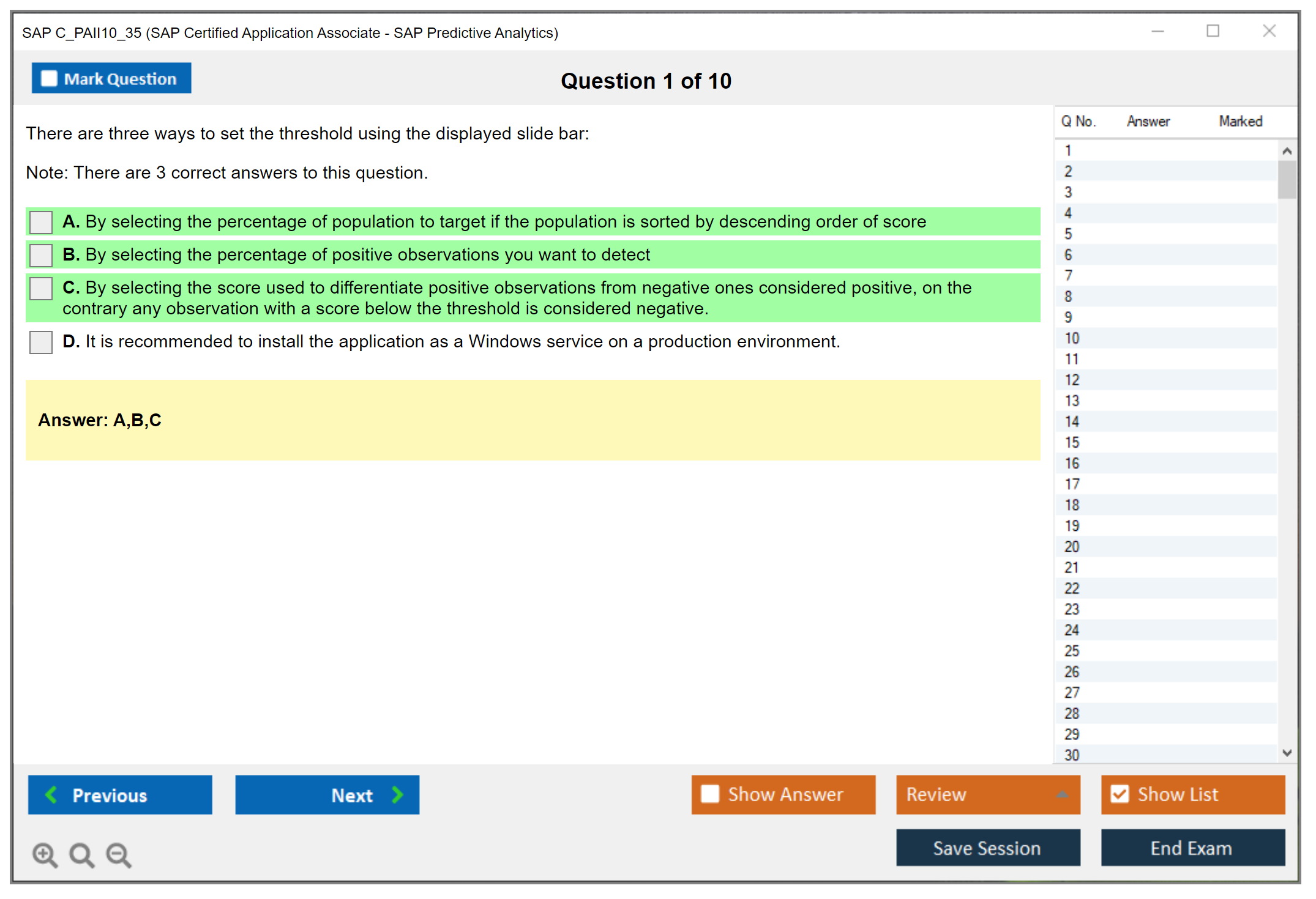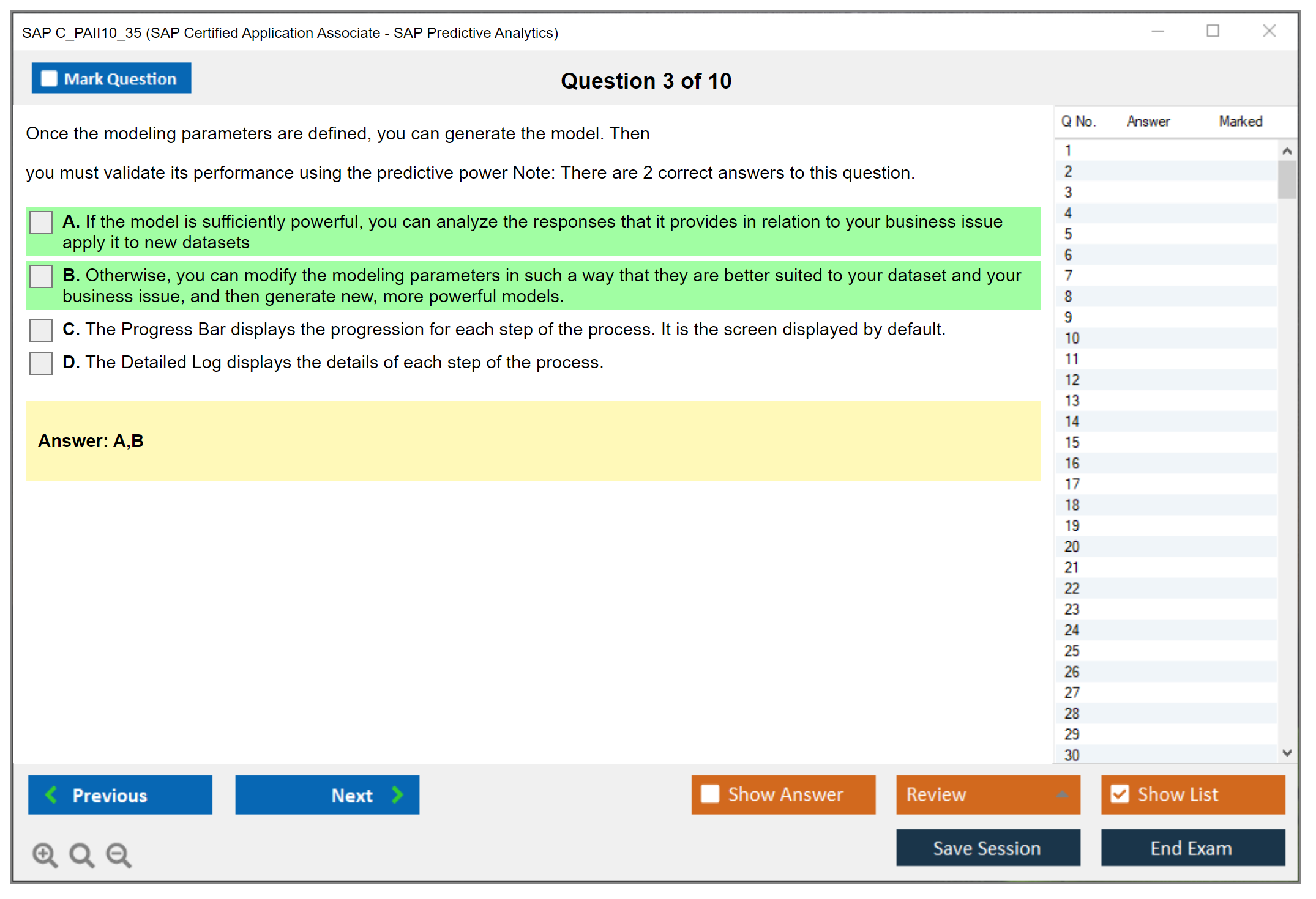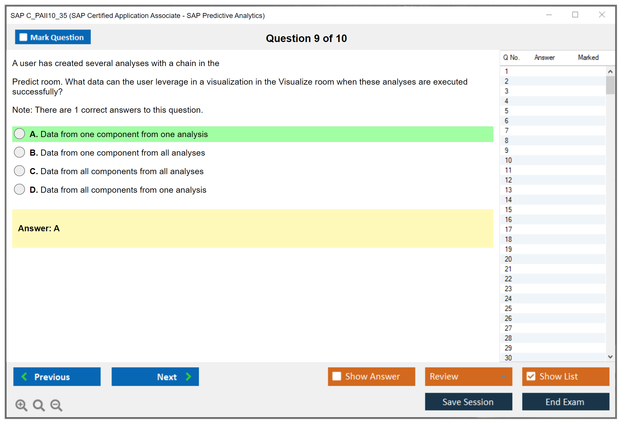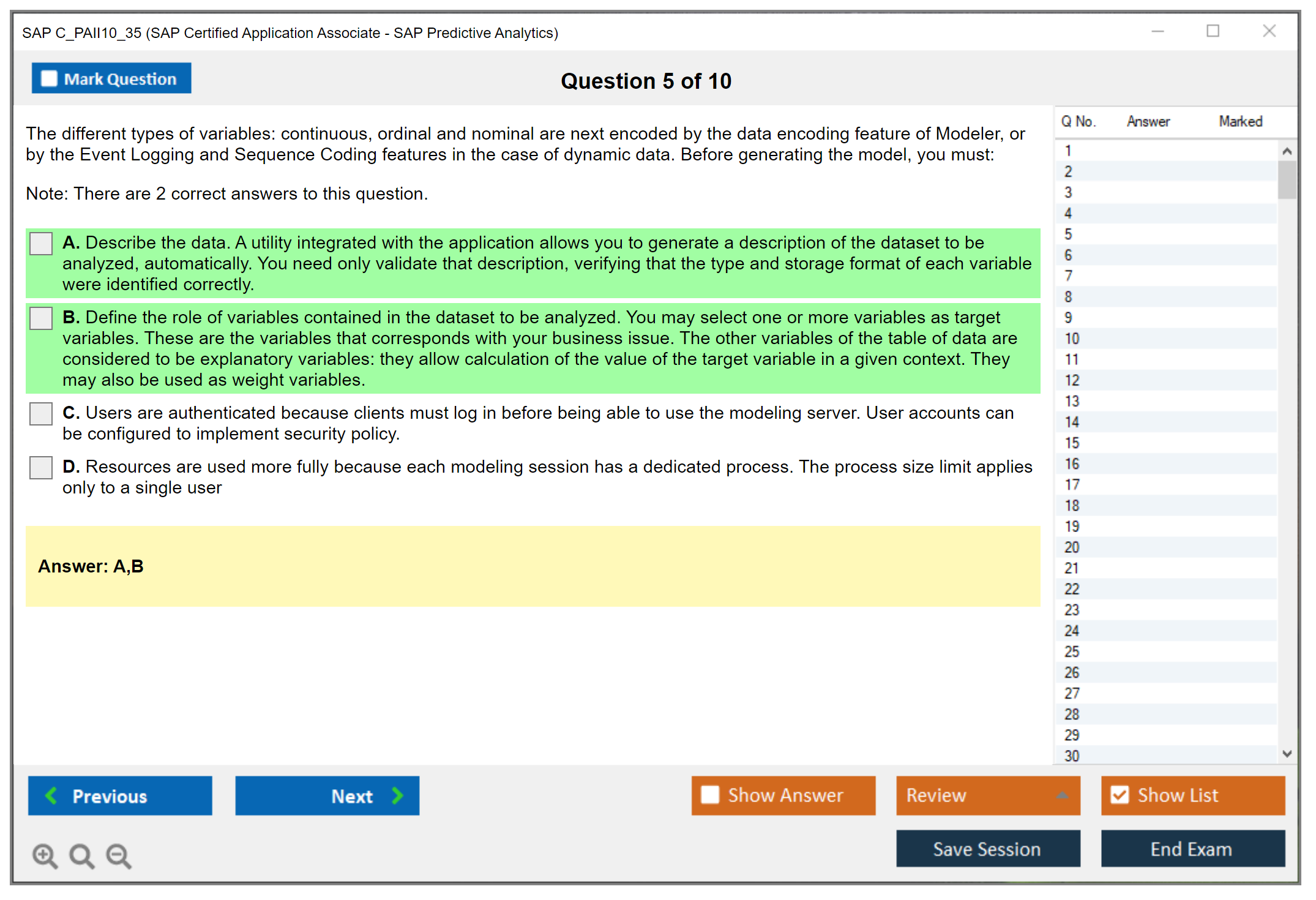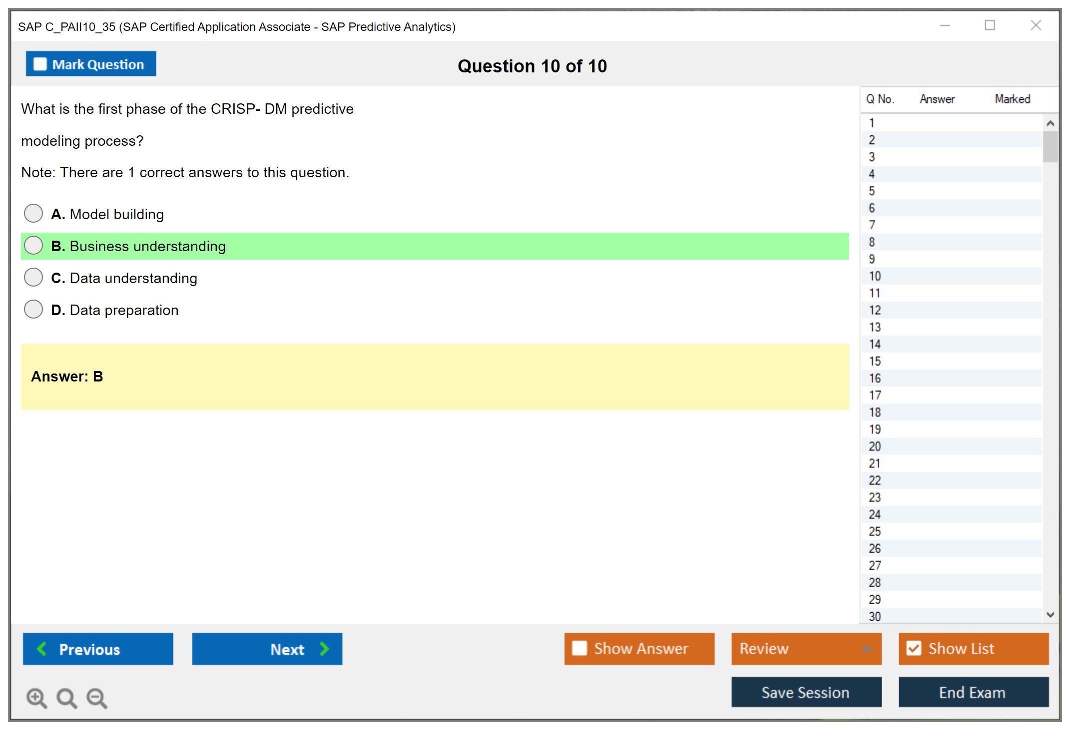 The SAP C_PAII10_35 (SAP Certified Application Associate - SAP Predictive Analytics) Exam is designed to validate the candidate's knowledge and skills in the area of SAP Predictive Analytics. This certification proves that the candidate has a basic understanding and in-depth technical skills to participate as a member of a project team in a mentored role.