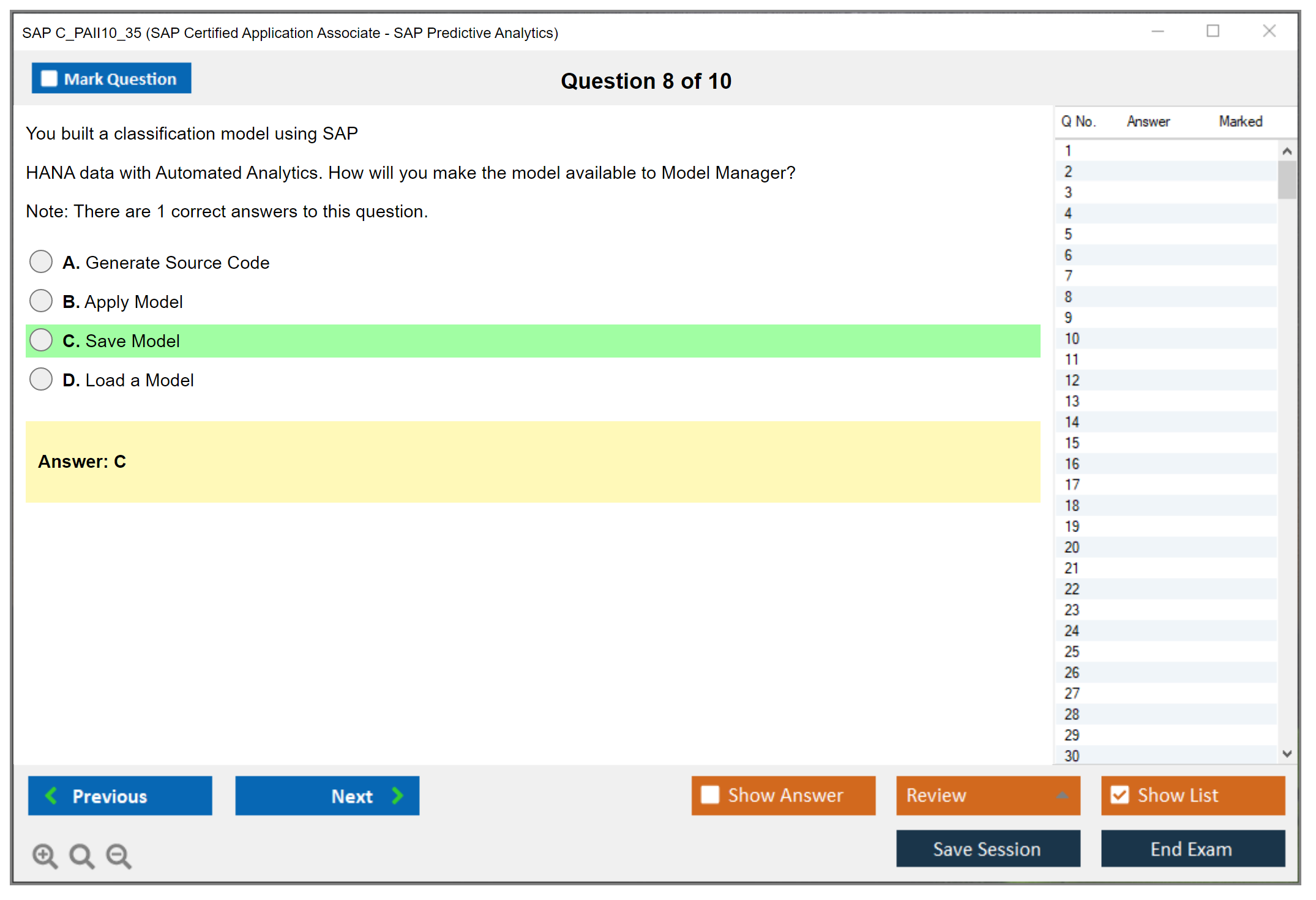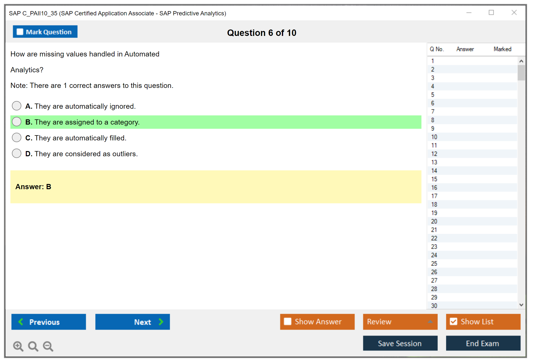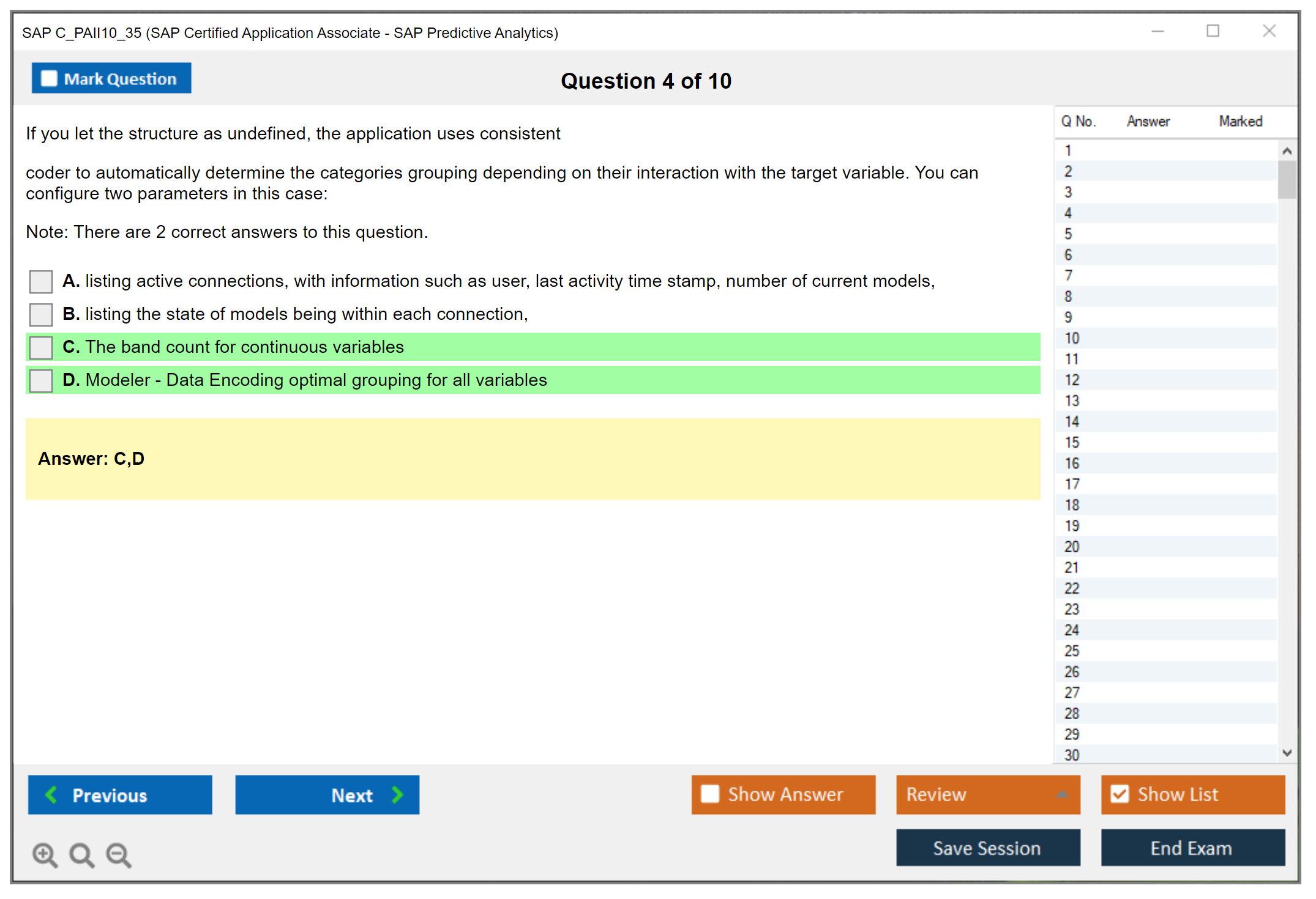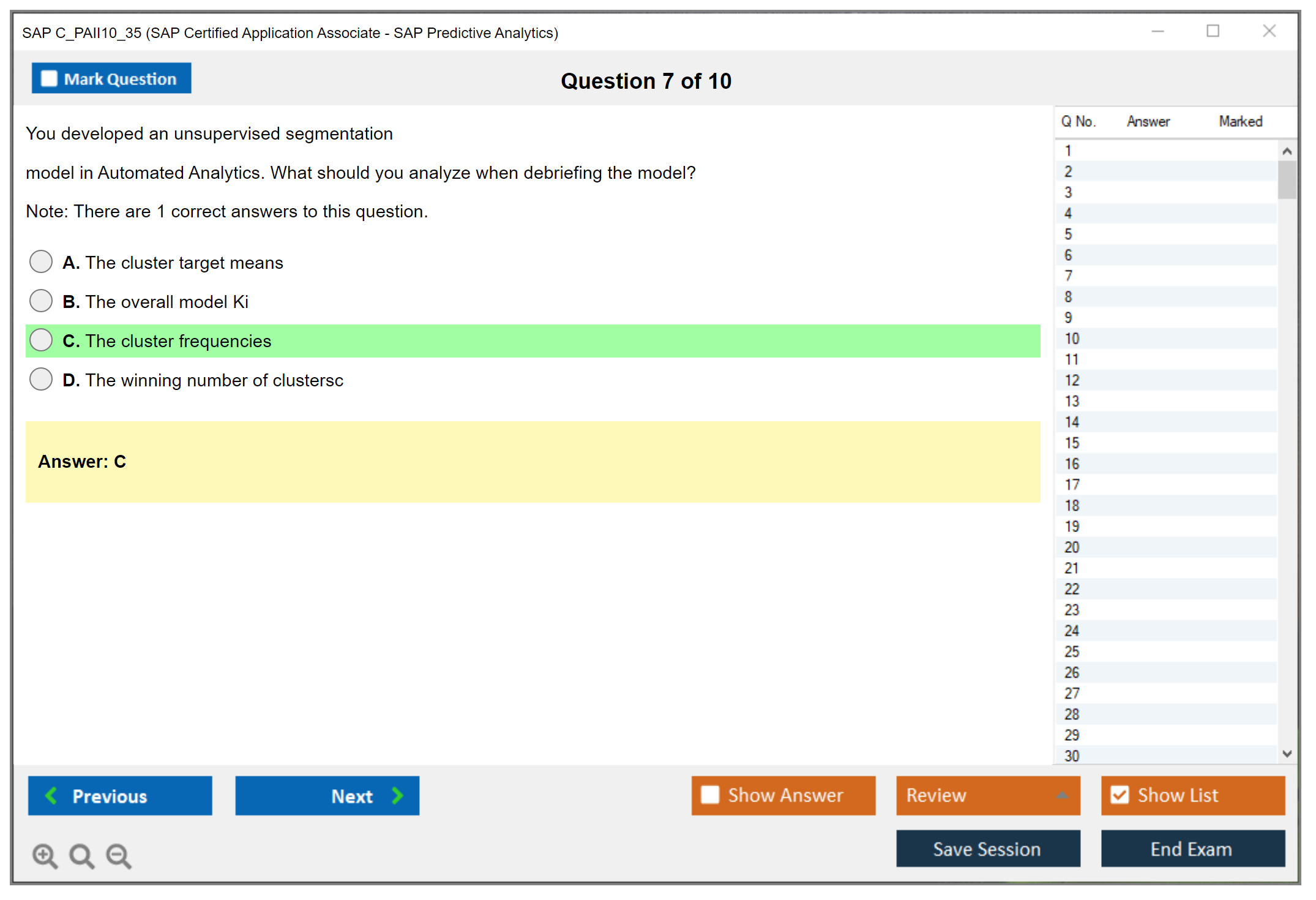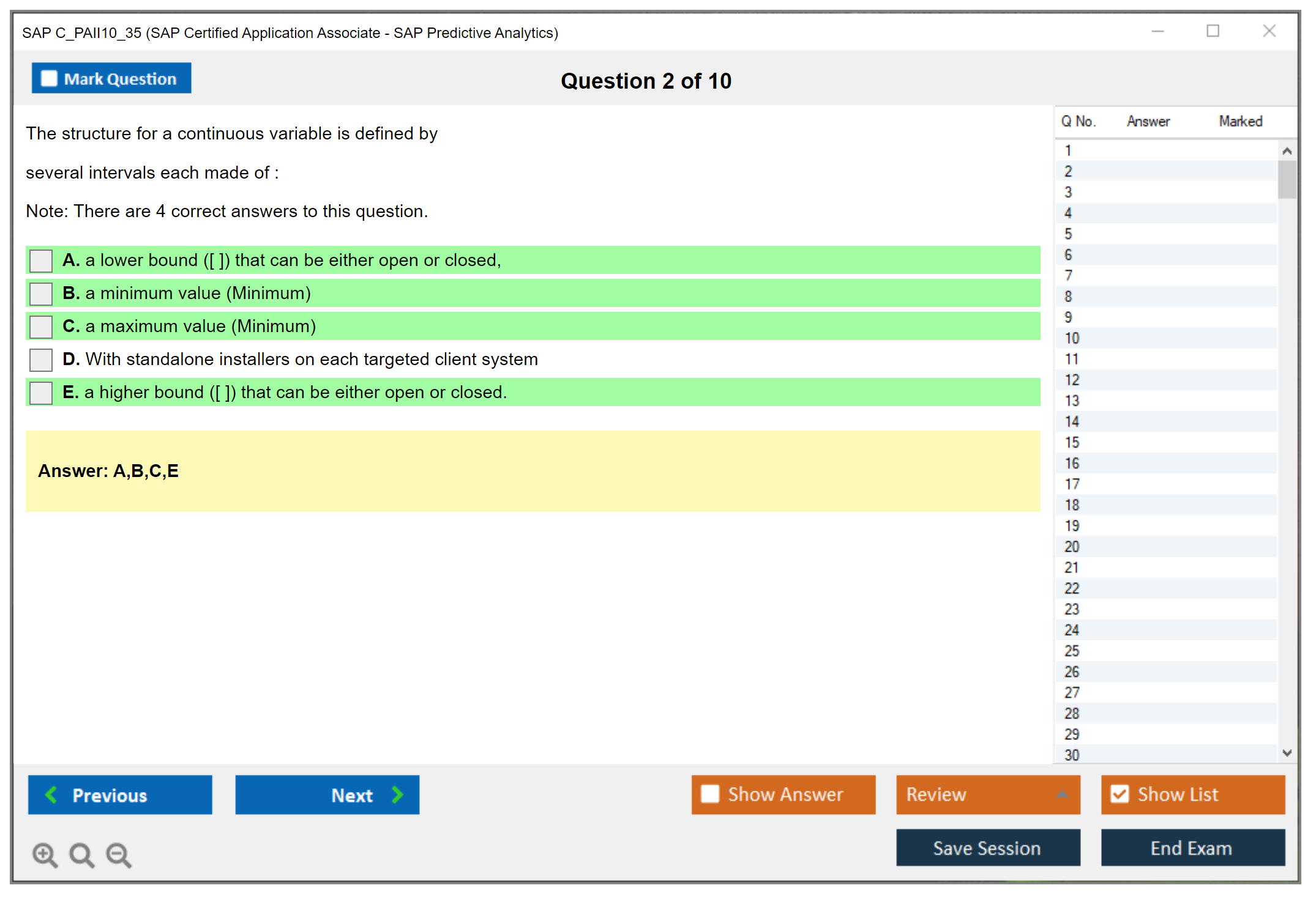 The SAP C_PAII10_35 (SAP Certified Application Associate - SAP Predictive Analytics) Exam is designed to validate the candidate's knowledge and skills in the area of SAP Predictive Analytics. This certification proves that the candidate has a basic understanding and in-depth technical skills to participate as a member of a project team in a mentored role.