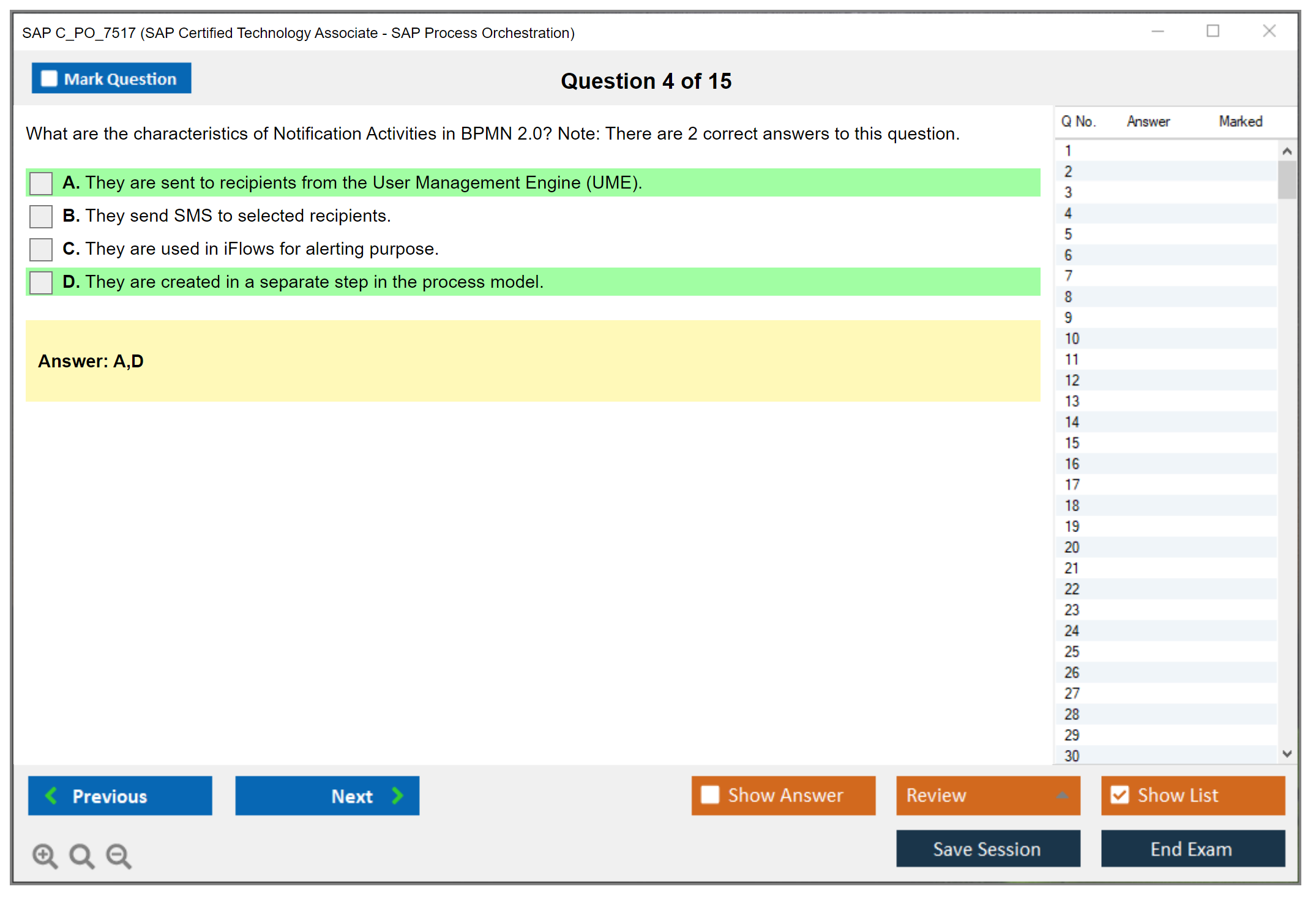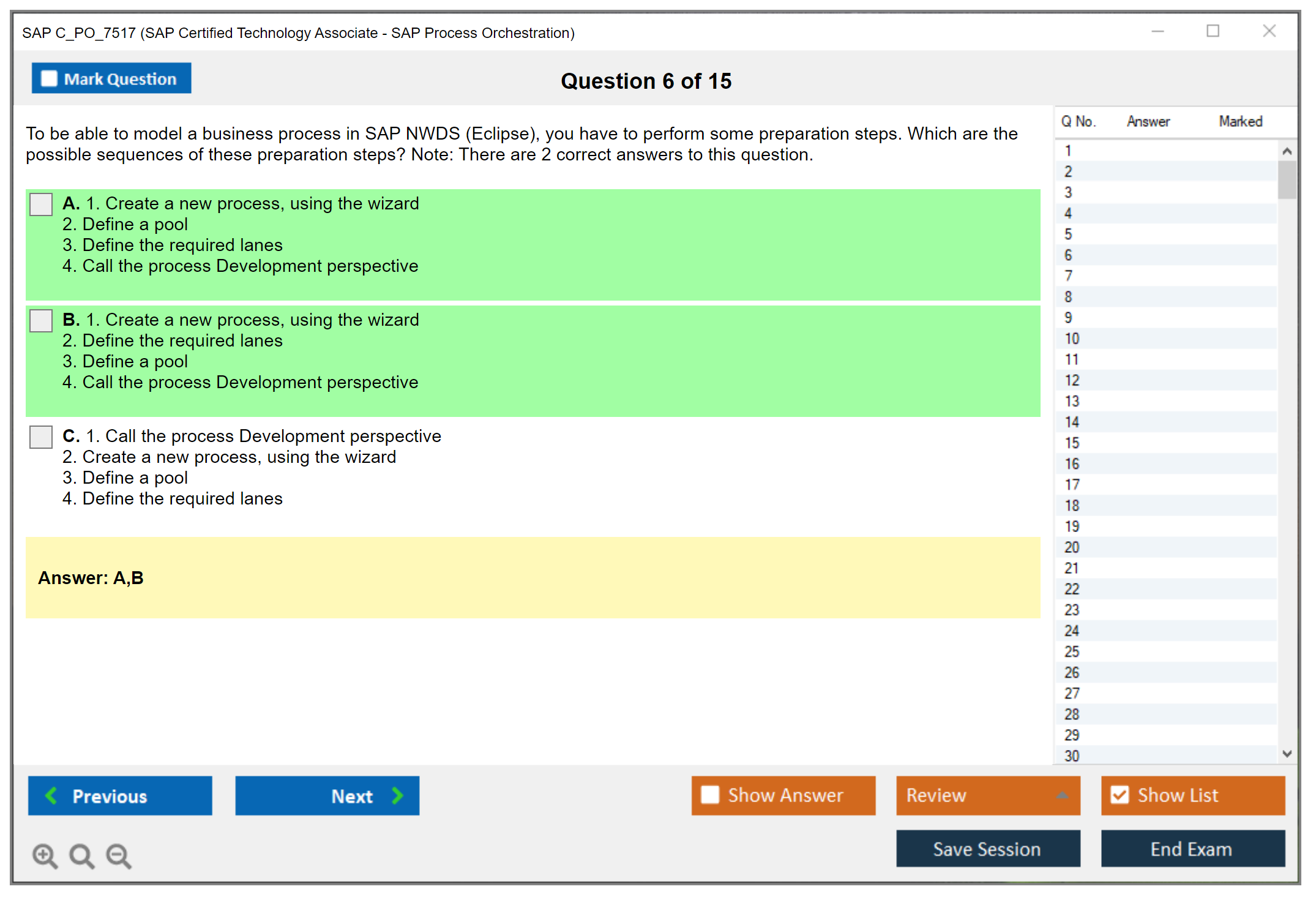 The SAP C_PO_7517 exam, also known as SAP Certified Technology Associate - SAP Process Orchestration, is designed to validate the candidate's knowledge and skills in the area of SAP Process Orchestration. This certification proves that the candidate has an overall understanding and in-depth technical skills to participate as a member of a project team in a mentored role.