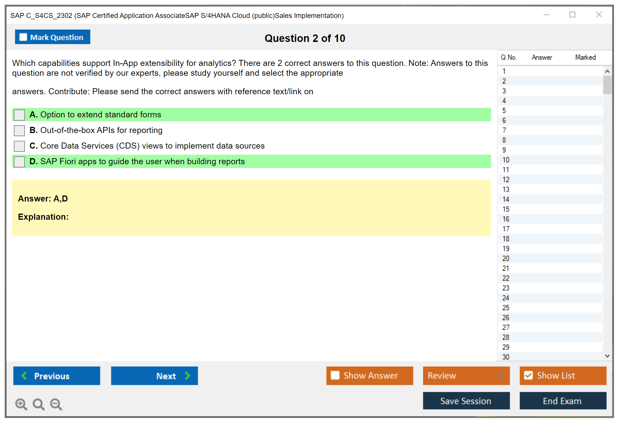 The question format of the SAP C_S4CS_2302 exam includes multiple-choice and multiple-response questions.
