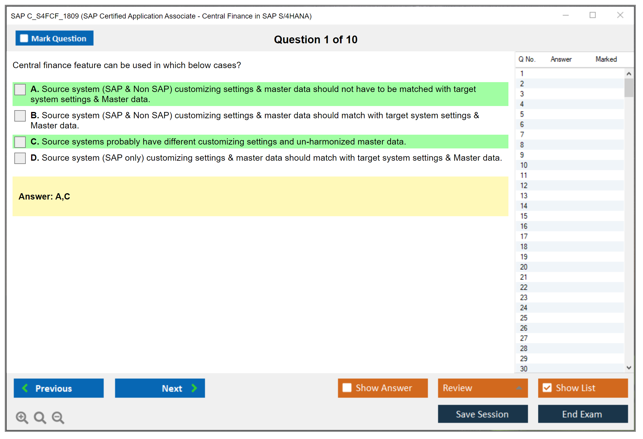 Note: SAP C_S4FCF_1809 (SAP Certified Application Associate - Central Finance in SAP S/4HANA) will not receive any new updates.