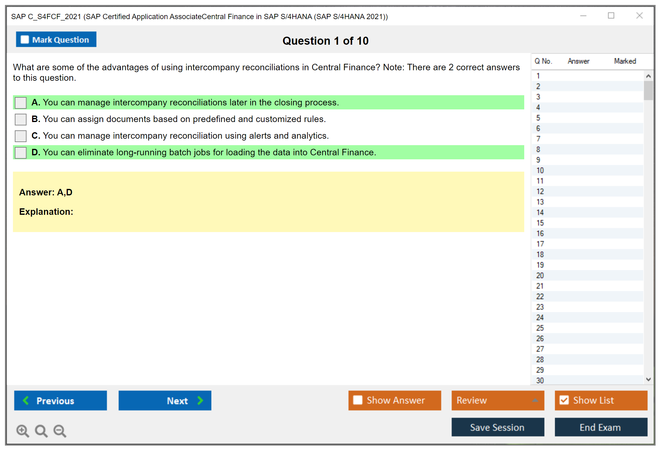 The SAP C_S4FCF_2021 exam is designed to test the candidate's knowledge and skills in Central Finance in SAP S/4HANA. It is a certification exam that ensures the candidate can apply their knowledge practically in projects and real-world scenarios.