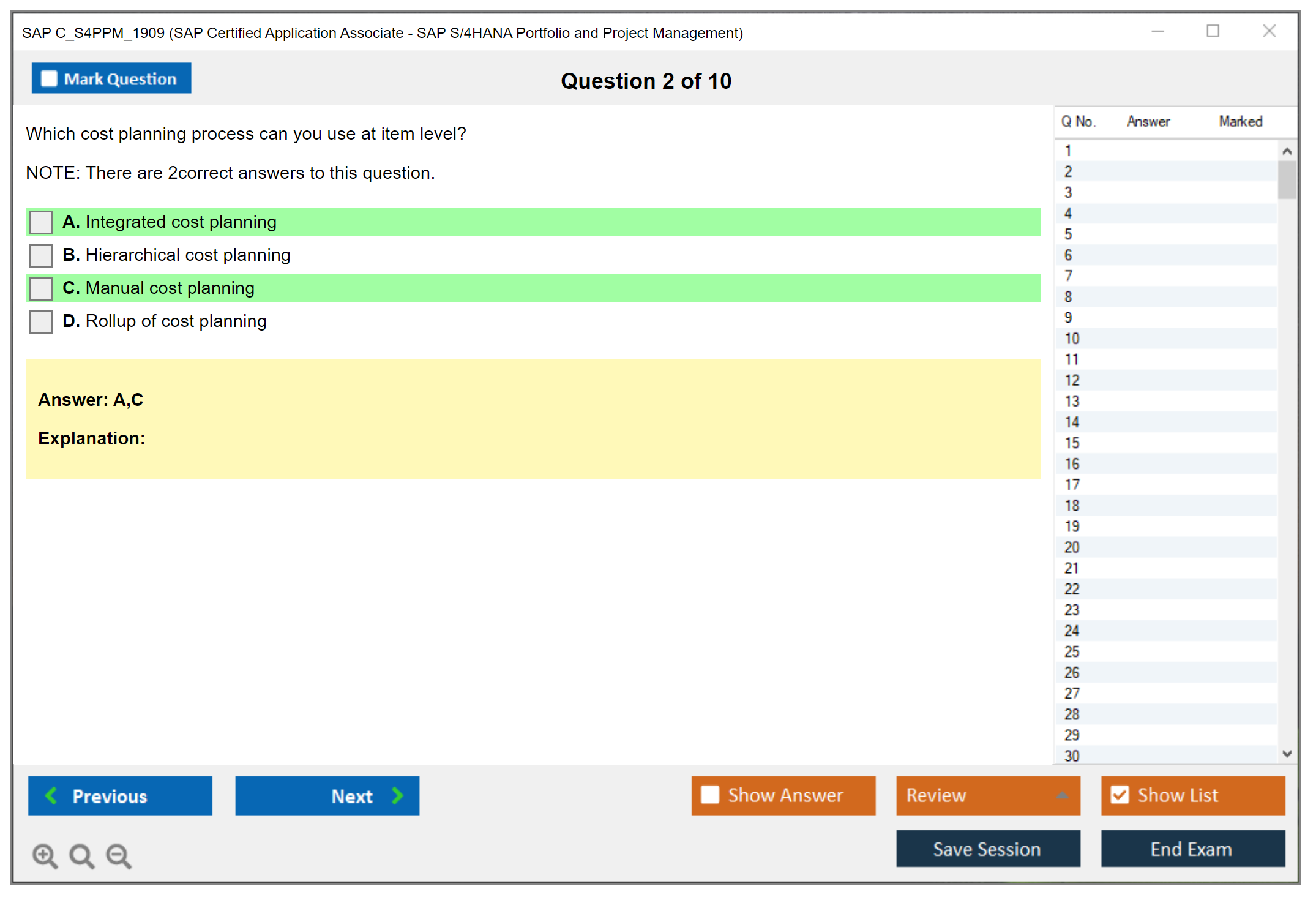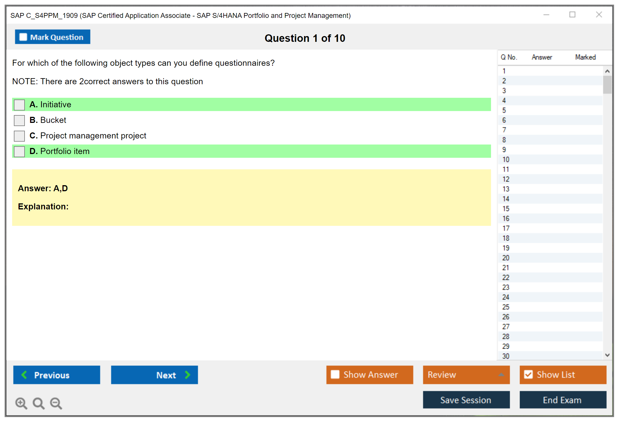 The question format of the SAP C_S4PPM_1909 Exam includes multiple-choice questions, multiple response questions, and scenario-based questions.