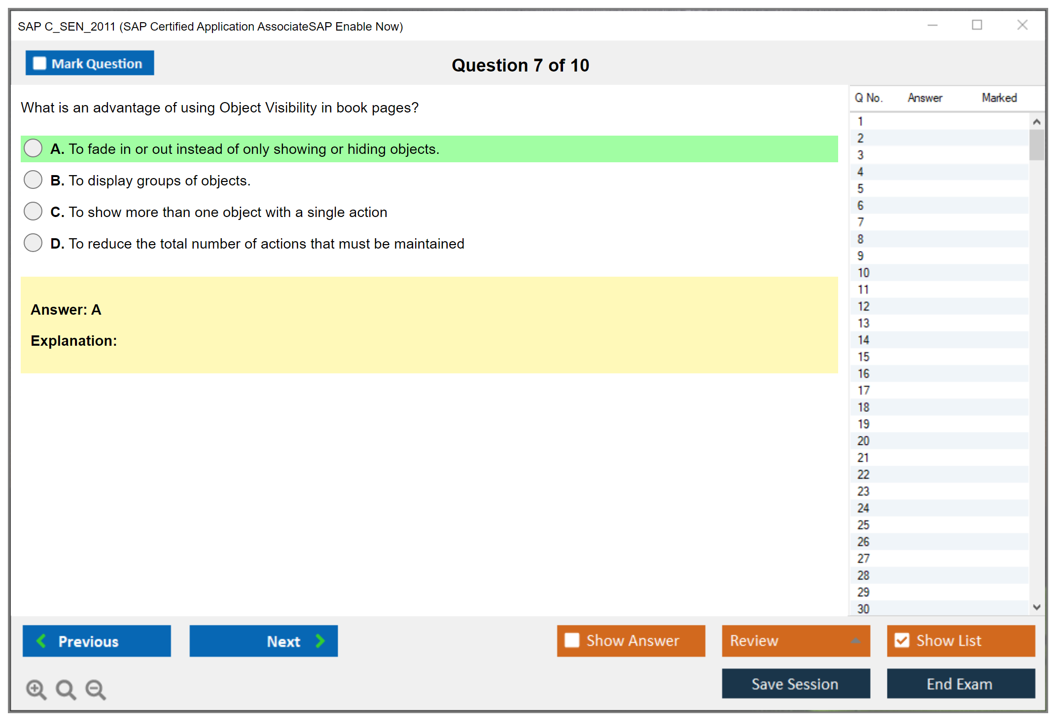 Note: SAP C_SEN_2011 (SAP Certified Application AssociateSAP Enable Now) will not receive any new updates.