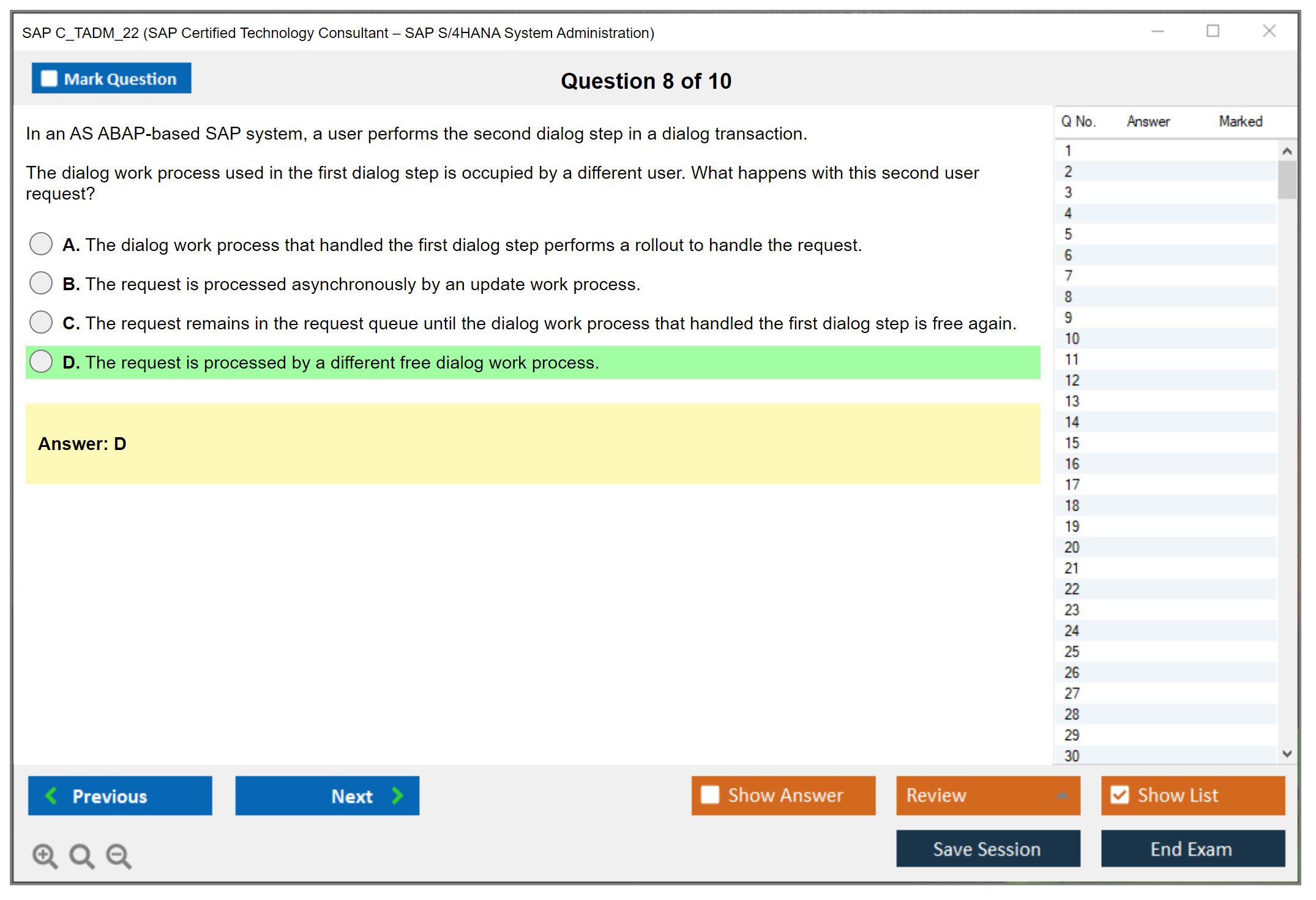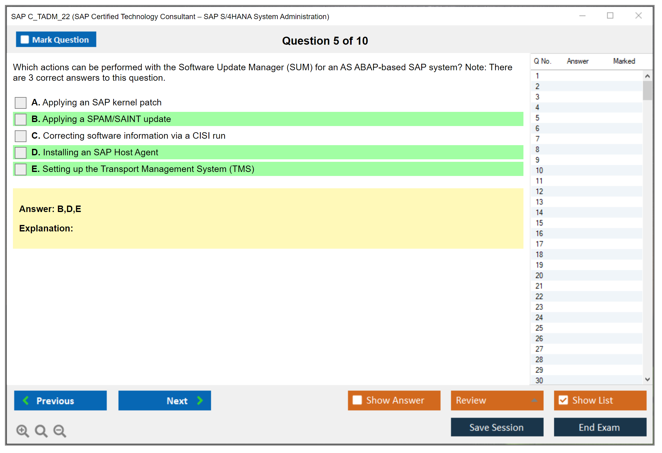 The SAP C_TADM_22 exam, also known as the SAP Certified Technology Consultant – SAP S/4HANA System Administration, is designed to validate the skills and knowledge of candidates in the area of SAP system administration, particularly with SAP S/4HANA. This certification demonstrates that the candidate has a thorough understanding of SAP system architecture, installation, and administration.