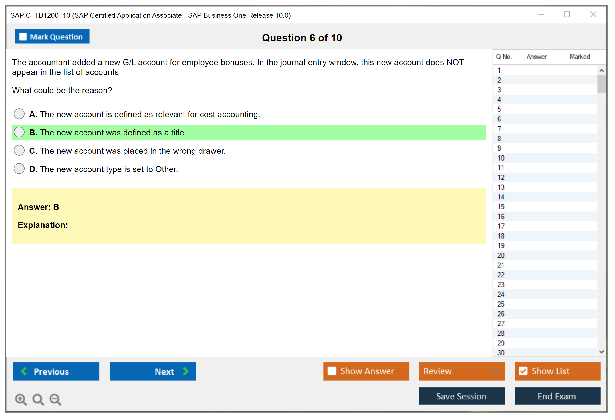 DumpsBoss: Unlocking My Potential: DumpsBoss c_tb1200_10 prep materials didn't just provide answers; they unlocked my potential for deeper understanding. The detailed explanations accompanying practice questions empowered me to analyze concepts critically and apply them confidently.