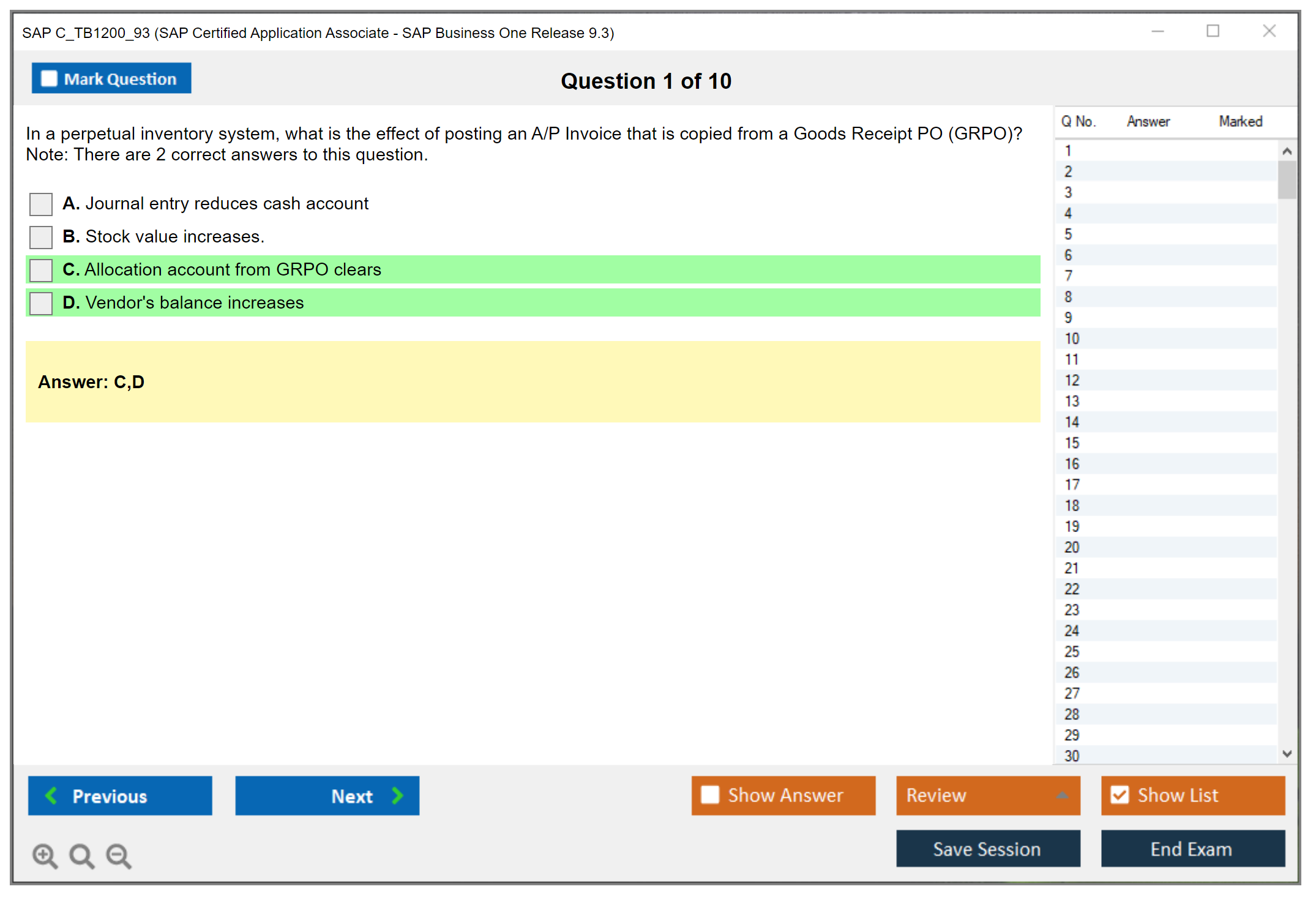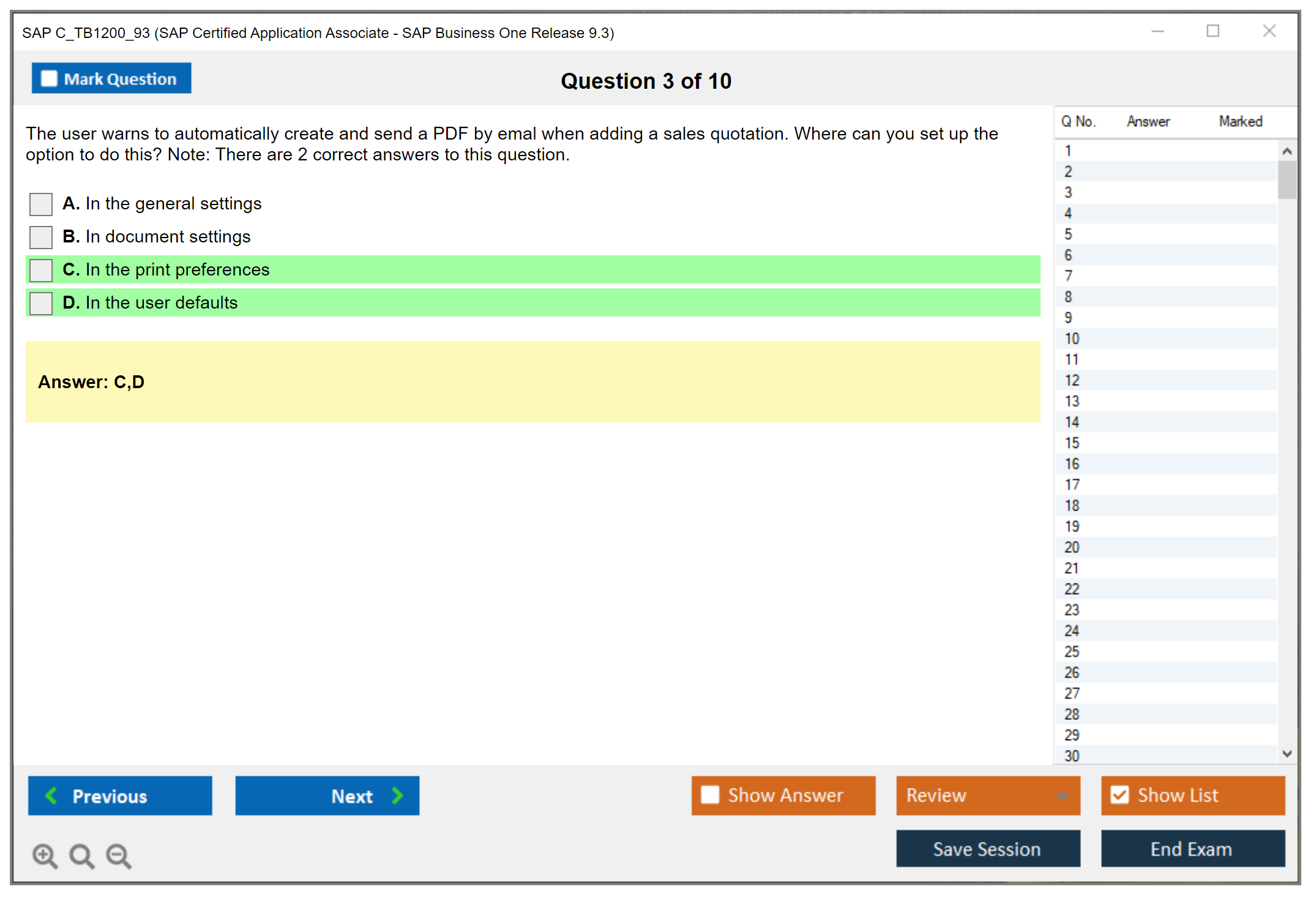C_TB1200_93 (SAP Certified Application Associate - SAP Business One Release 9.3) PDF + Test Engine