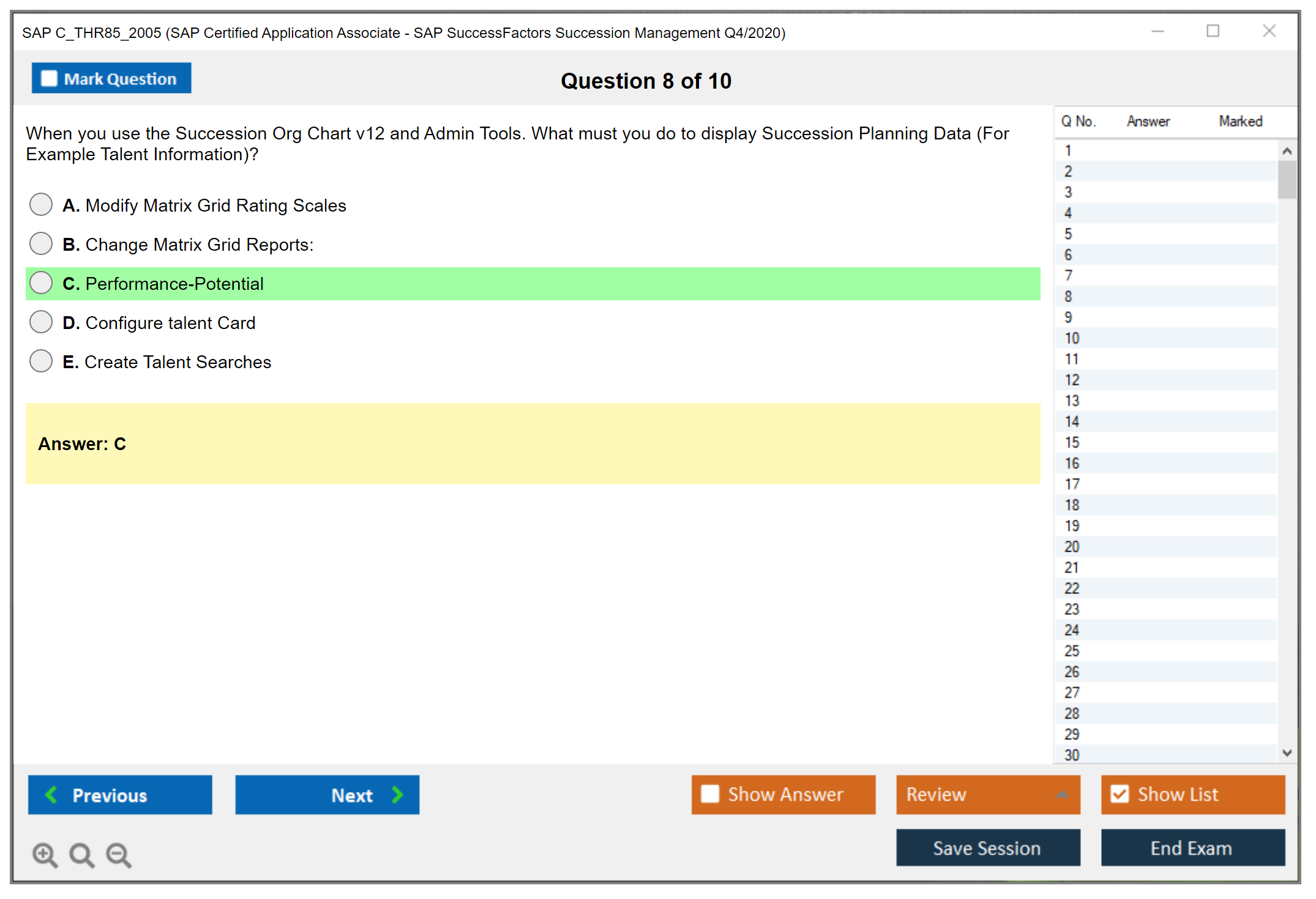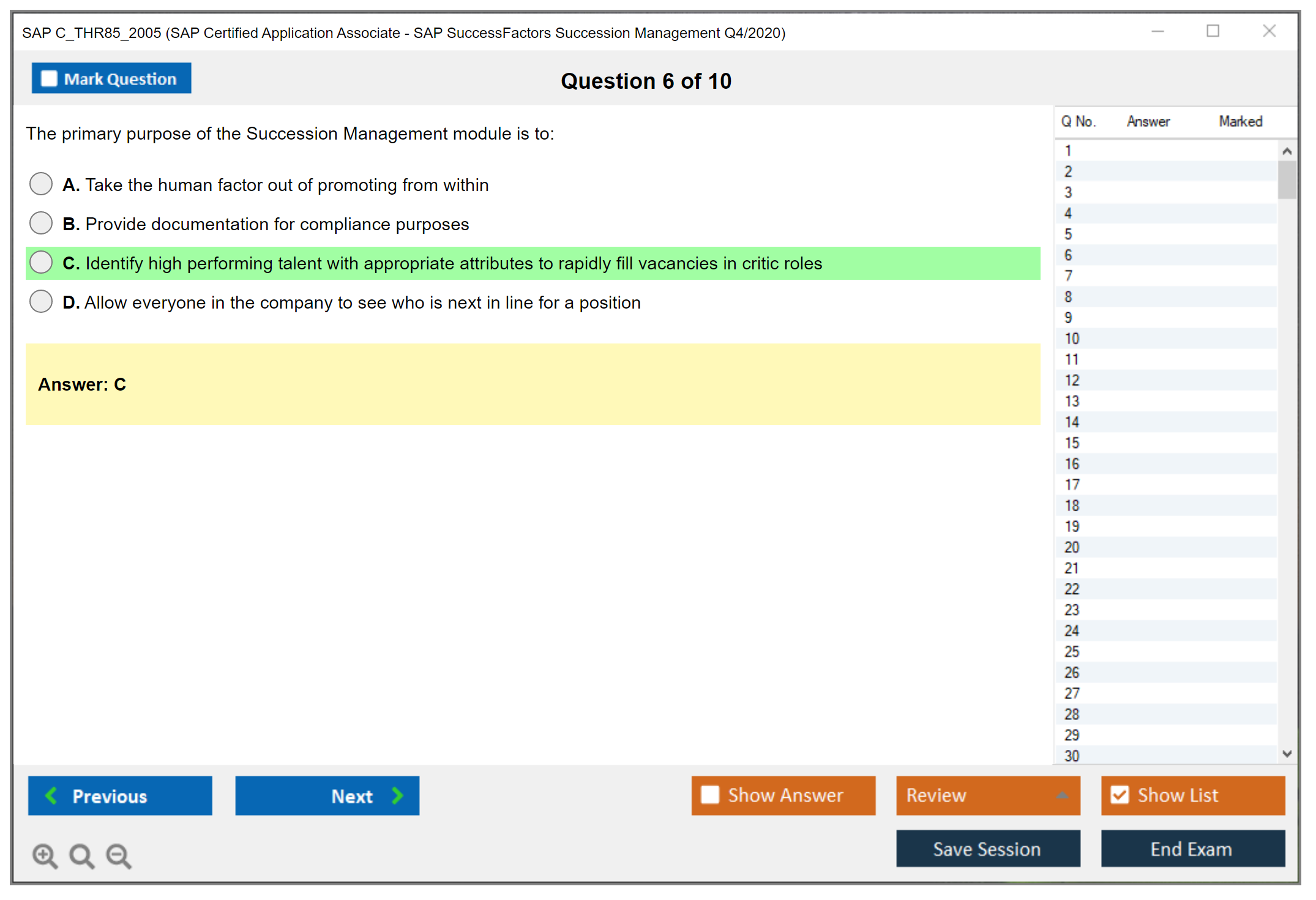 C_THR85_2005 - SAP Certified Application Associate - SAP SuccessFactors Succession Management Q4/2020 Premium Bundles