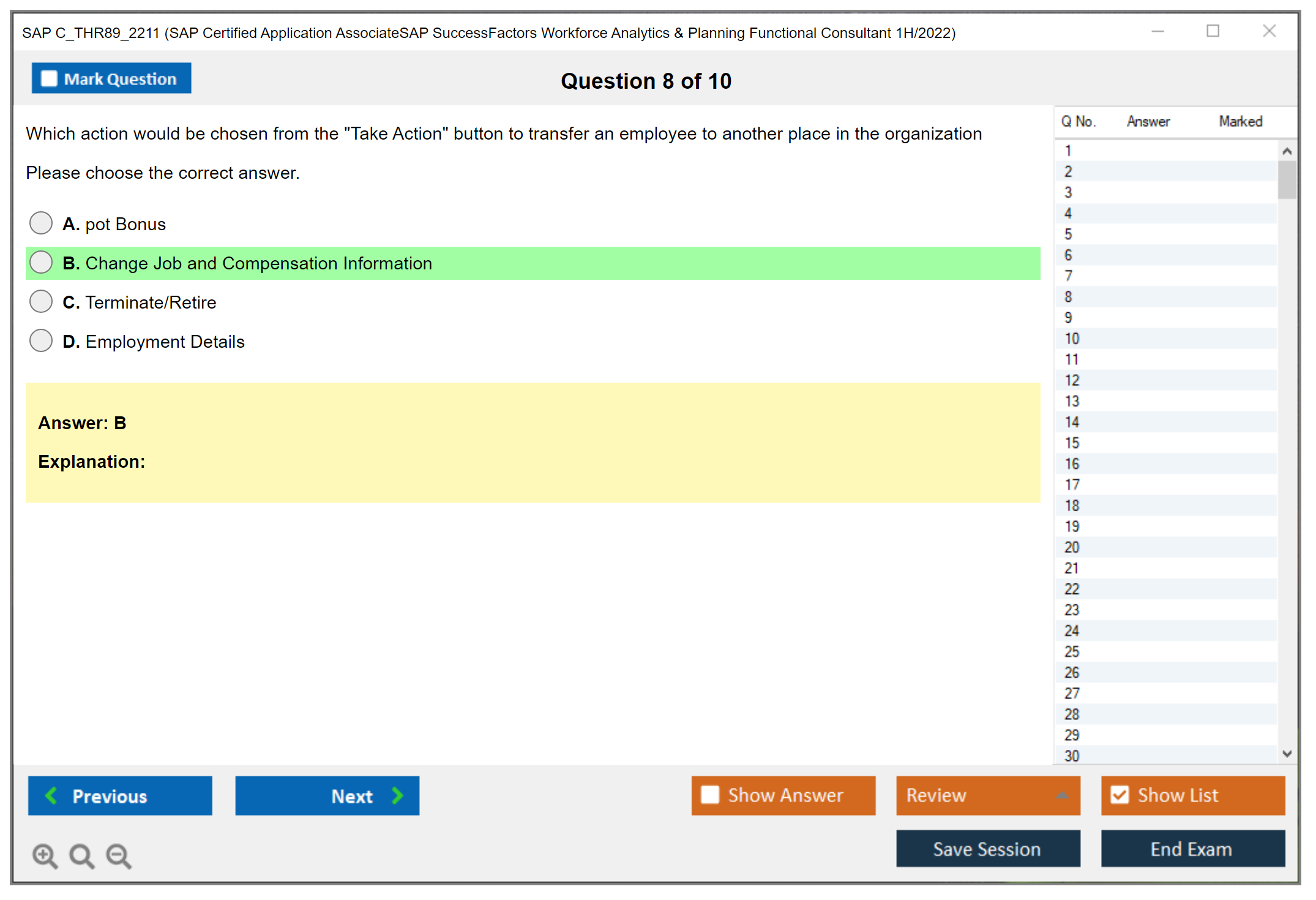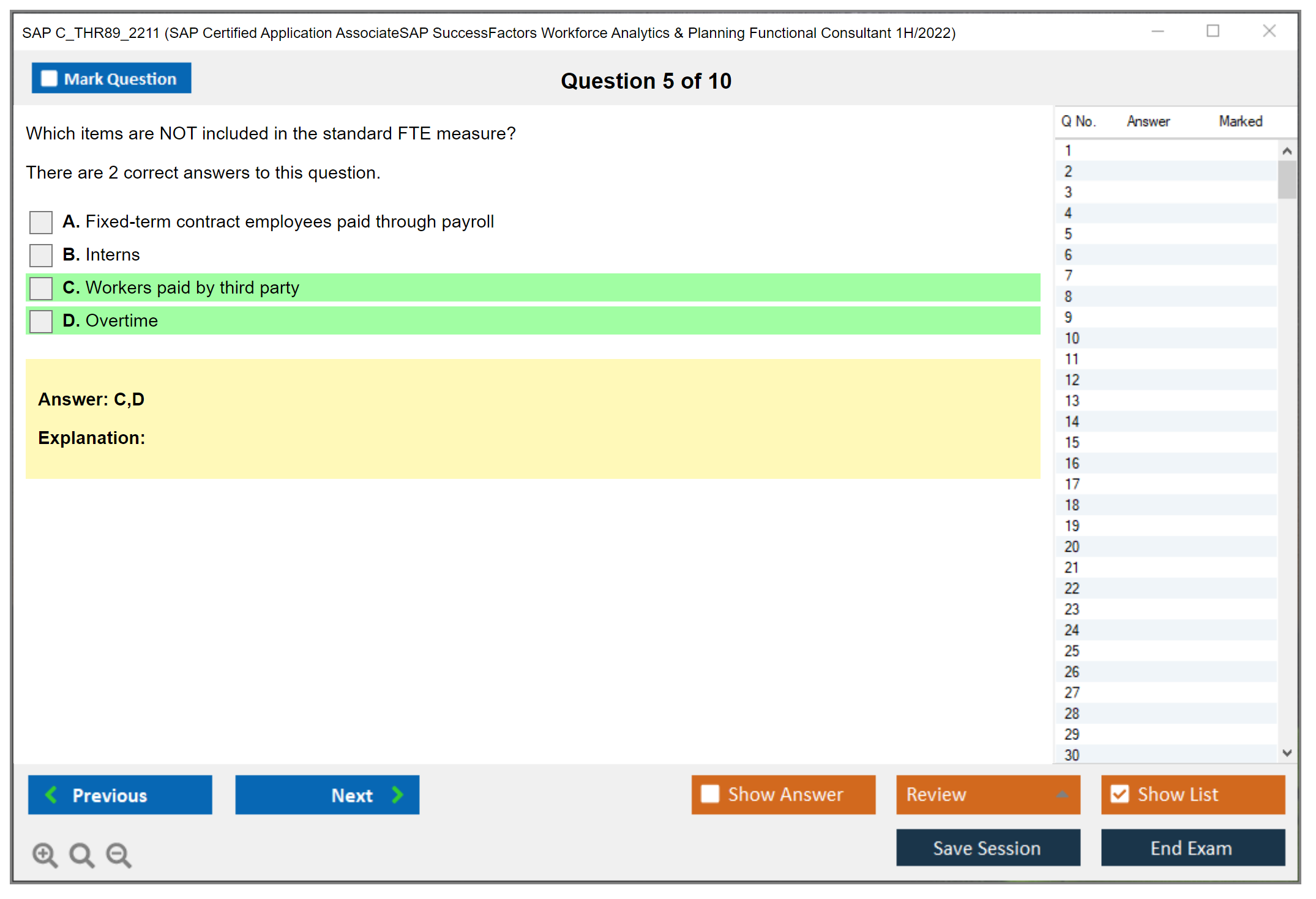 The SAP C_THR89_2211 (SAP Certified Application Associate - SAP SuccessFactors Workforce Analytics & Planning Functional Consultant 1H/2022) exam is designed to validate the candidate's knowledge and skills in the area of SAP SuccessFactors Workforce Analytics & Planning. This certification proves that the candidate has a foundational understanding and demonstrated skills to participate as a member of an SAP SuccessFactors Workforce Analytics & Planning project team.