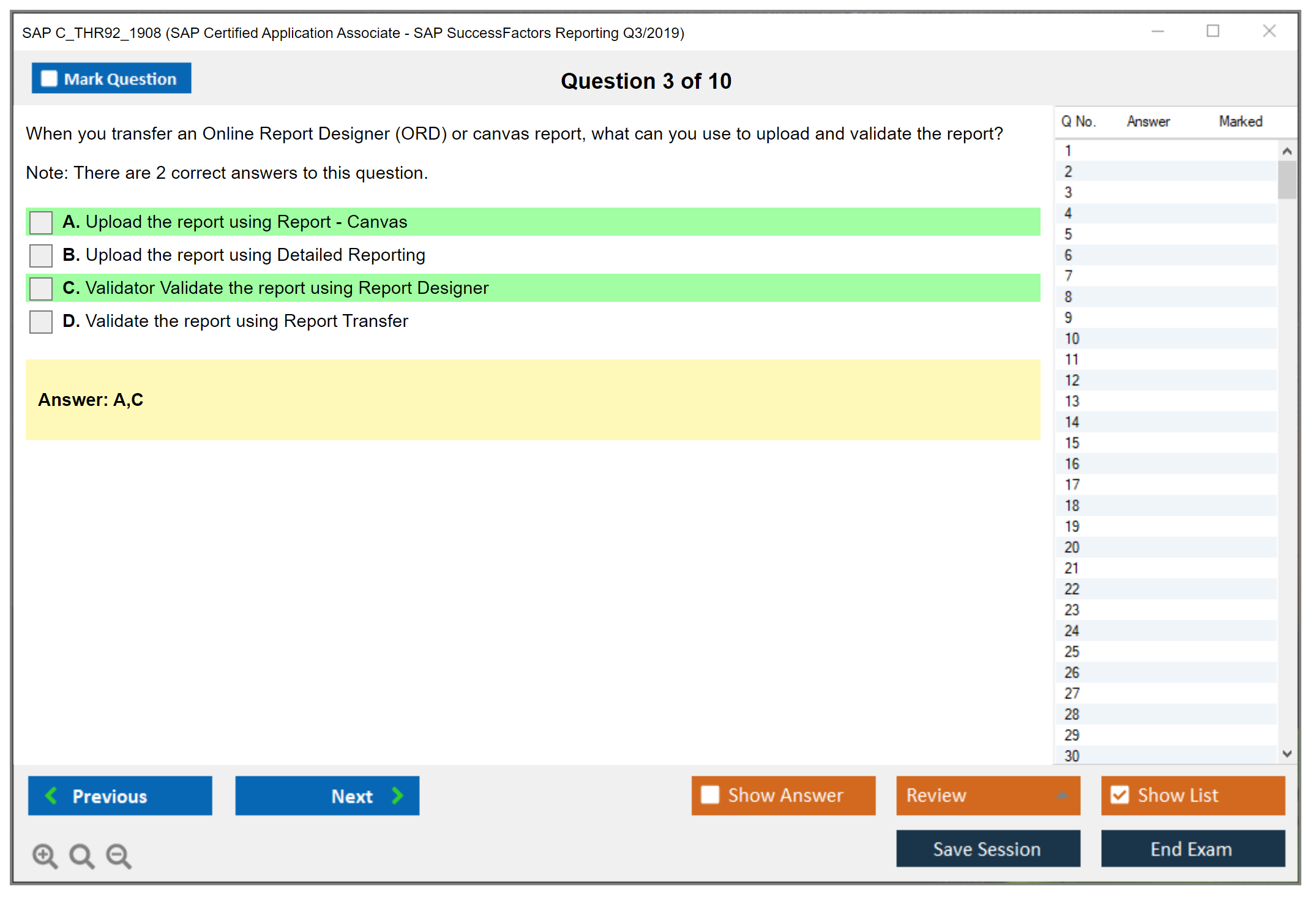 Note: SAP C_THR92_1908 (SAP Certified Application Associate - SAP SuccessFactors Reporting Q3/2019) will not receive any new updates.