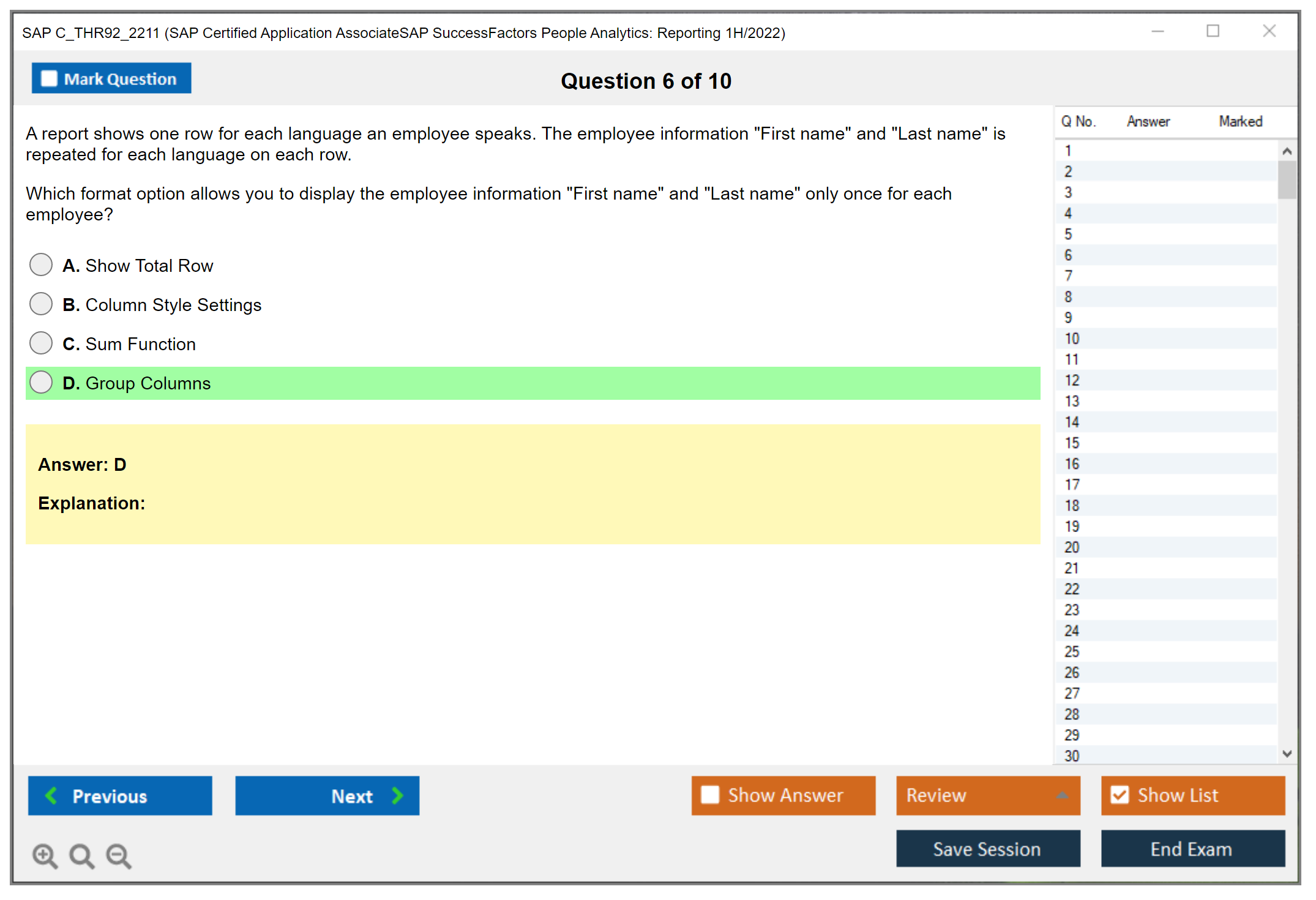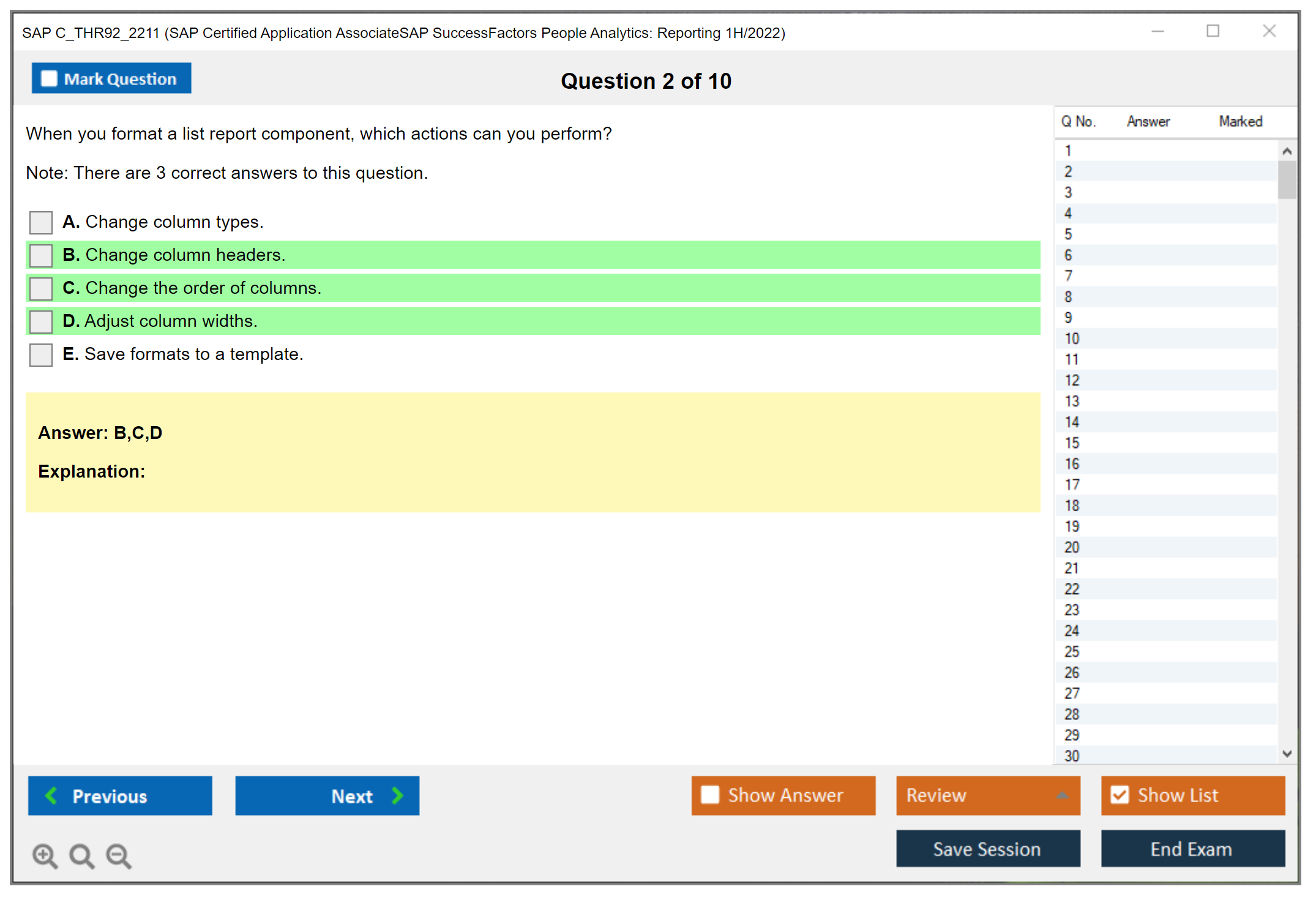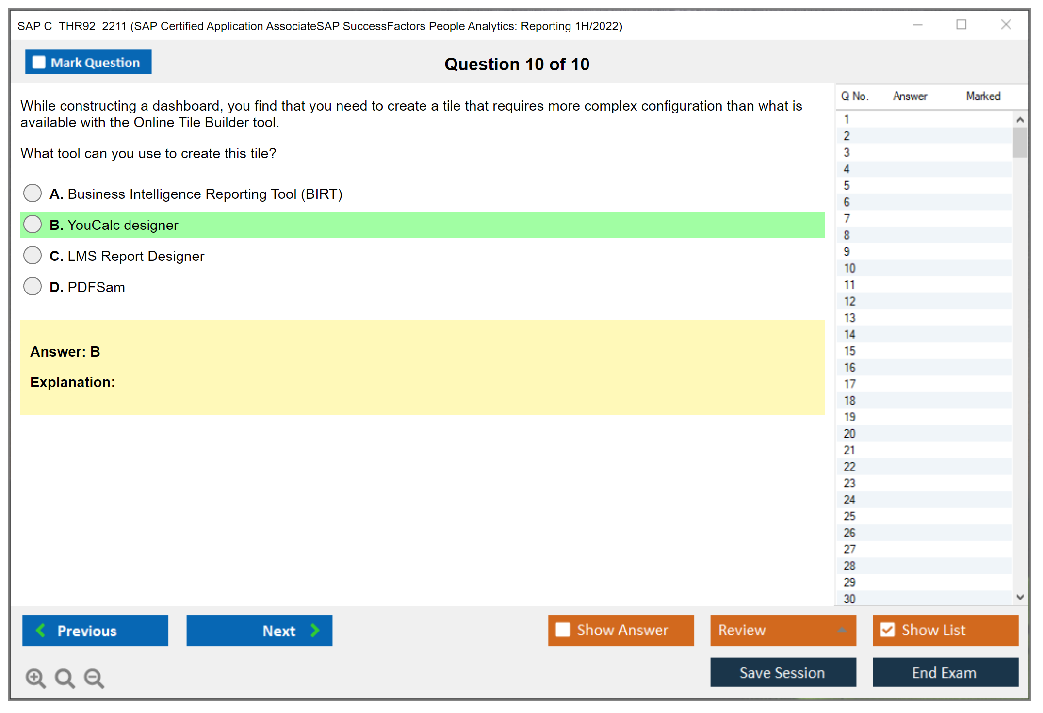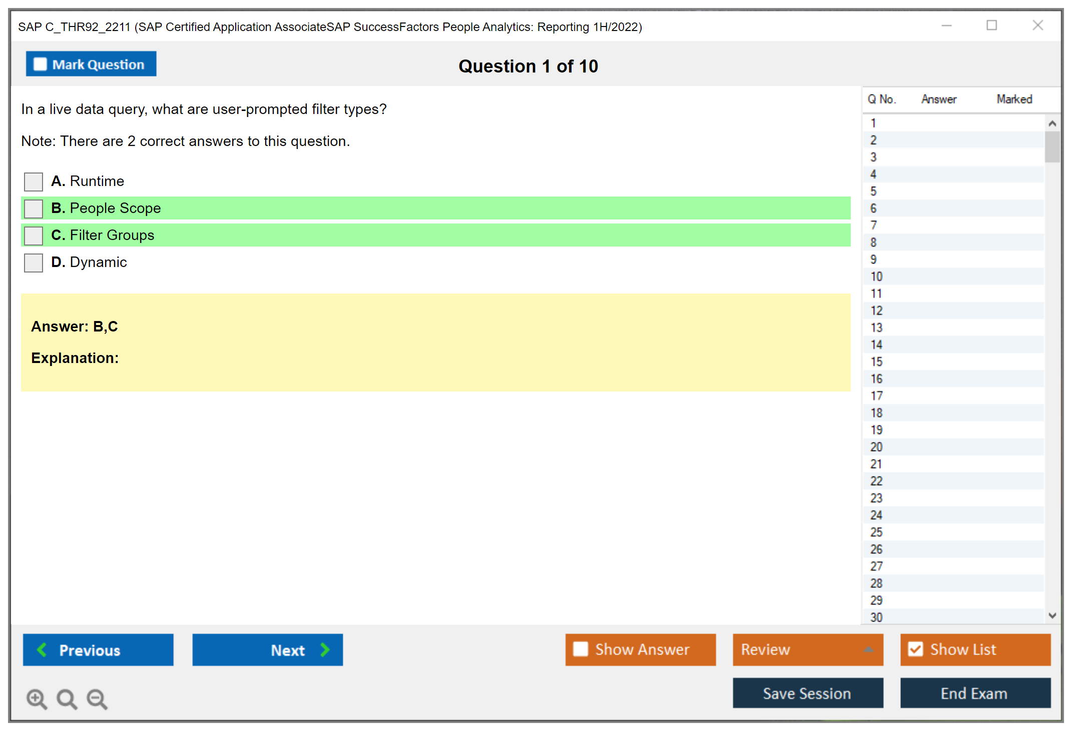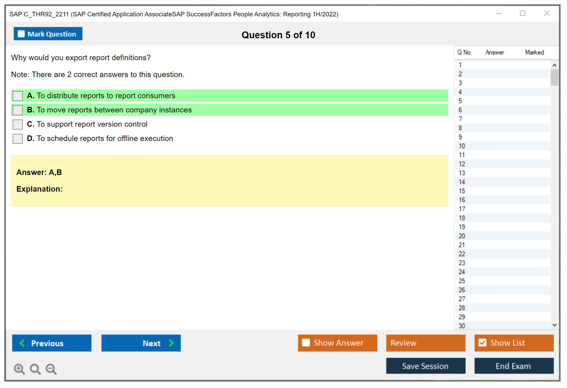 C_THR92_2211 (SAP Certified Application AssociateSAP SuccessFactors People Analytics: Reporting 1H/2022) PDF + Test Engine
