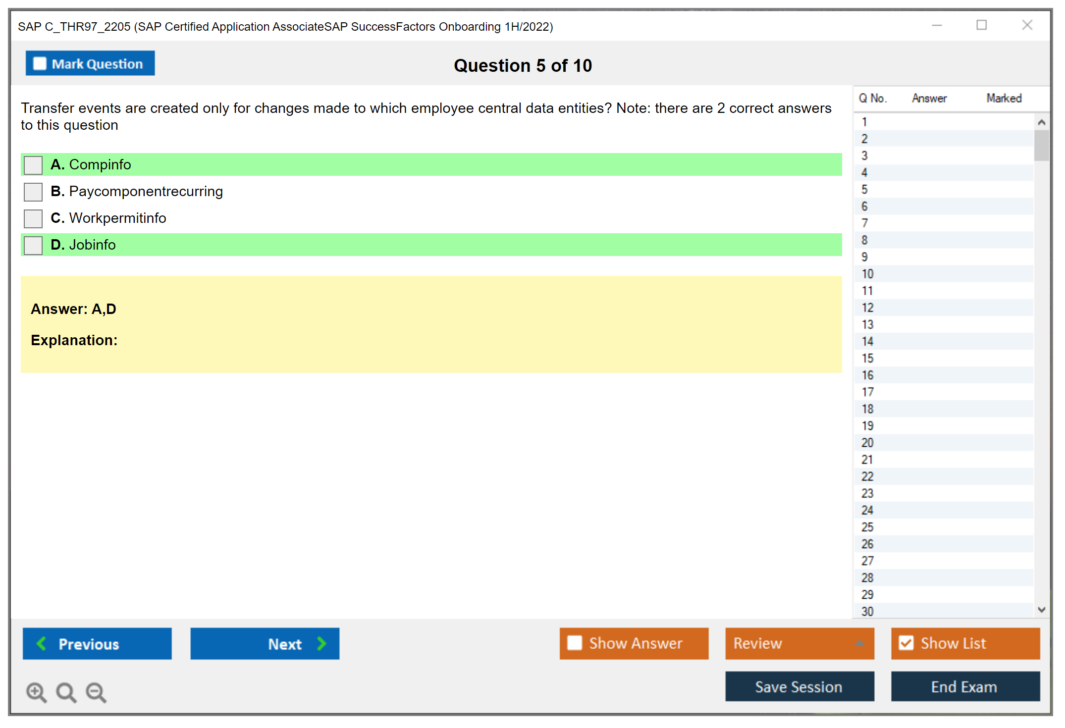 Note: SAP C_THR97_2205 (SAP Certified Application AssociateSAP SuccessFactors Onboarding 1H/2022) will not receive any new updates.