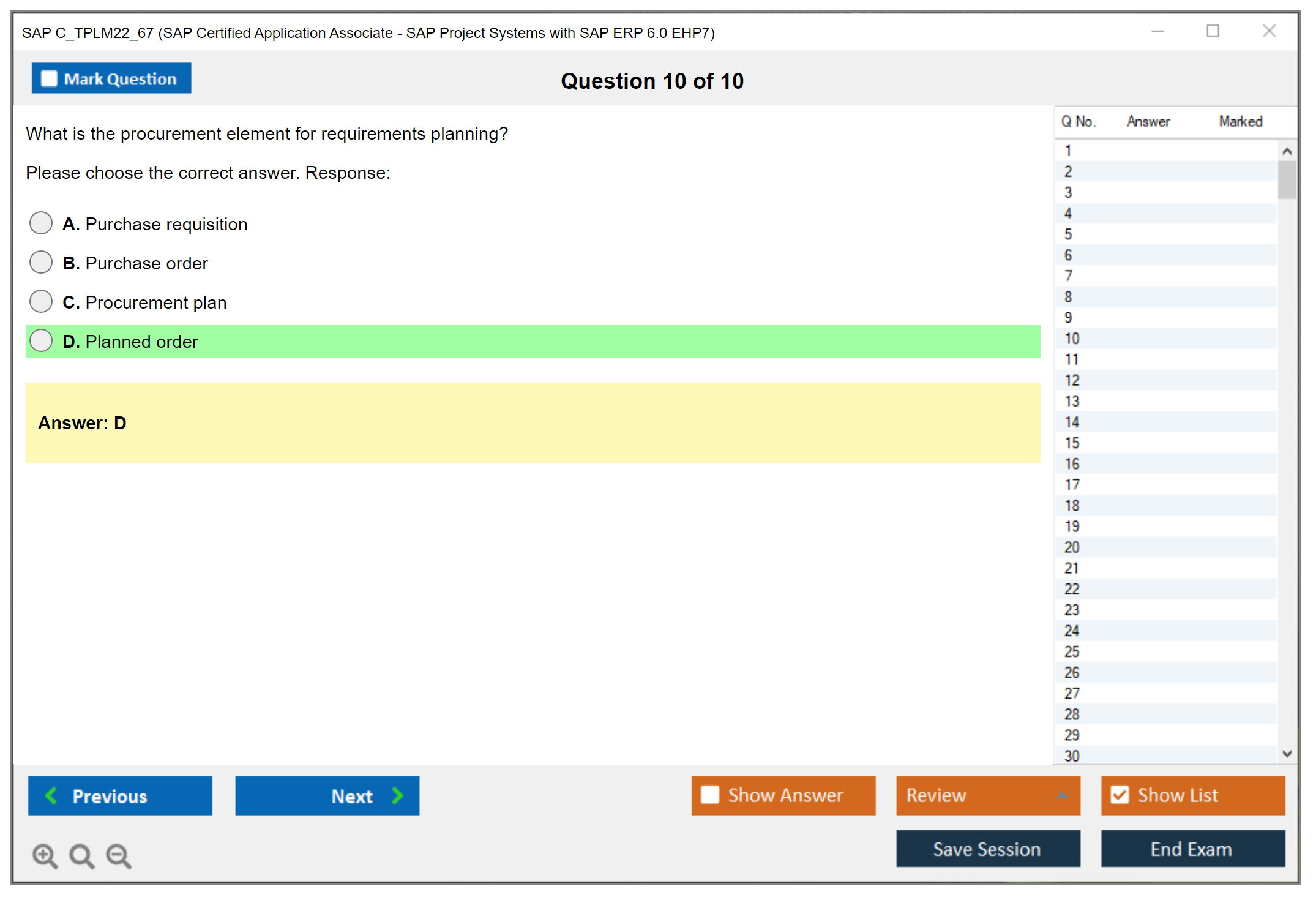 The SAP C_TPLM22_67 exam is designed to assess and certify the knowledge and skills of professionals in SAP Project Systems. This certification covers various aspects of project management within the SAP ERP framework, ensuring that individuals can effectively utilize SAP tools and techniques to manage projects.