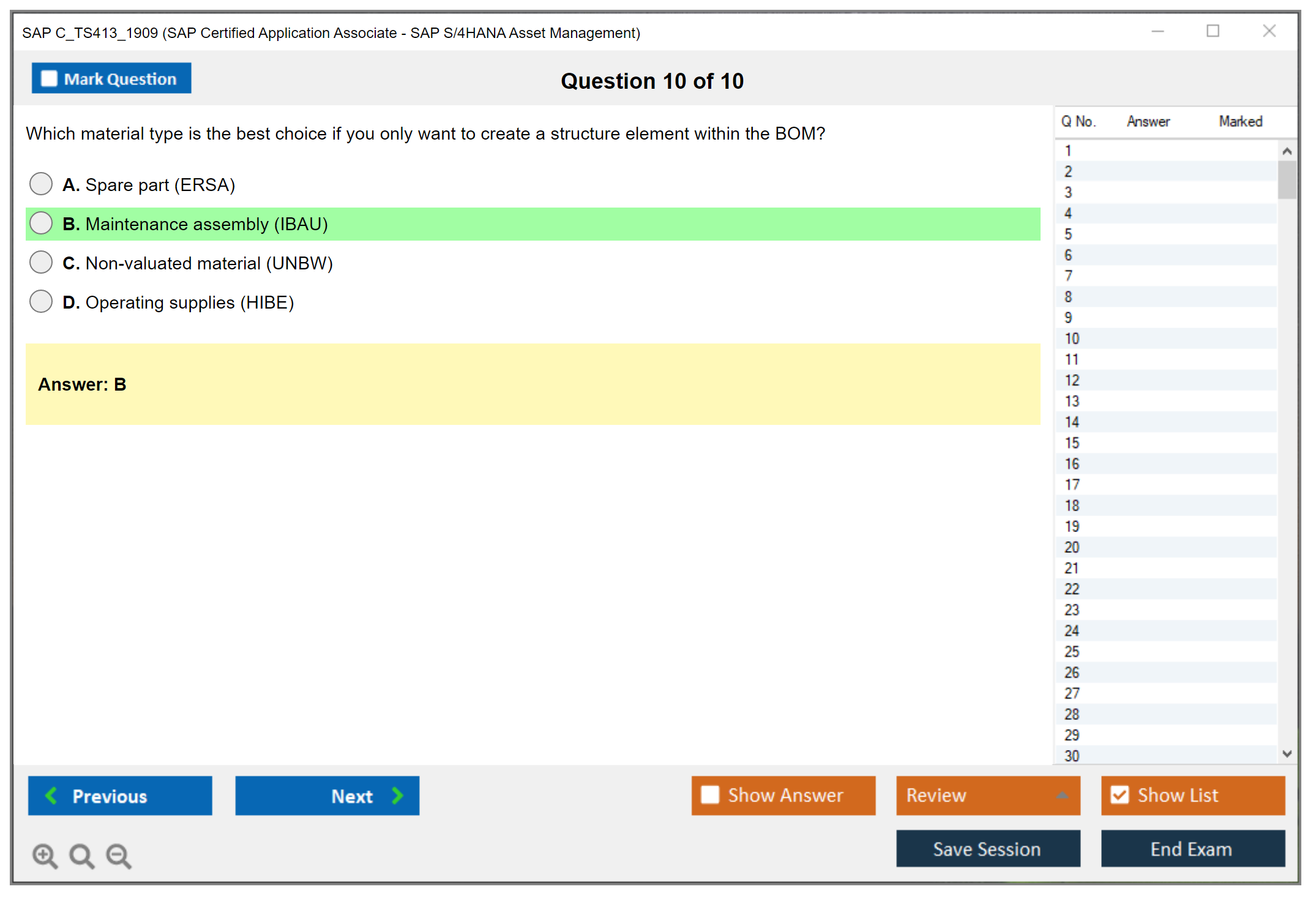 Note: SAP C_TS413_1909 (SAP Certified Application Associate - SAP S/4HANA Asset Management) will not receive any new updates.