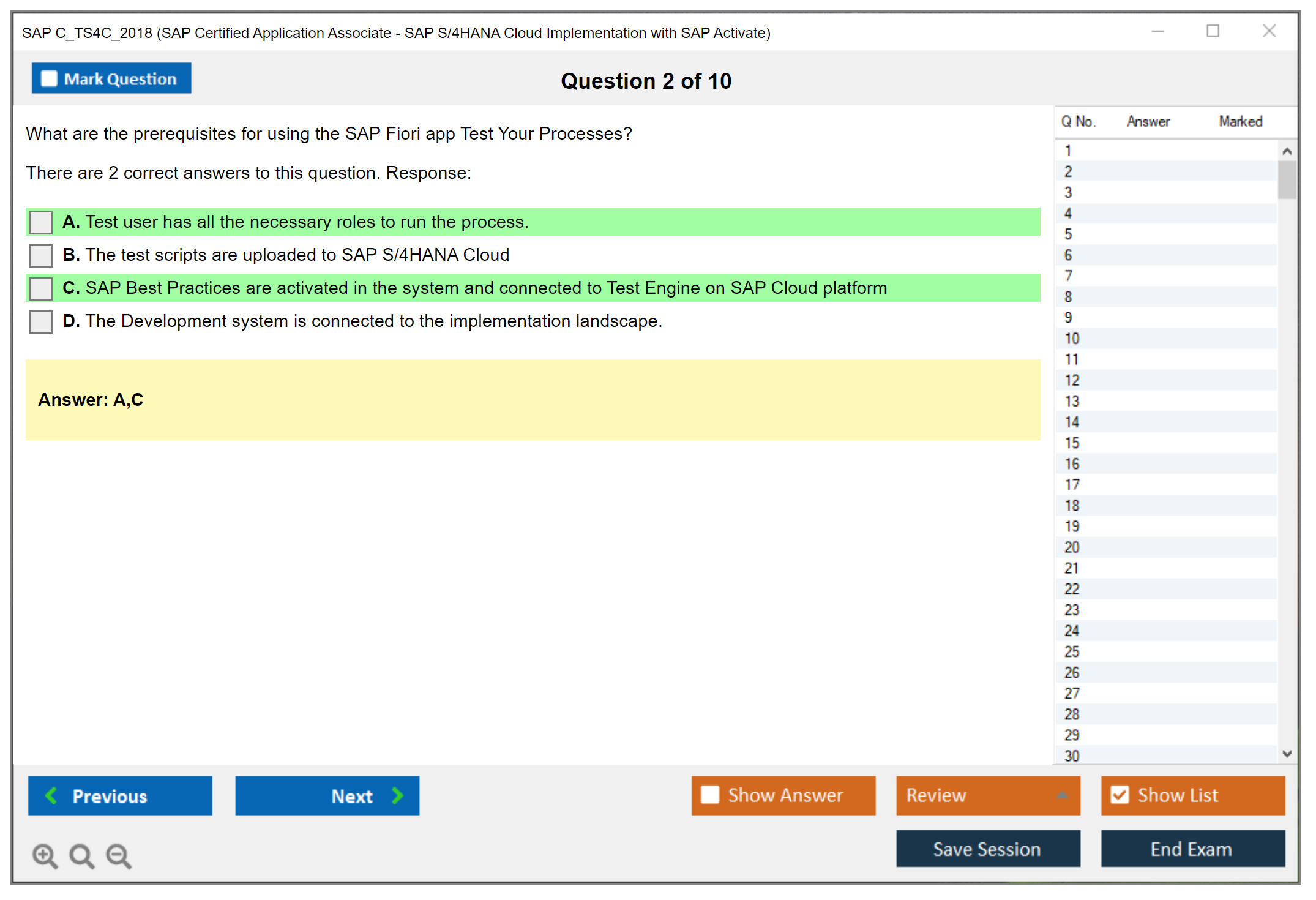 C_TS4C_2018 (SAP Certified Application Associate - SAP S/4HANA Cloud Implementation with SAP Activate) PDF + Test Engine