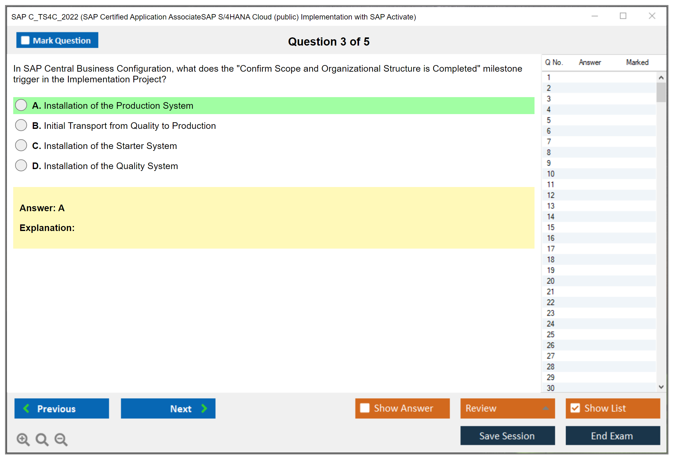 The SAP C_TS4C_2022 exam is designed to test the candidate's knowledge and skills in implementing SAP S/4HANA Cloud (public) using the SAP Activate methodology. It covers various aspects of the implementation process, including project management, solution configuration, and integration.
