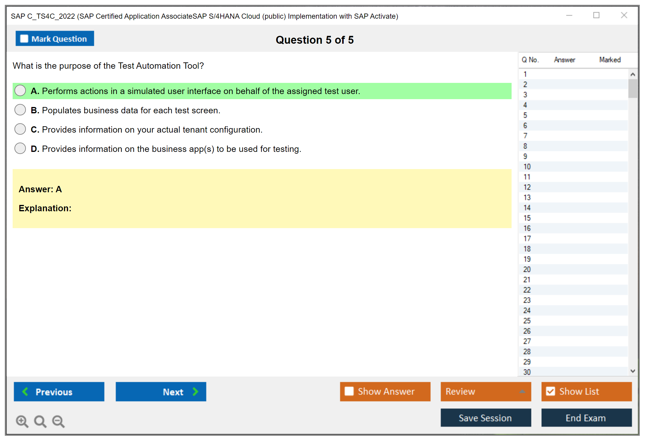 The SAP C_TS4C_2022 exam is a certification test for the SAP Certified Application Associate - SAP S/4HANA Cloud (public) Implementation with SAP Activate. This certification validates that the candidate possesses the fundamental and core knowledge required of the SAP S/4HANA Cloud (public) Implementation profile.