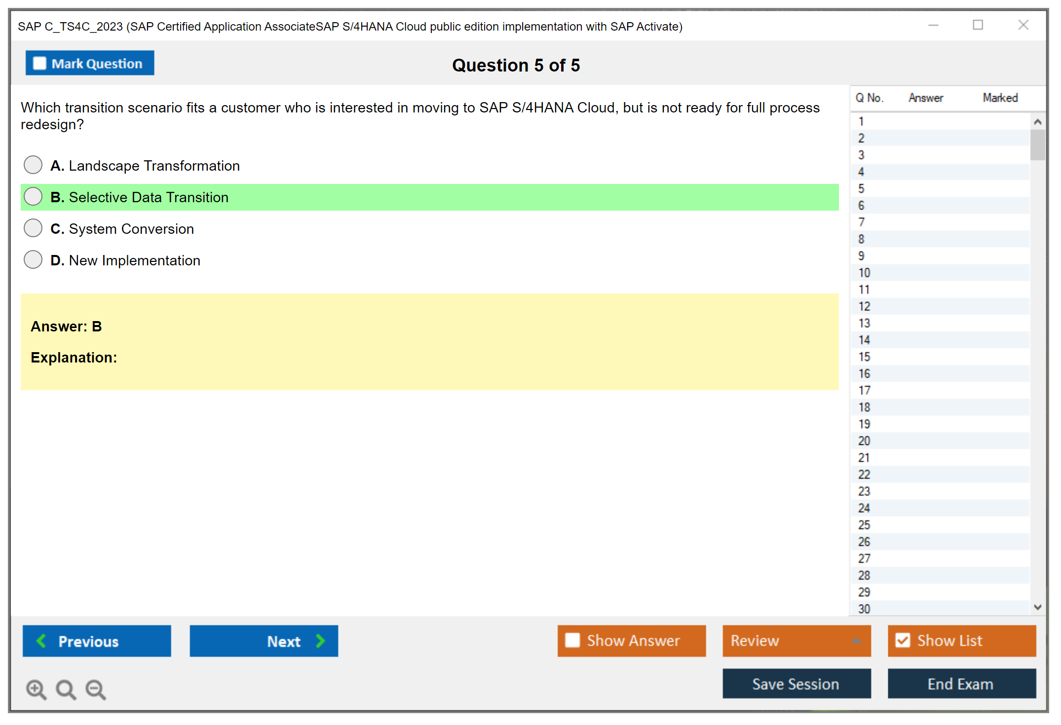 Passed the SAP C_TS4C_2023 Exam with flying colors, all thanks to DumpsBoss. The practice questions were diverse, and the detailed explanations helped reinforce my knowledge. DumpsBoss is a reliable study companion!