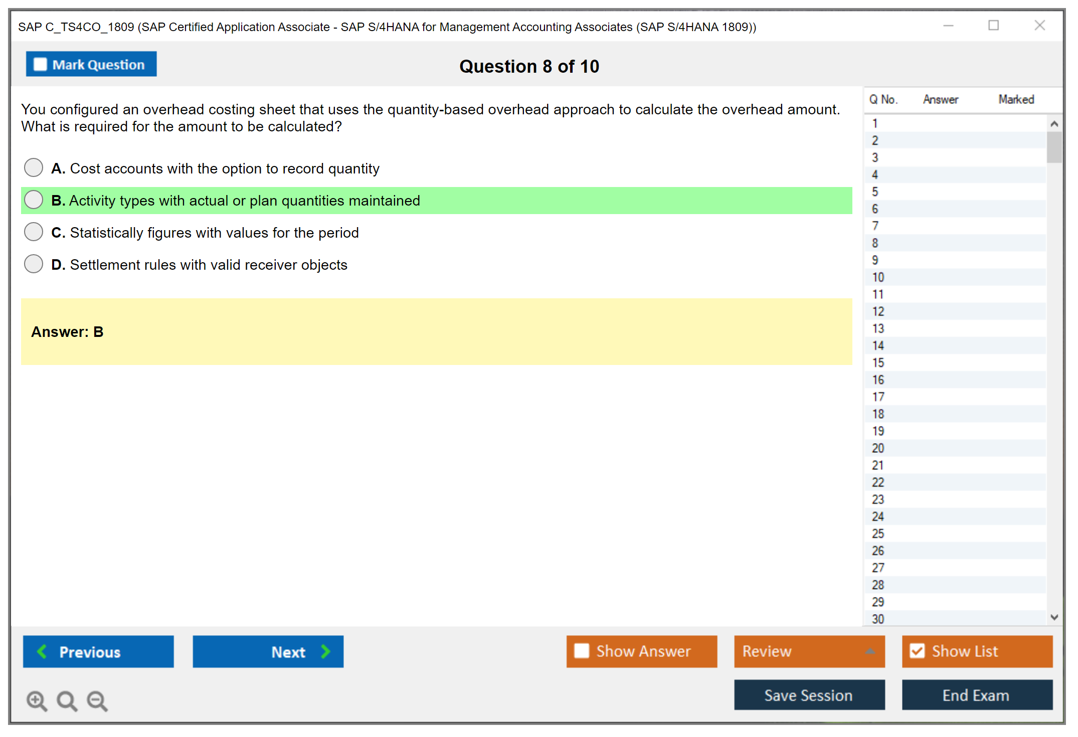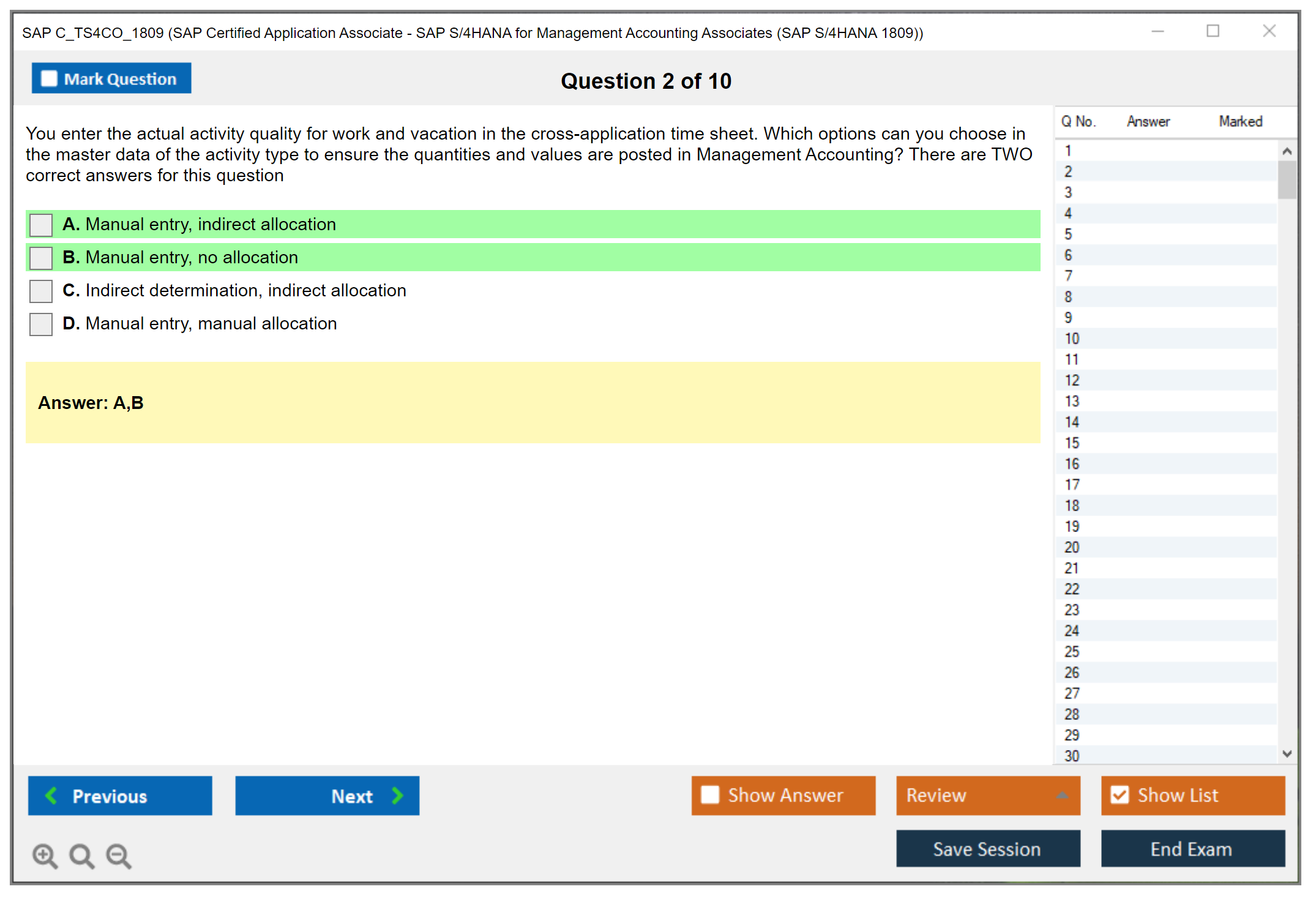 The SAP C_TS4CO_1809 exam is designed for individuals who want to validate their skills and knowledge in SAP S/4HANA for Management Accounting Associates. This certification demonstrates that the candidate has a fundamental understanding and skills in the areas of SAP S/4HANA Management Accounting.