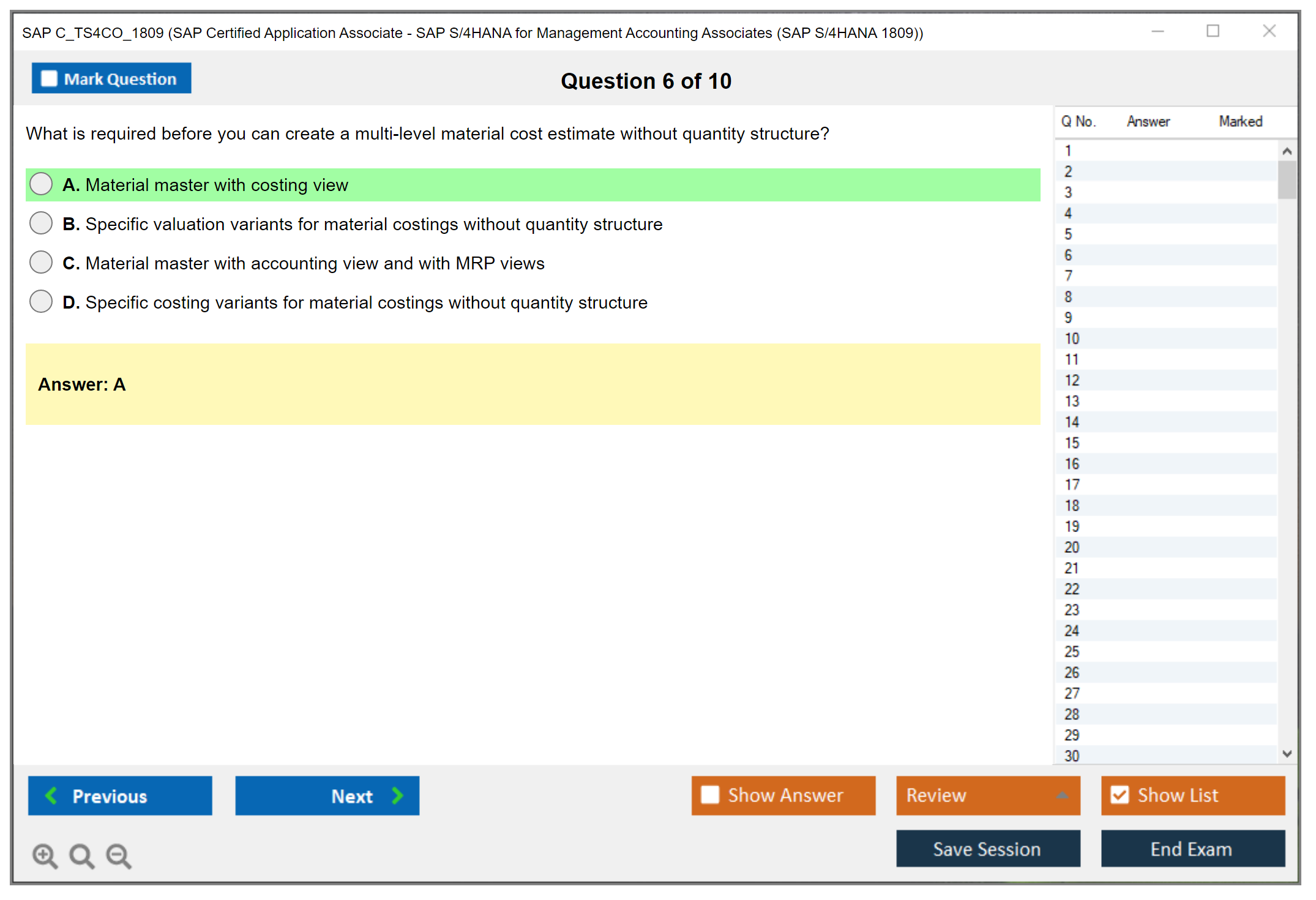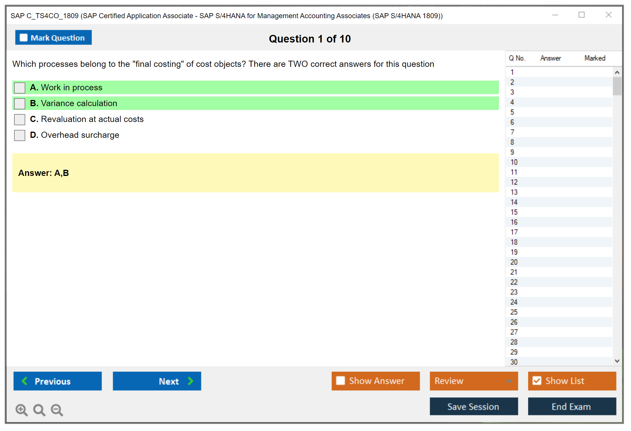 C_TS4CO_1809 - SAP Certified Application Associate - SAP S/4HANA for Management Accounting Associates (SAP S/4HANA 1809) Premium Bundles