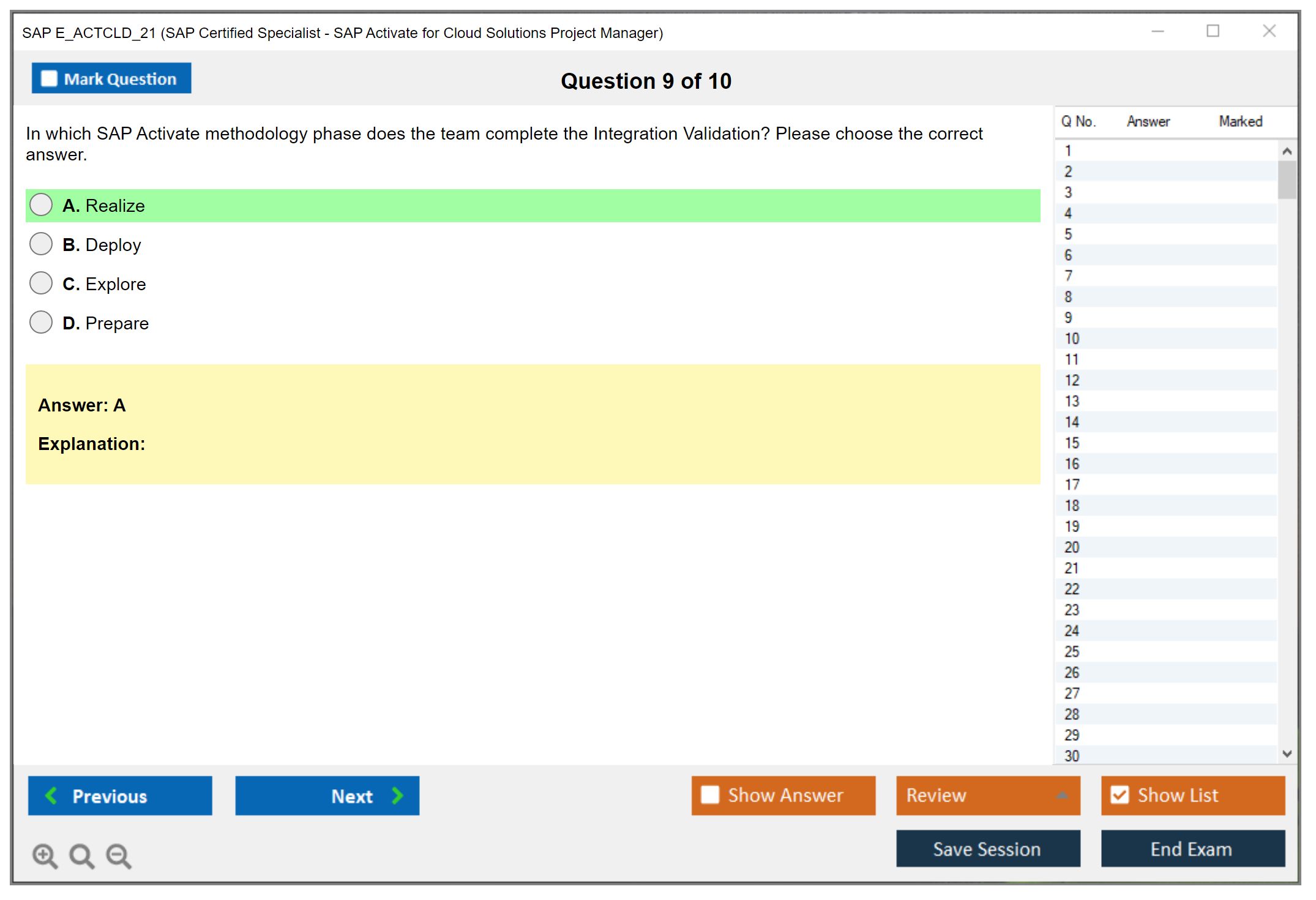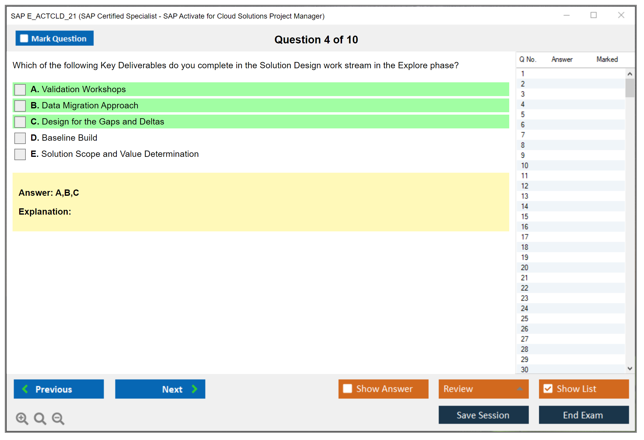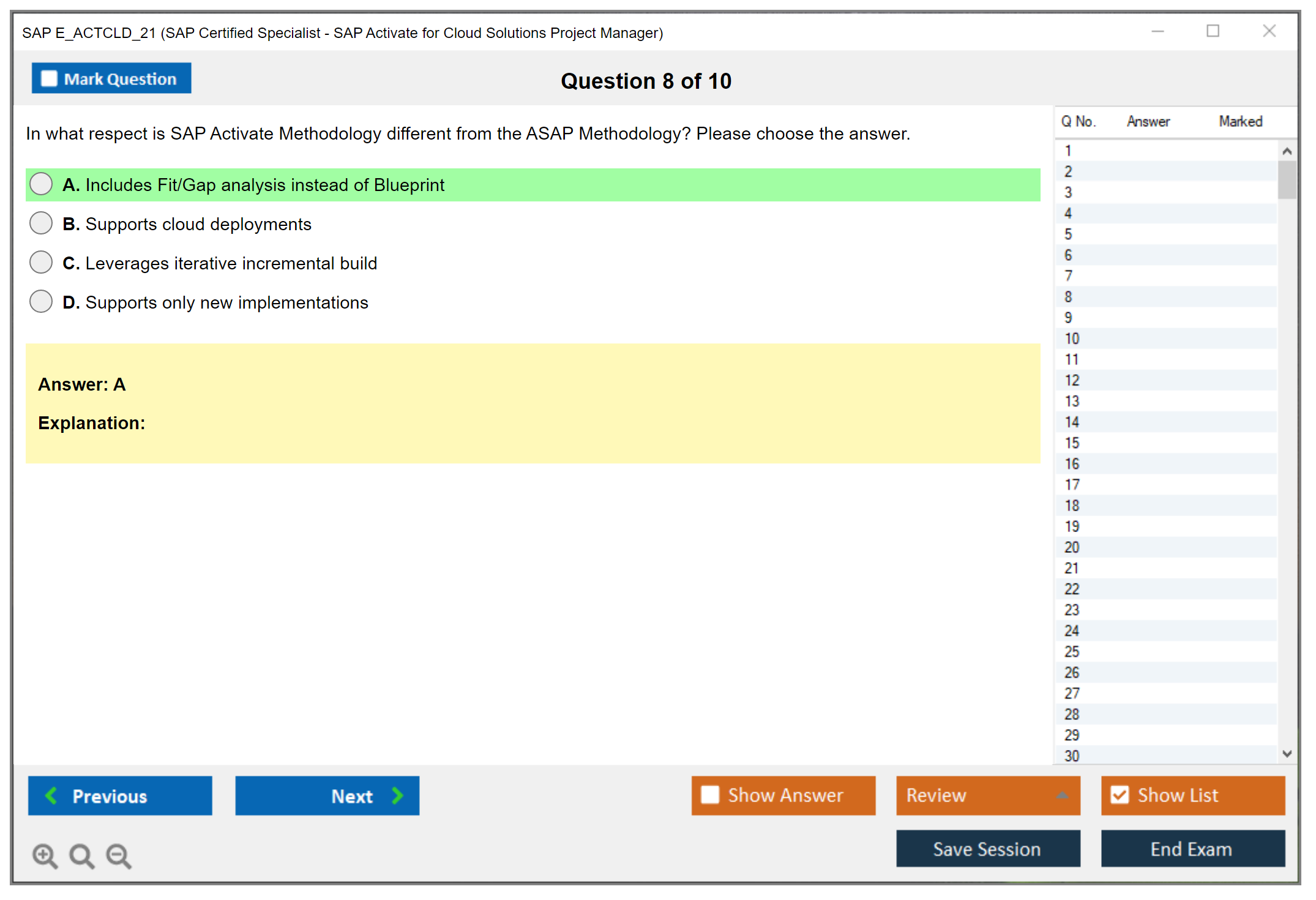 The E_ACTCLD_21 - SAP Certified Specialist - SAP Activate For Cloud Solutions Project Manager exam materials from DumpsBoss were a lifesaver! The detailed questions and thorough explanations helped me pass the SAP Activate exam with confidence. DumpsBoss is my go-to for certification prep!