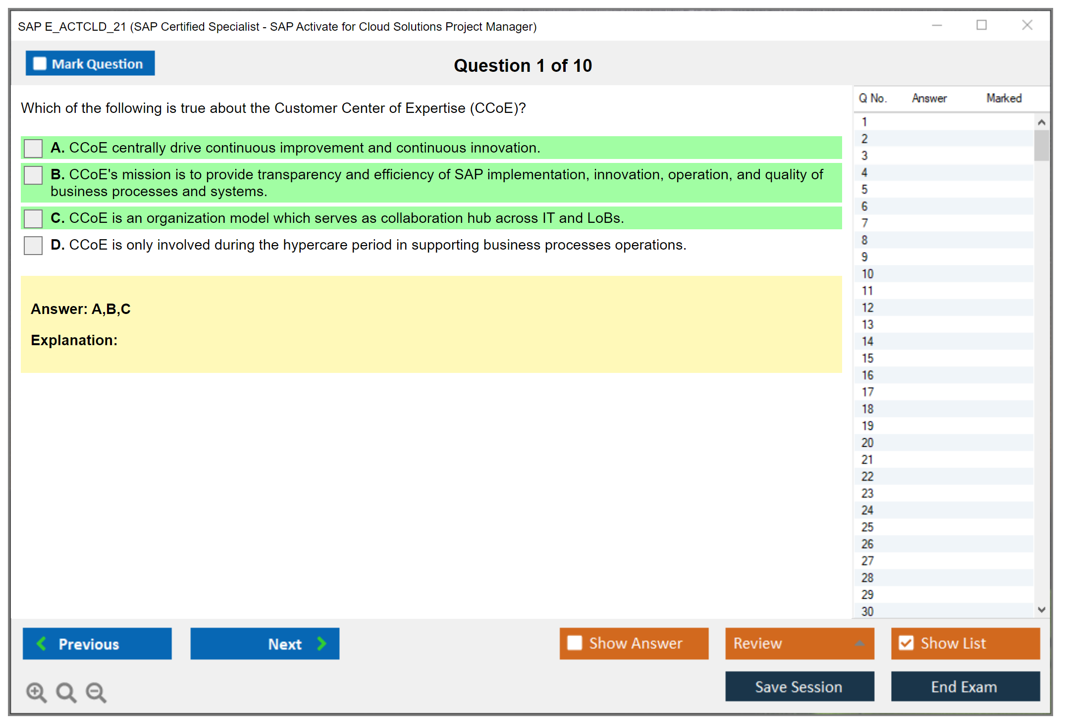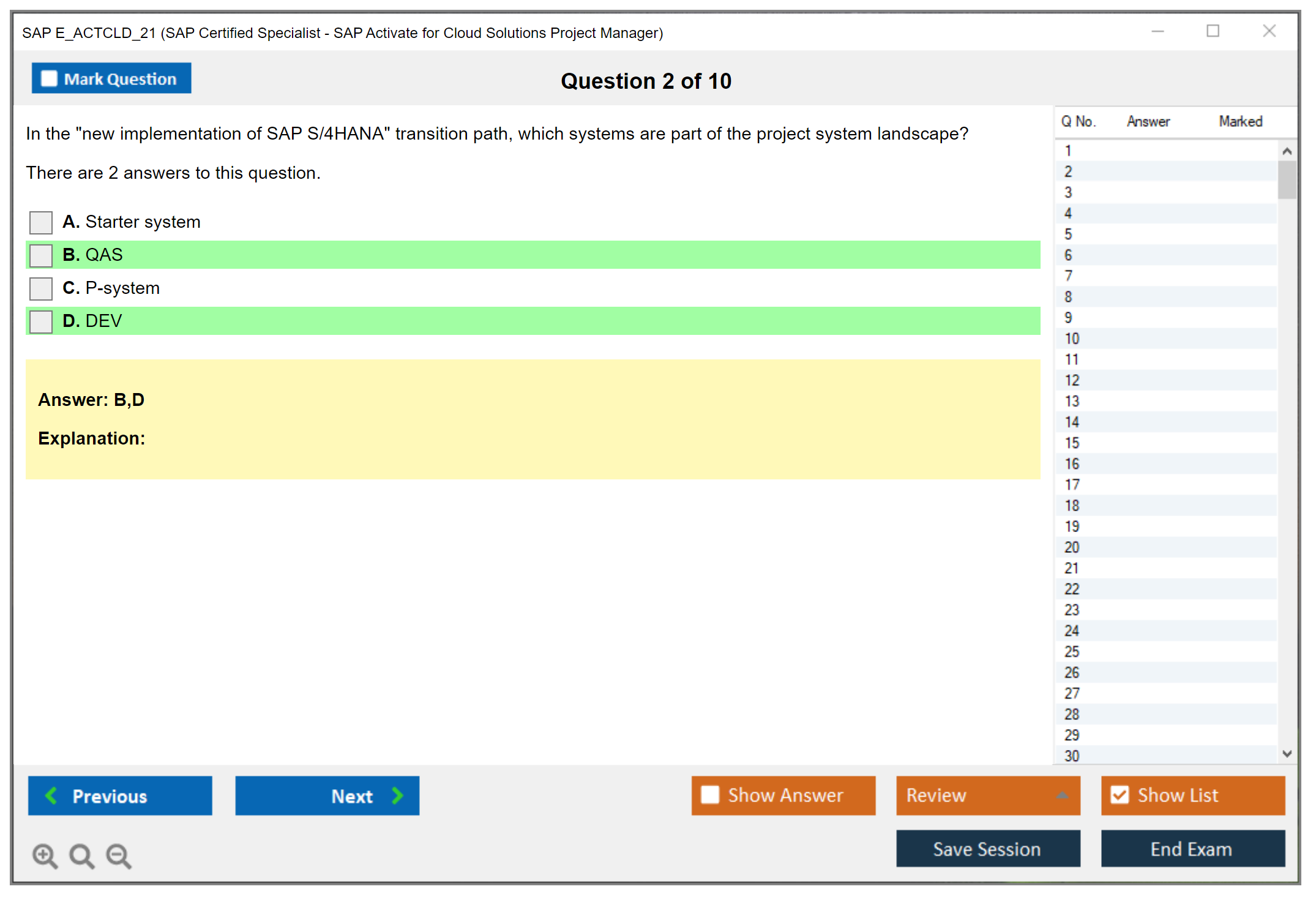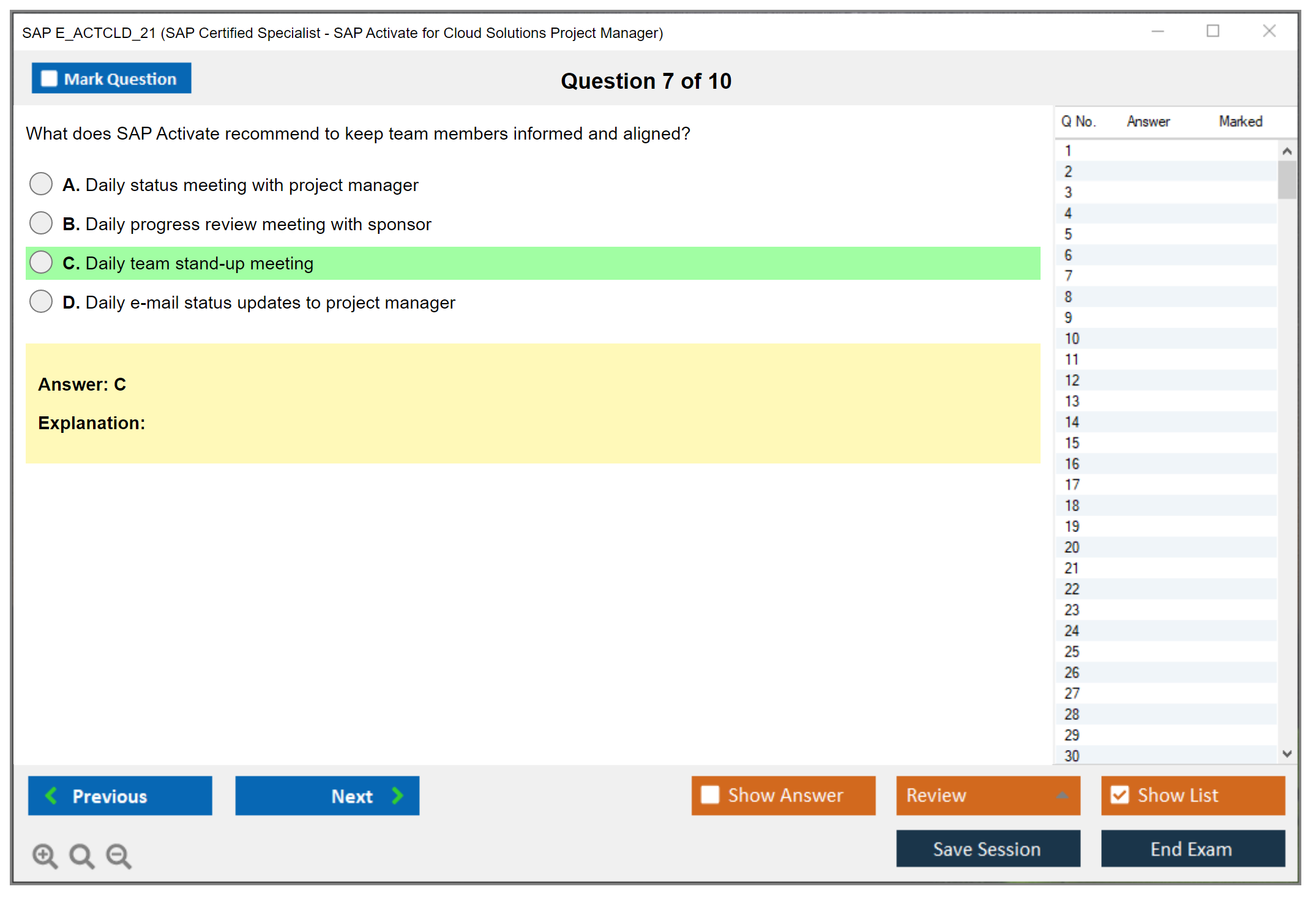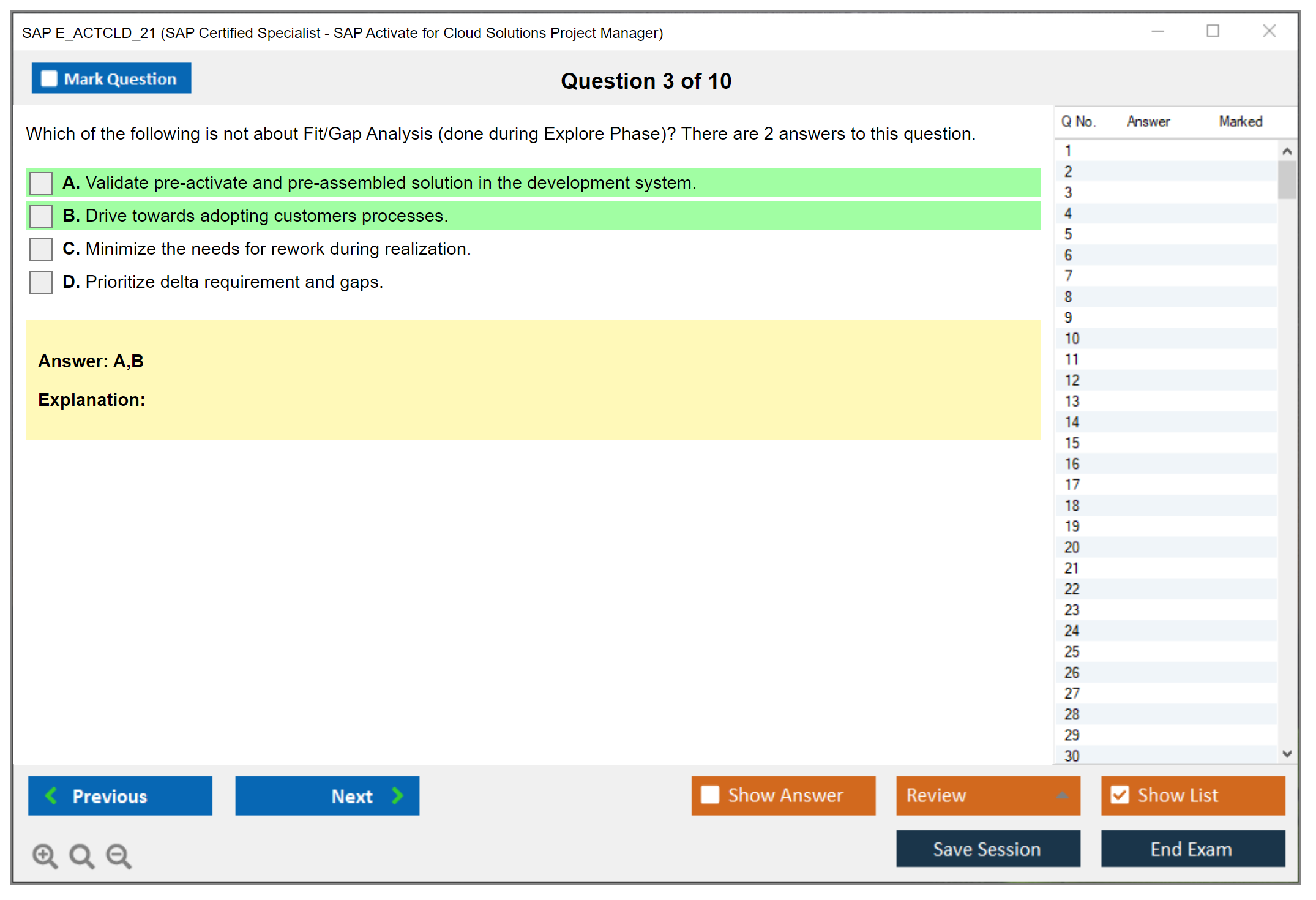 The E_ACTCLD_21 - SAP Certified Specialist - SAP Activate For Cloud Solutions Project Manager exam materials from DumpsBoss were a lifesaver! The detailed questions and thorough explanations helped me pass the SAP Activate exam with confidence. DumpsBoss is my go-to for certification prep!
