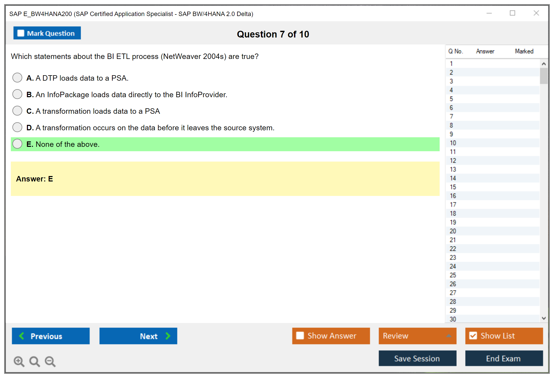 Note: SAP E_BW4HANA200 (SAP Certified Application Specialist - SAP BW/4HANA 2.0 Delta) will not receive any new updates.
