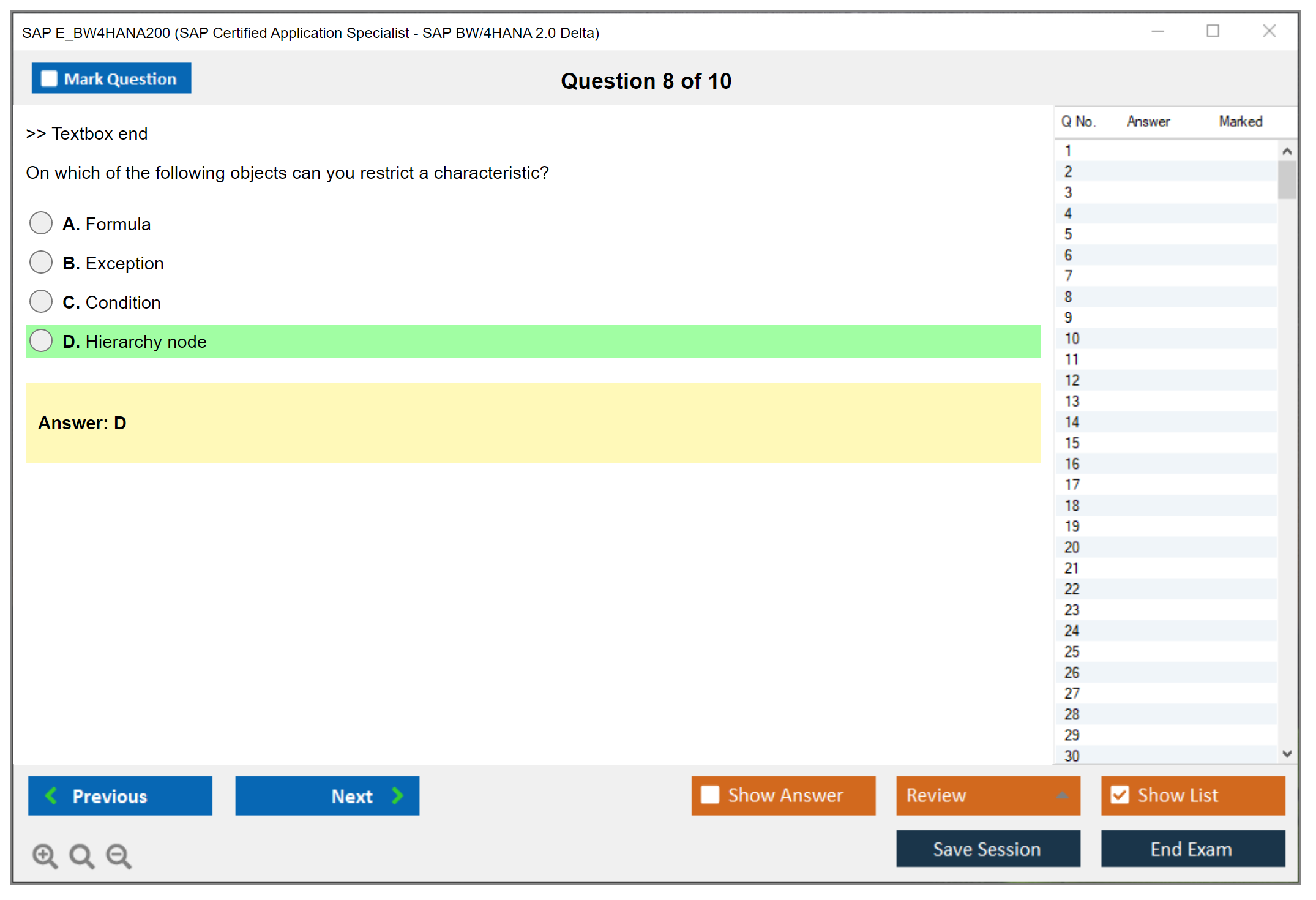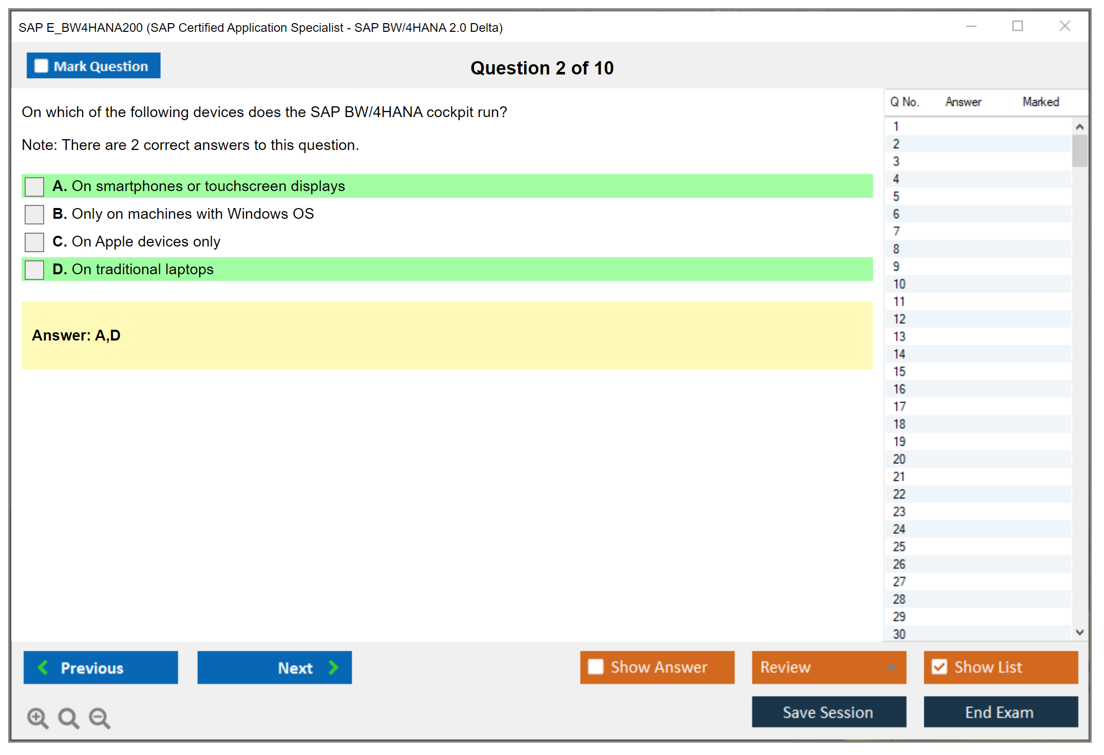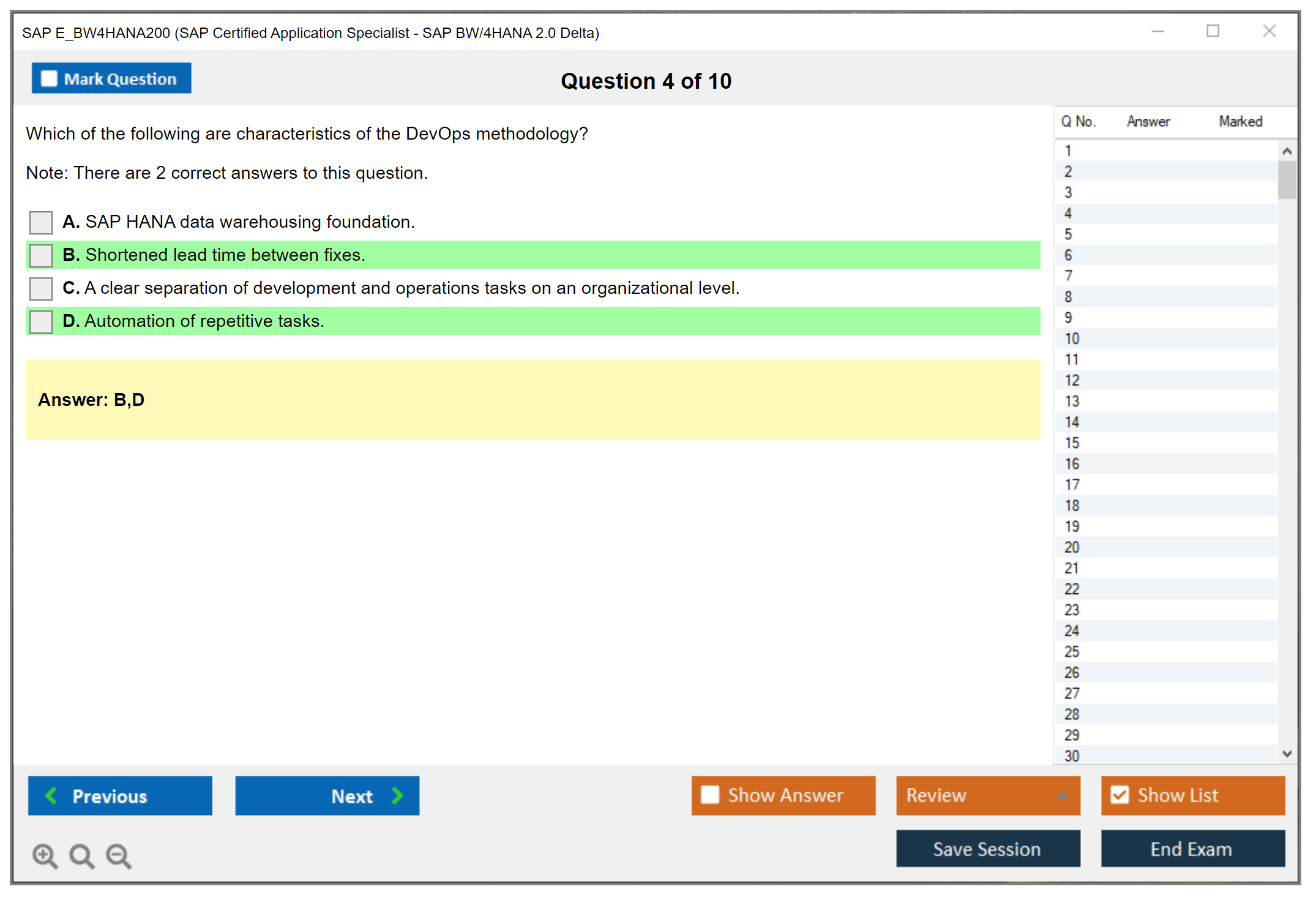 The question format of the SAP E_BW4HANA200 exam includes multiple-choice and multiple-response questions.