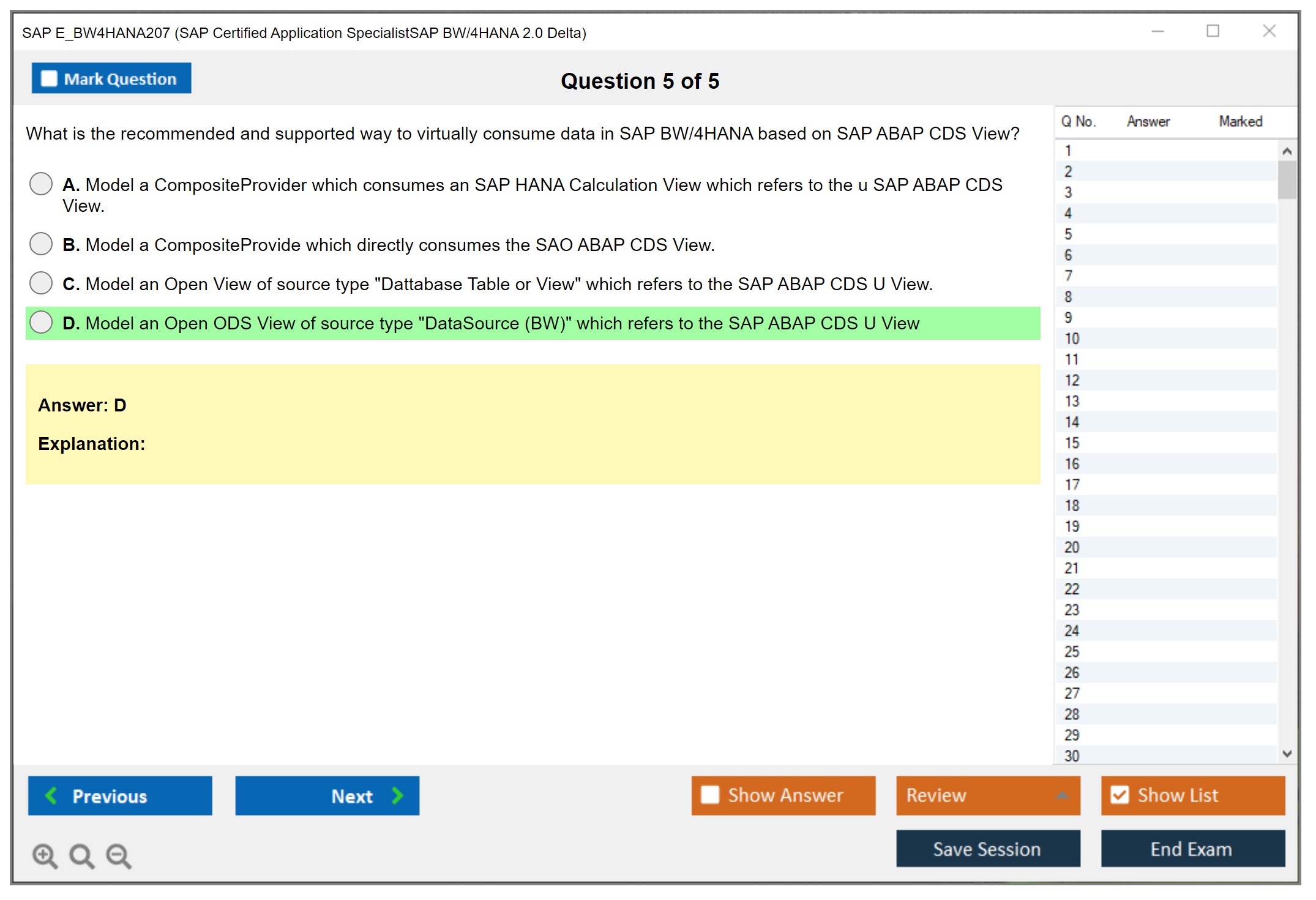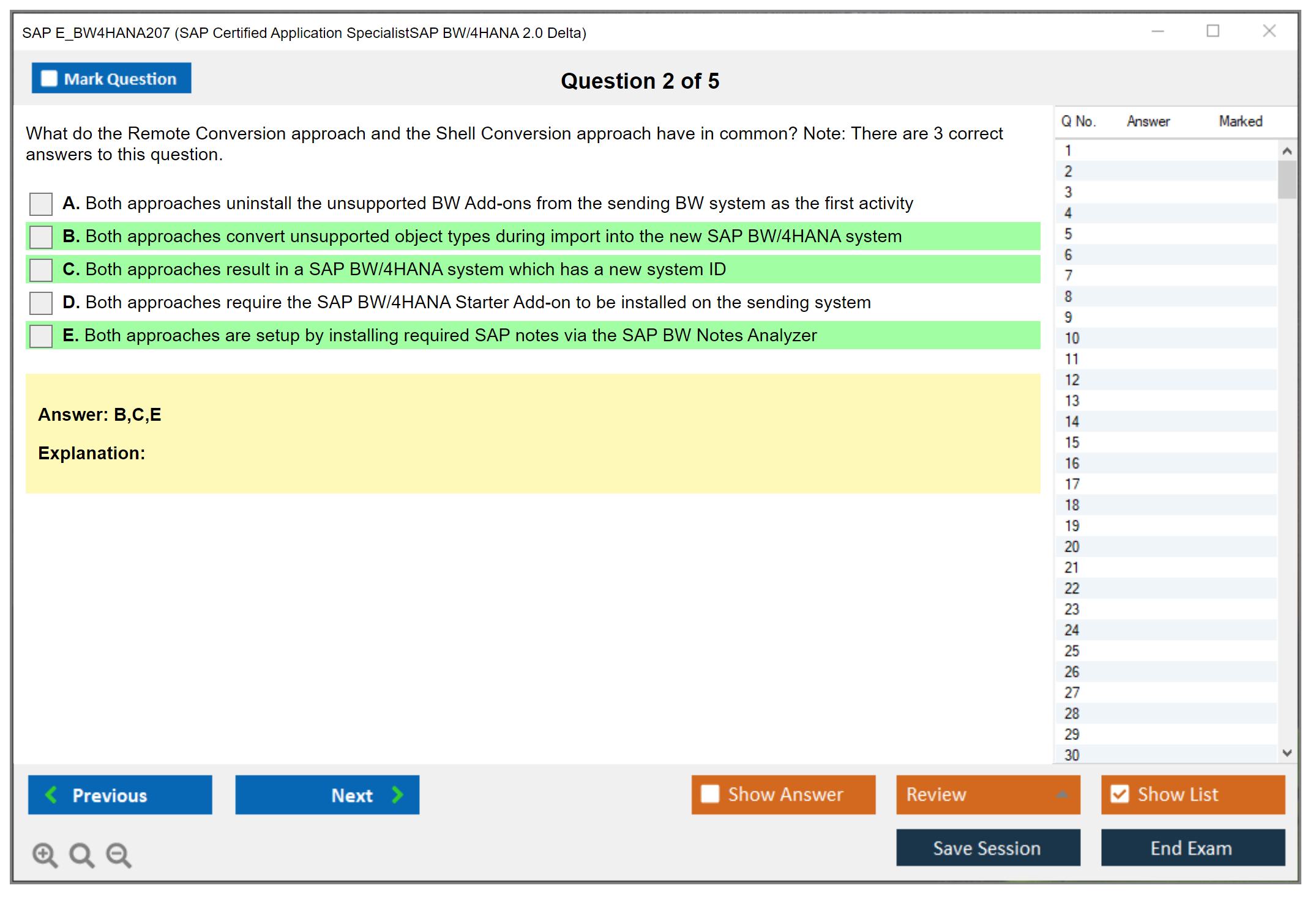 Note: SAP E_BW4HANA207 (SAP Certified Application SpecialistSAP BW/4HANA 2.0 Delta) will not receive any new updates.