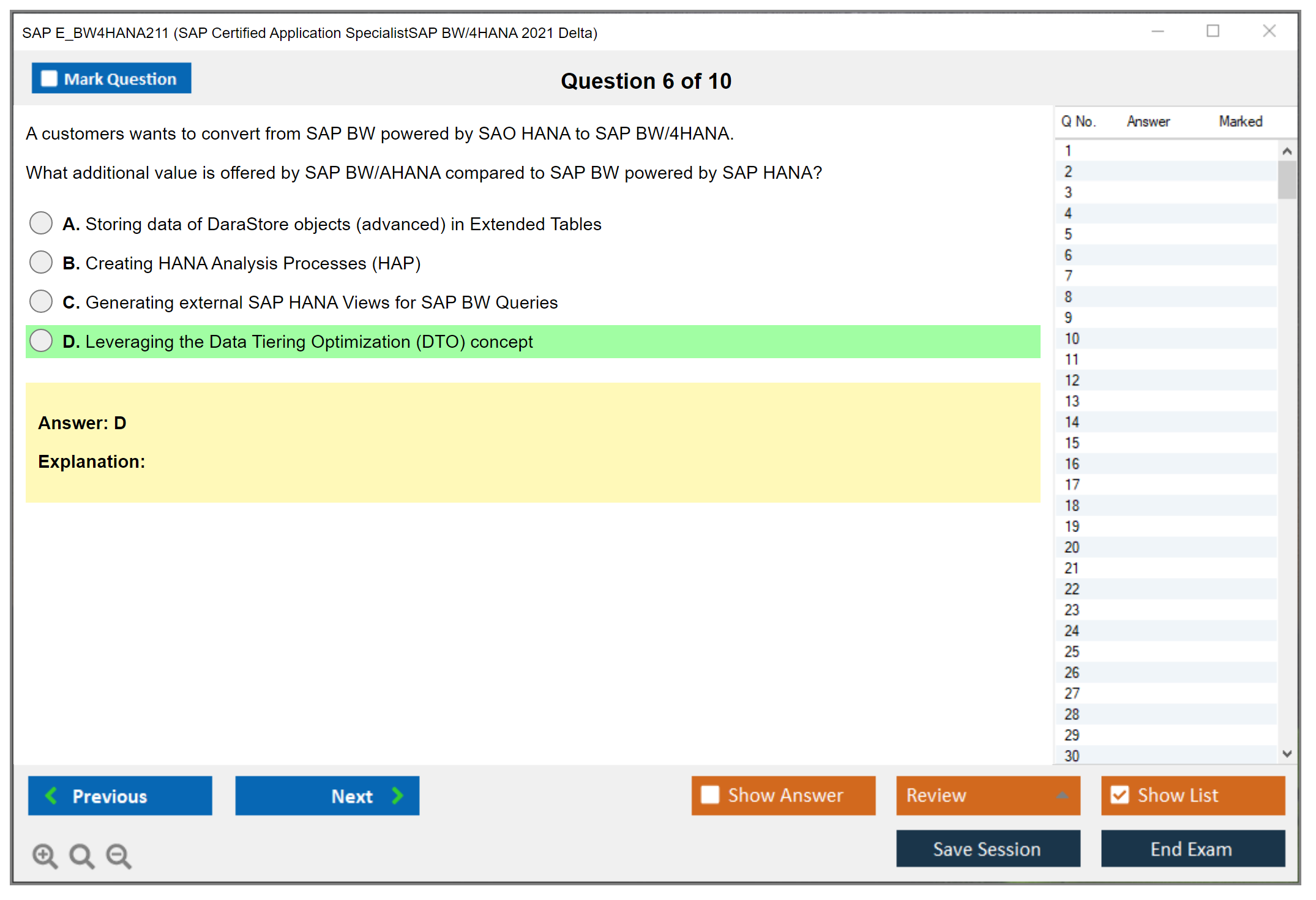 Note: SAP E_BW4HANA211 (SAP Certified Application SpecialistSAP BW/4HANA 2021 Delta) will not receive any new updates.