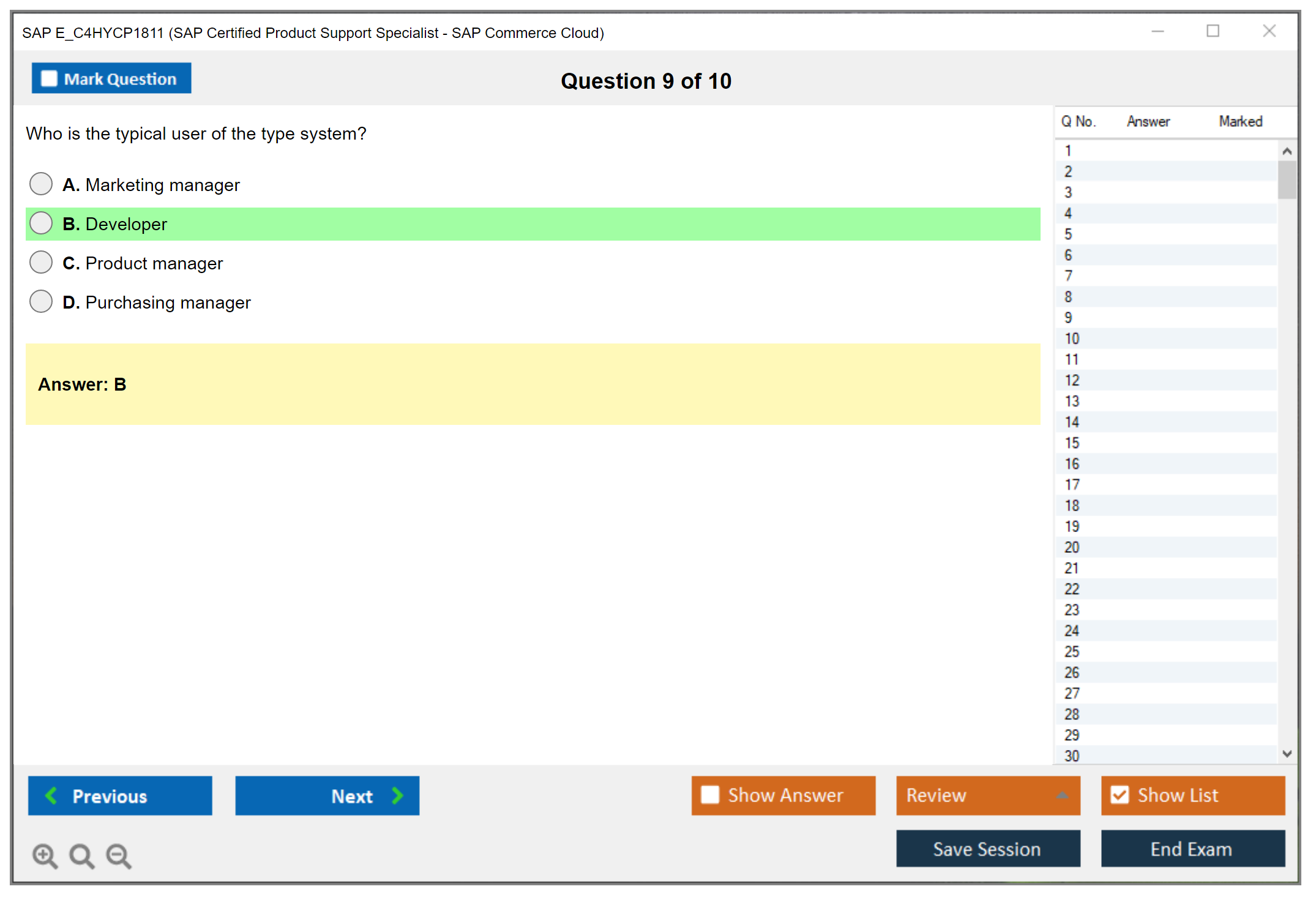 The question format of the SAP E_C4HYCP1811 exam includes multiple-choice and multiple-response questions.