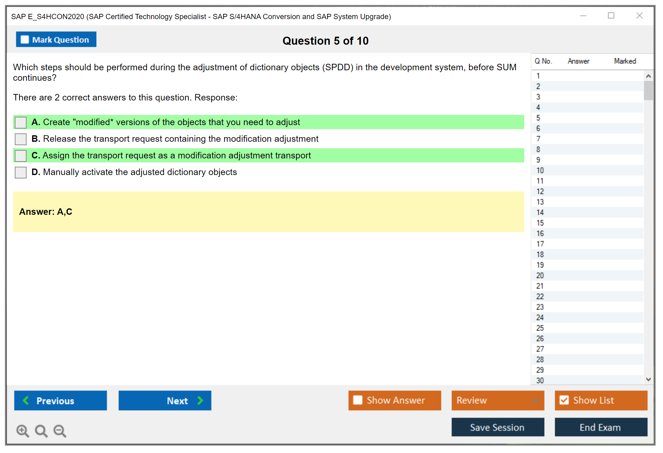 The question format of the SAP E_S4HCON2020 exam includes multiple-choice and multiple-response questions.