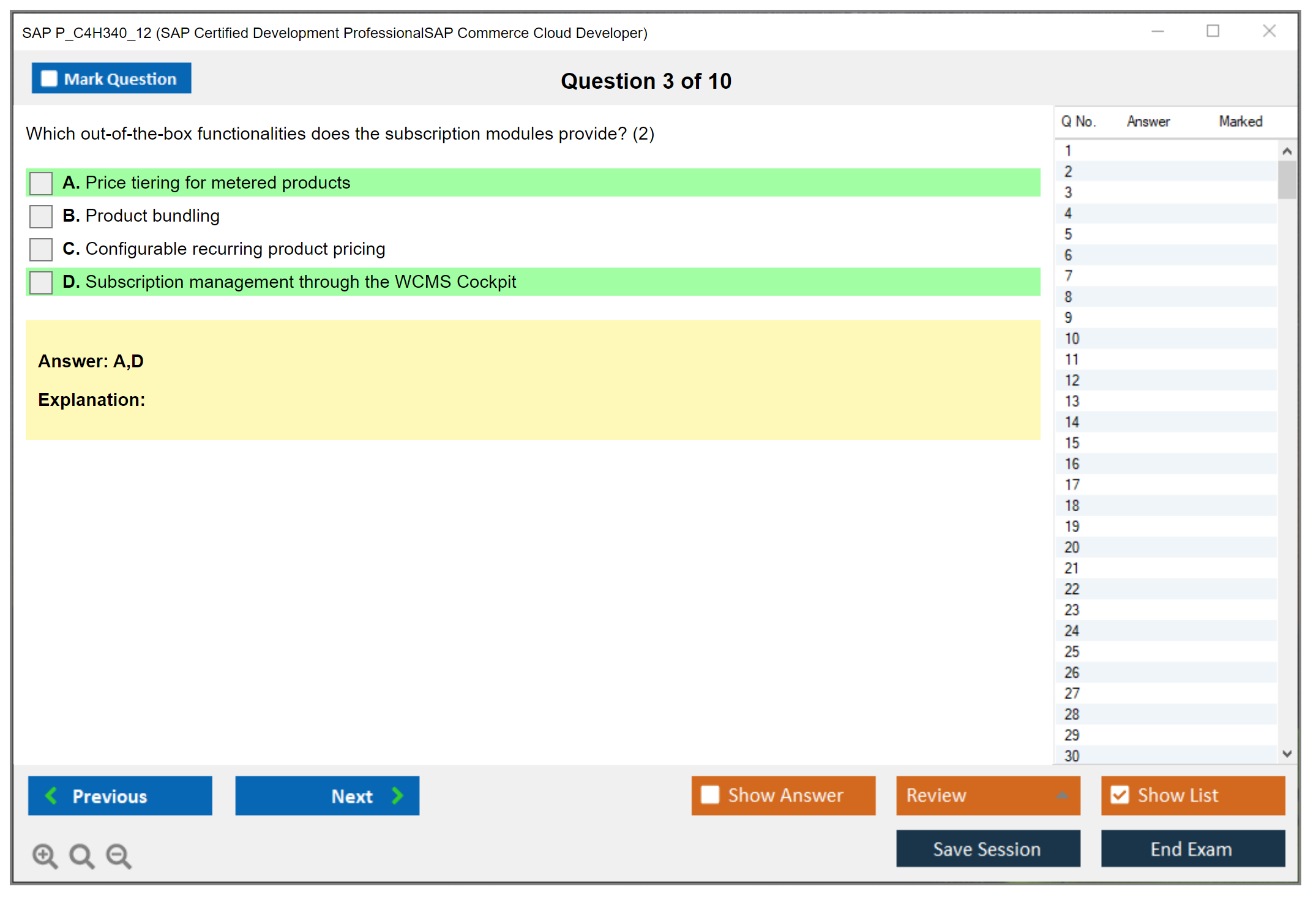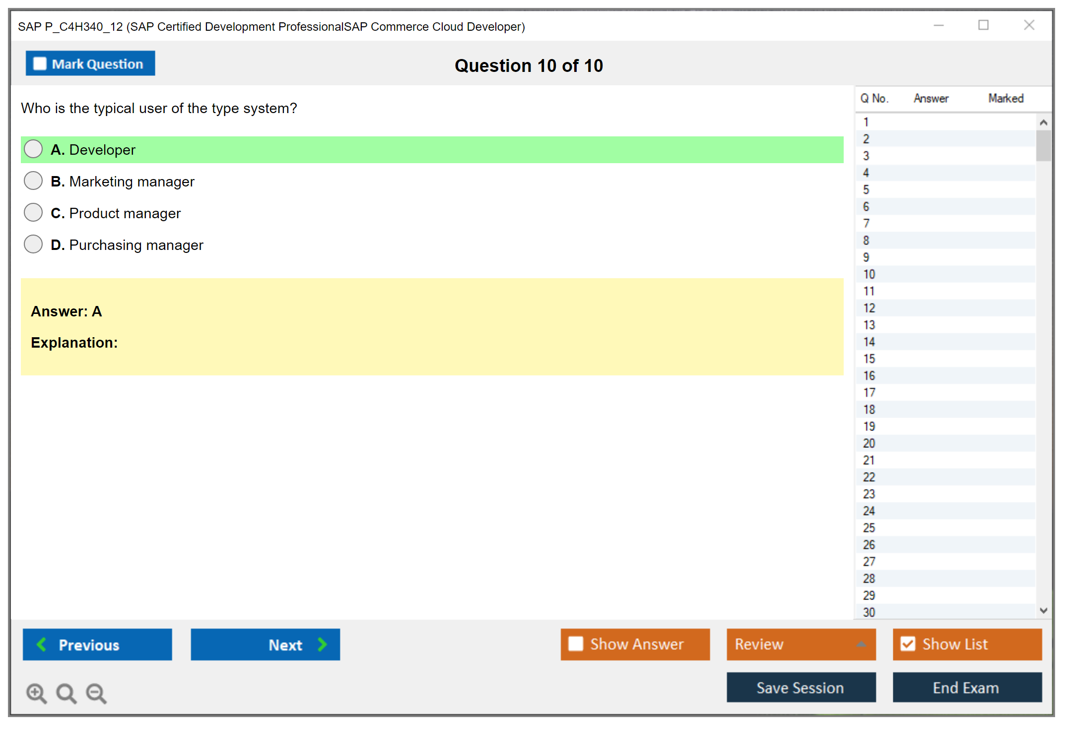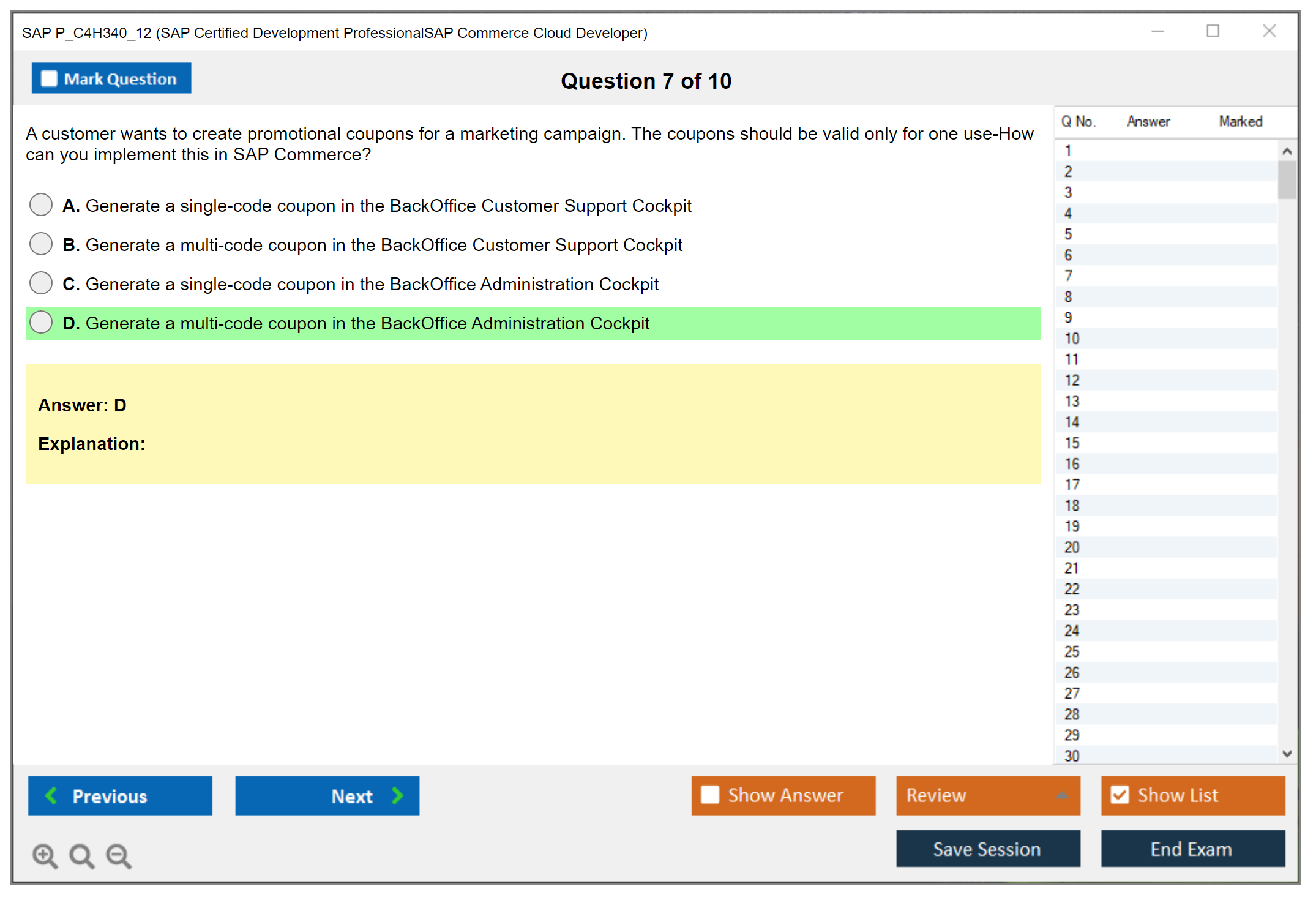 Note: SAP P_C4H340_12 (SAP Certified Development ProfessionalSAP Commerce Cloud Developer) will not receive any new updates.