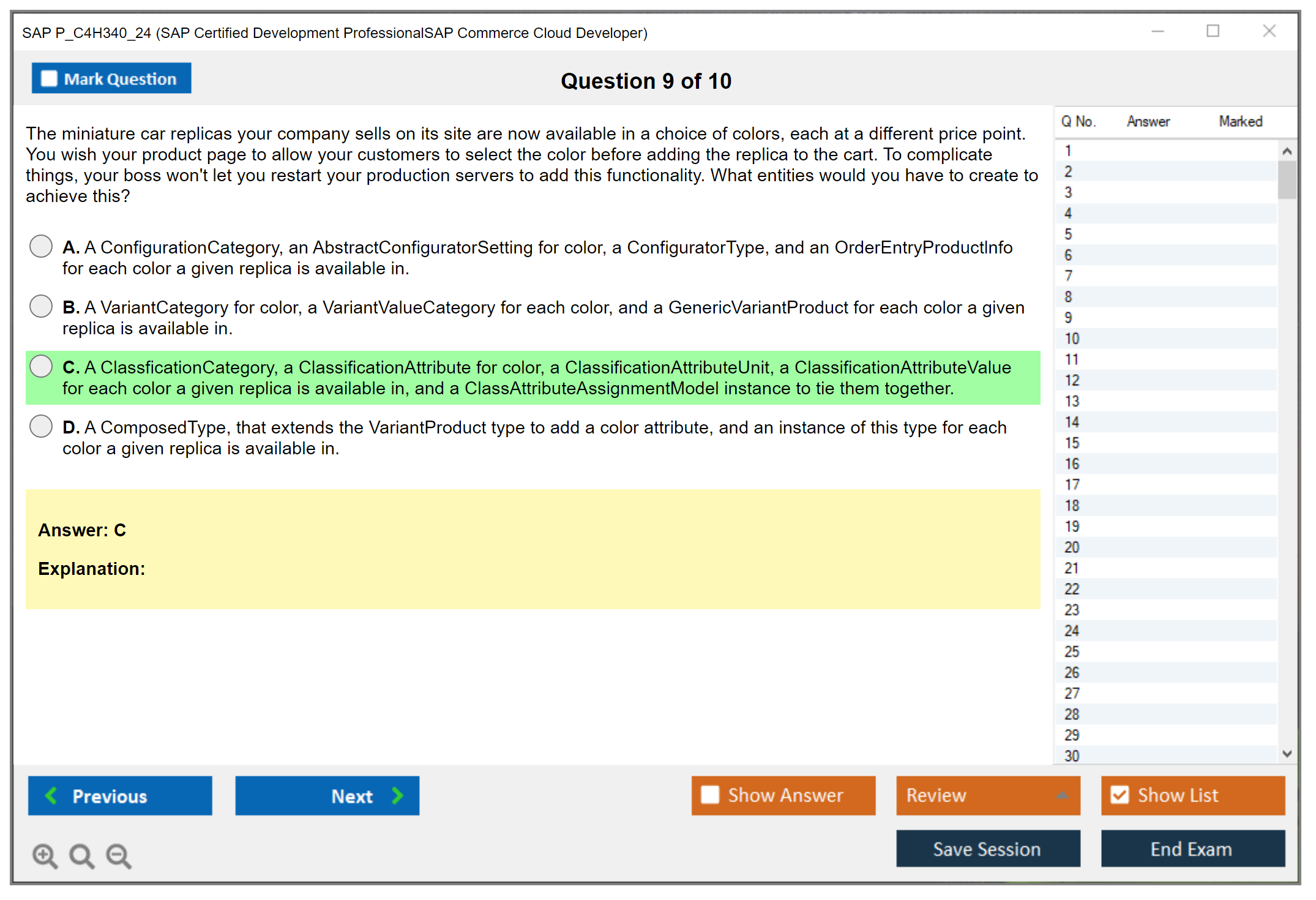 The SAP P_C4H340_24 (SAP Certified Development Professional - SAP Commerce Cloud Developer) exam is designed to validate the skills and knowledge of candidates in the area of SAP Commerce Cloud development. It focuses on the ability to develop and customize applications using SAP Commerce Cloud tools and technologies.