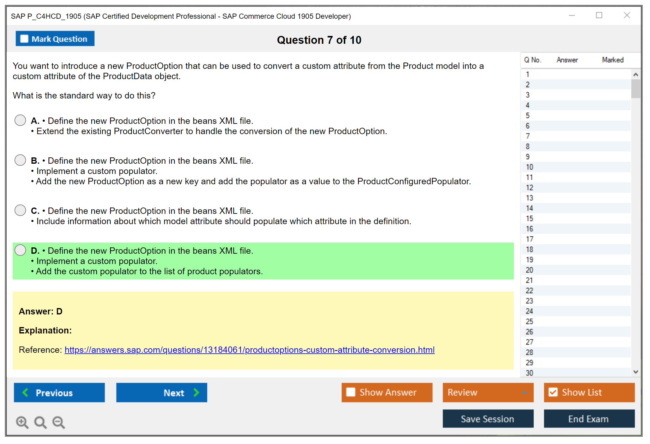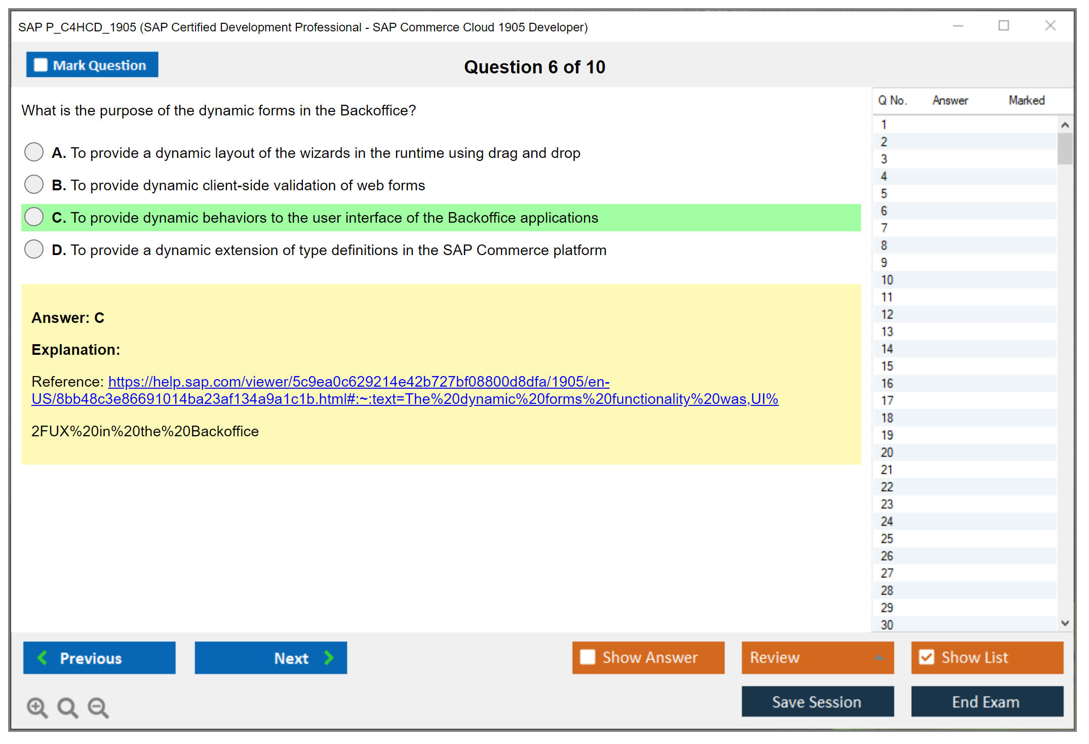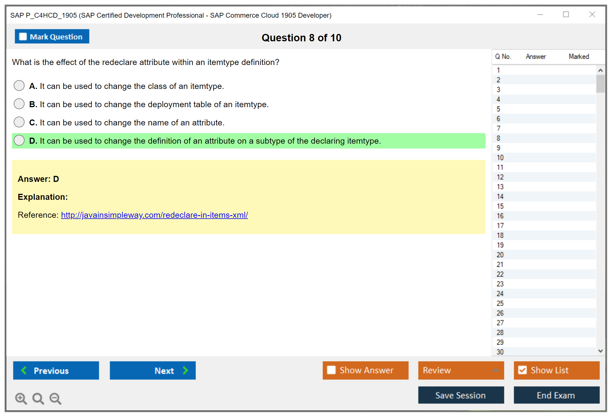 Note: SAP P_C4HCD_1905 (SAP Certified Development Professional - SAP Commerce Cloud 1905 Developer) will not receive any new updates.
