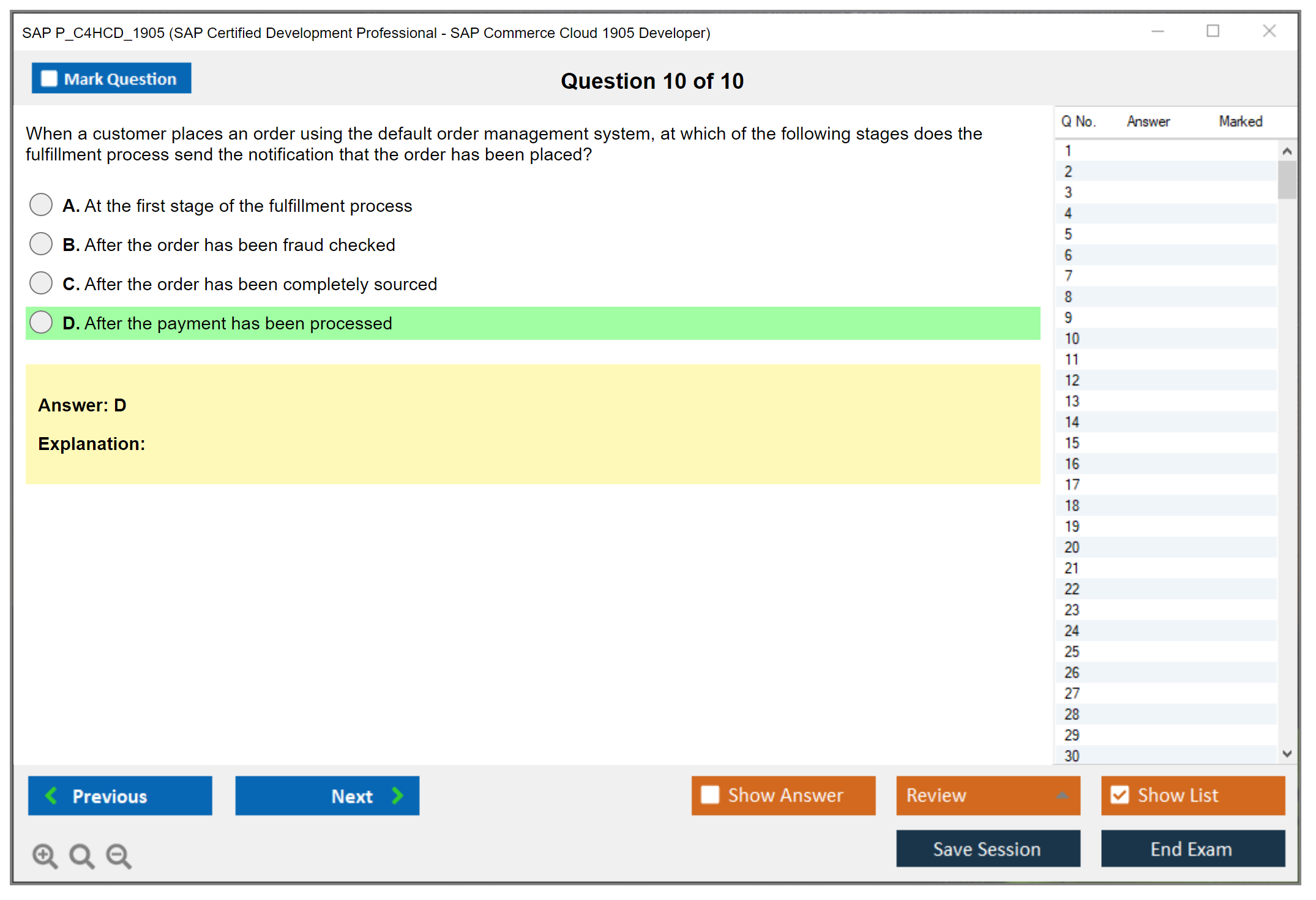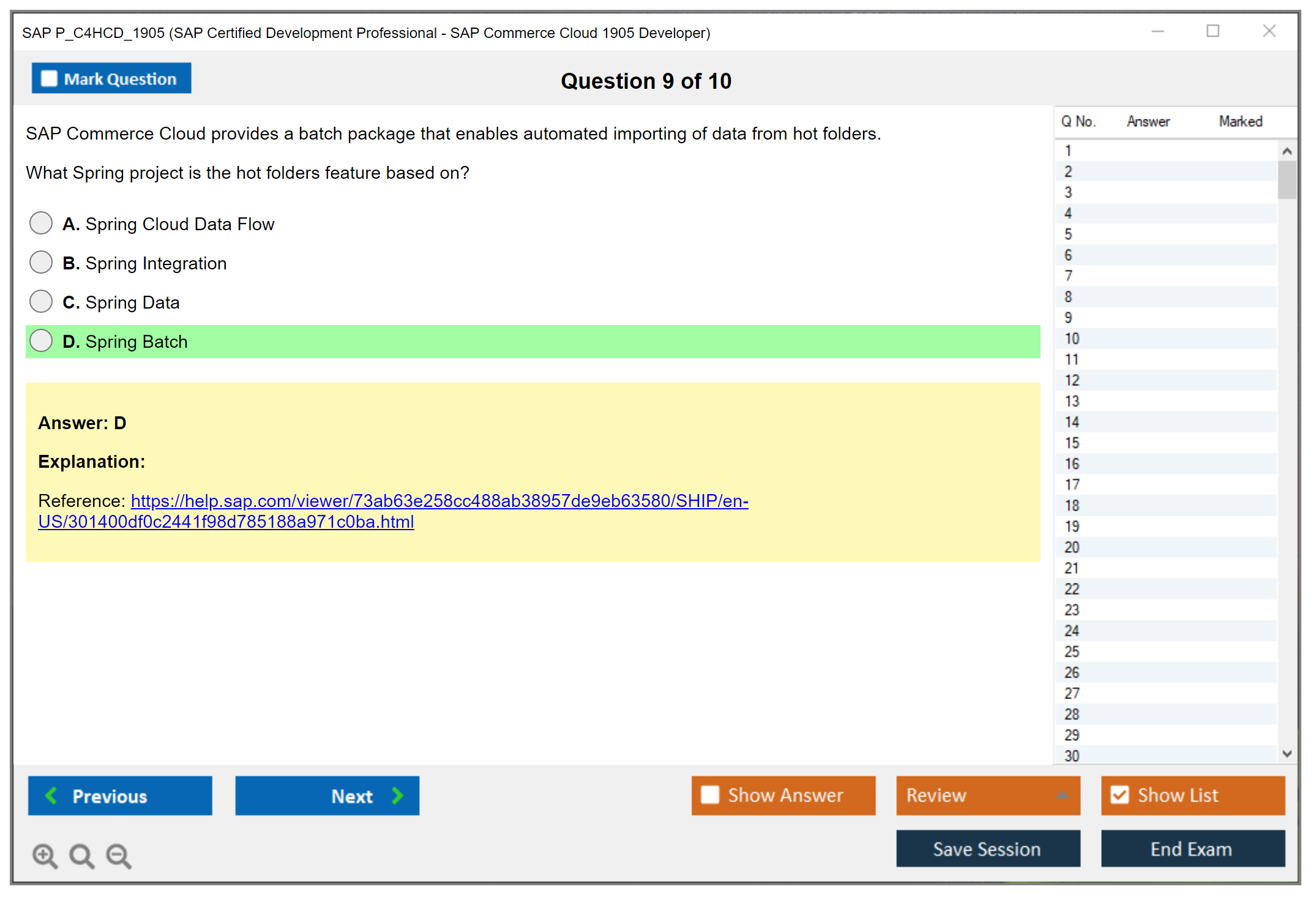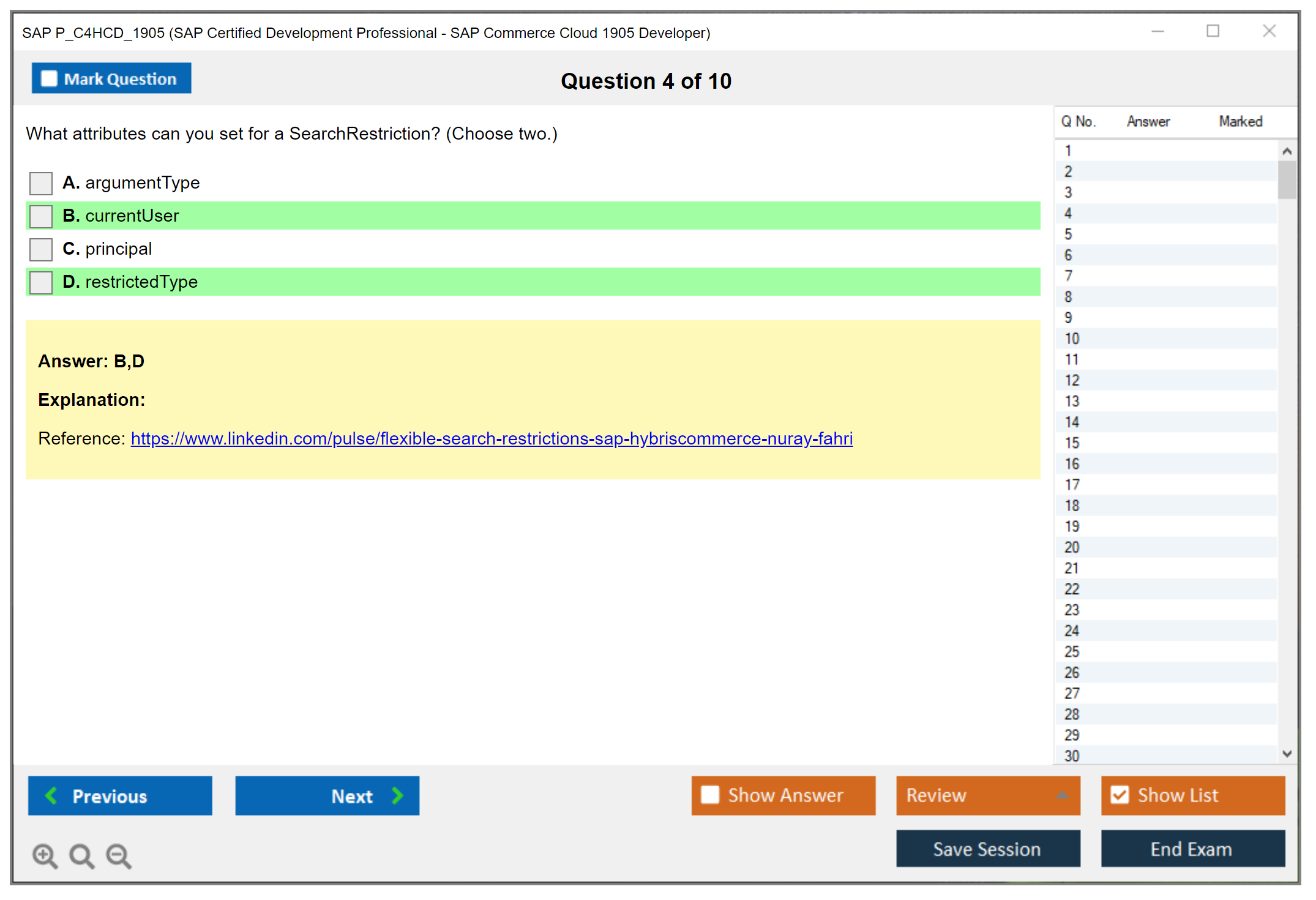 Note: SAP P_C4HCD_1905 (SAP Certified Development Professional - SAP Commerce Cloud 1905 Developer) will not receive any new updates.