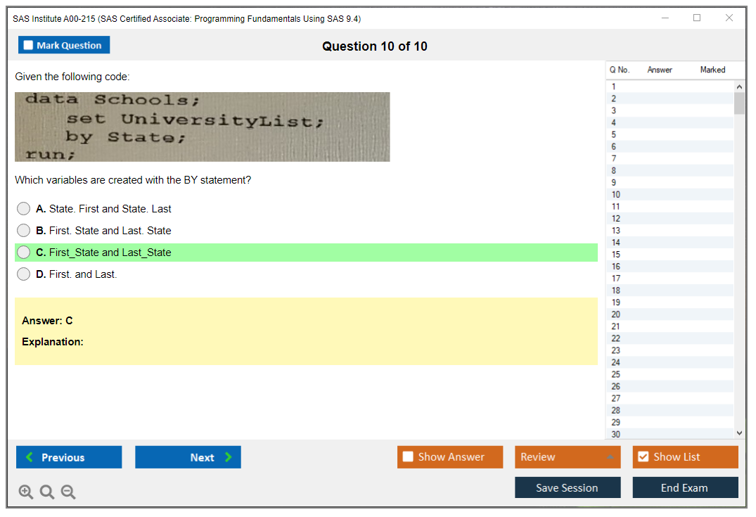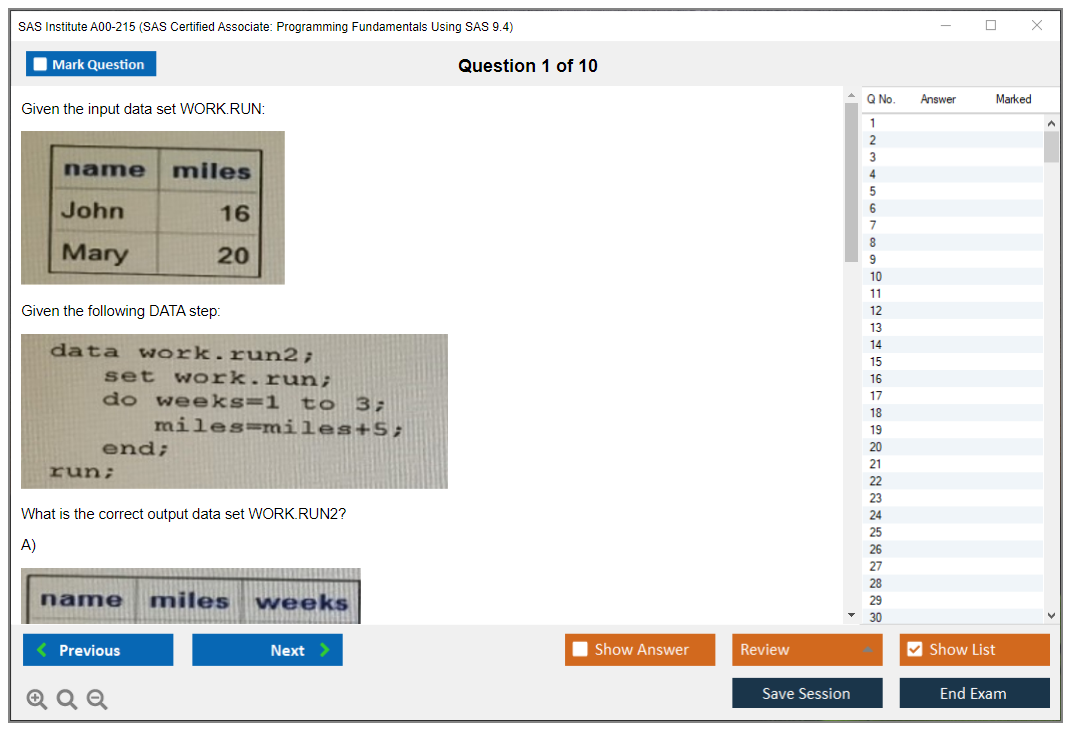 Sample questions for the SAS Institute A00-215 exam can be found on the official SAS certification website or through SAS training resources.