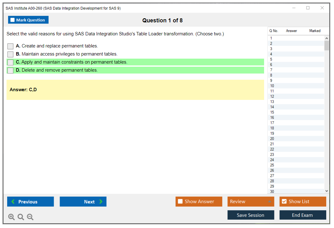 The SAS Institute A00-260 (SAS Data Integration Development) Exam is a certification exam designed to validate the skills and knowledge required to perform data integration tasks using SAS Data Integration Studio. It focuses on data management, data warehousing, and ETL (Extract, Transform, Load) processes.